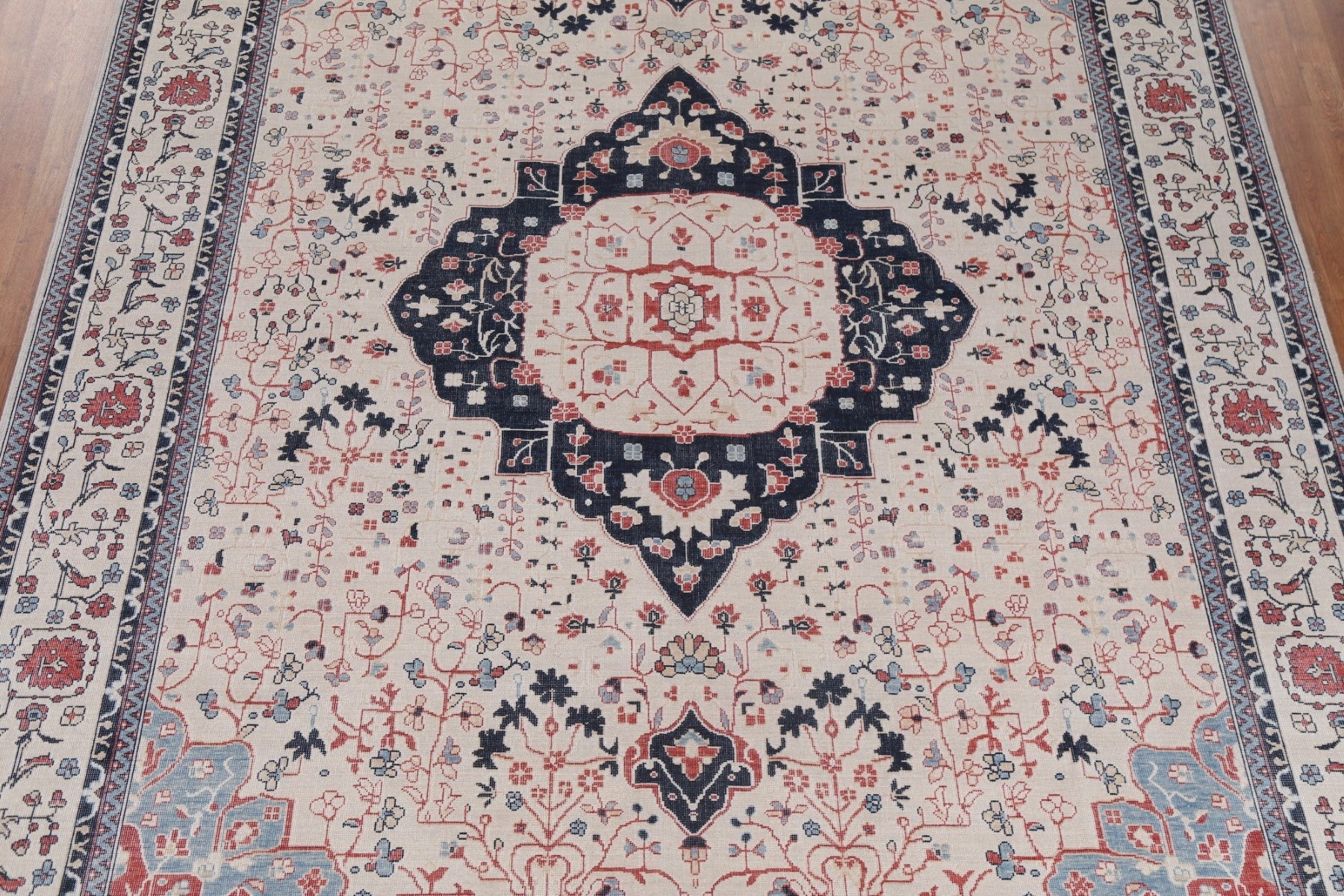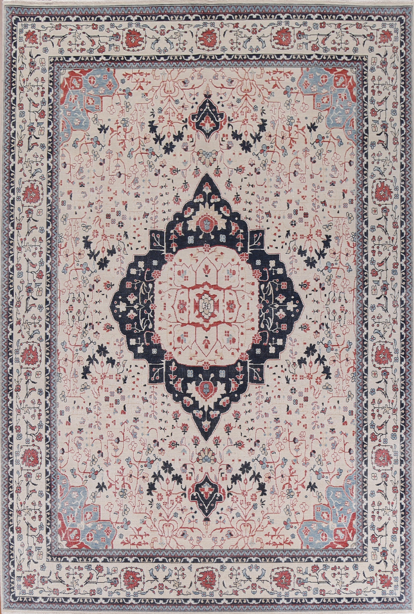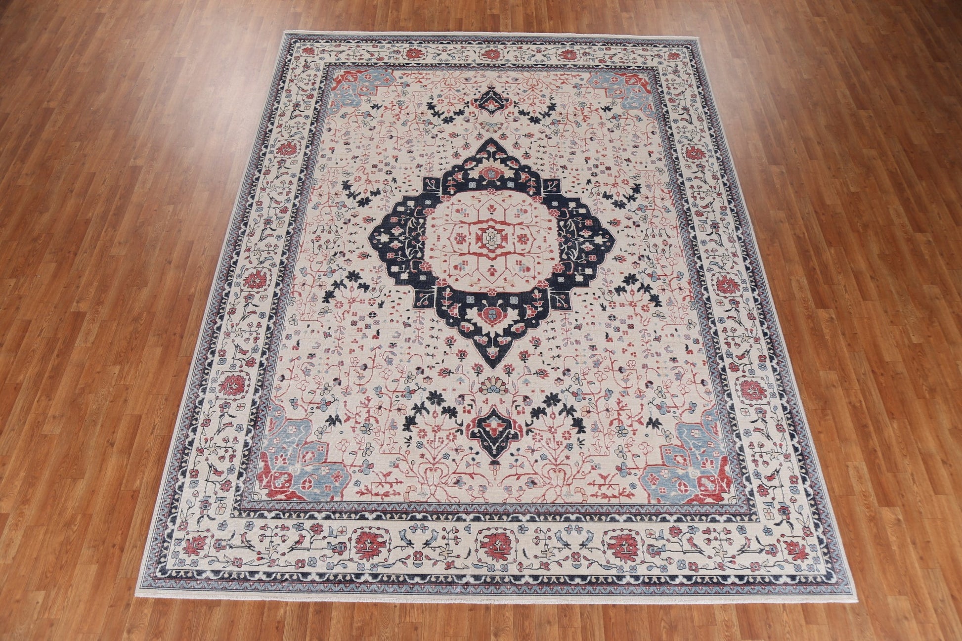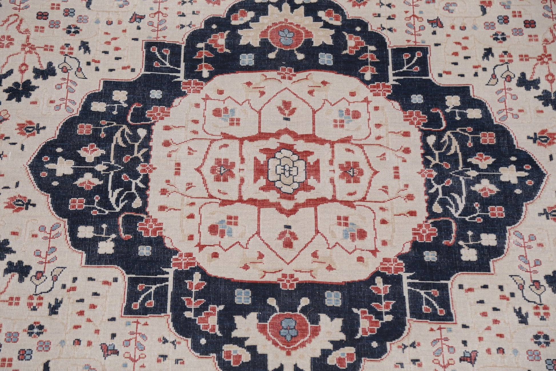 A Beautiful Genuine Turkey Kashan (Mohtasham) rug is Hand Knotted by skillful weavers in Turkey with 100% Wool Material. This rug is in New, First Quality condition. dimensions are 12' 0'' X 9' 0'' in foot and 366 X 274 in centimeter. the primary color is Beige & Ivories.