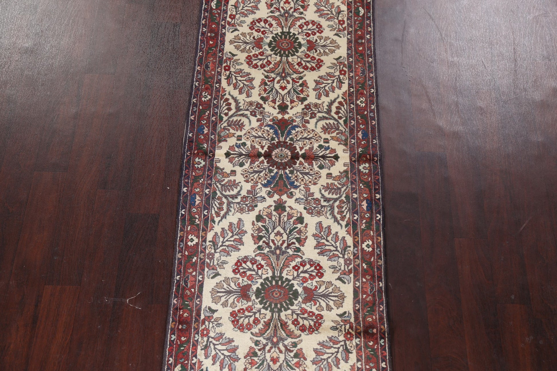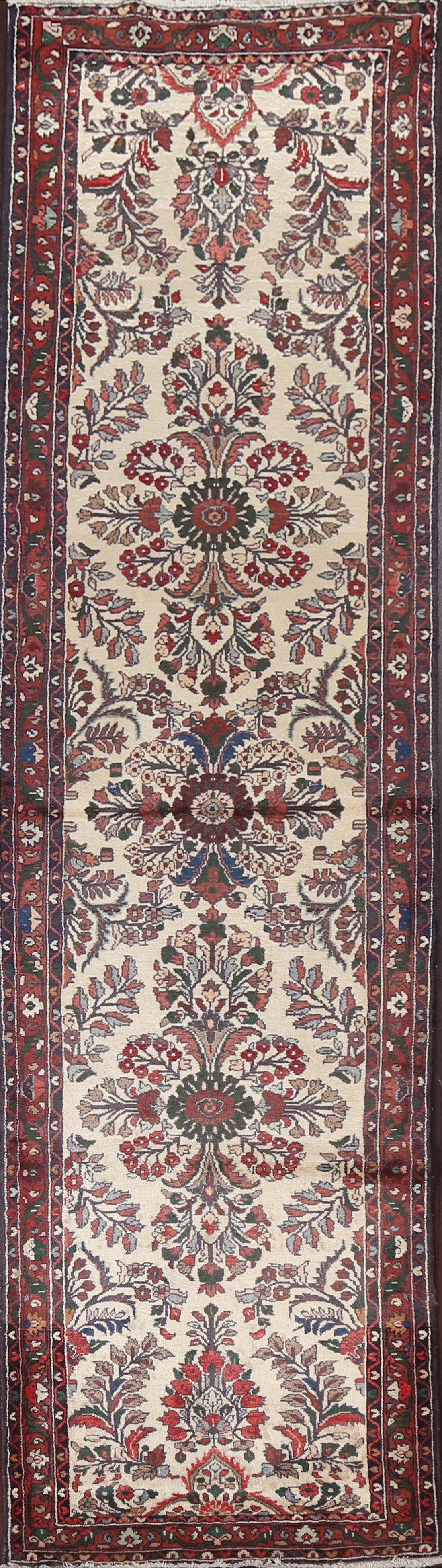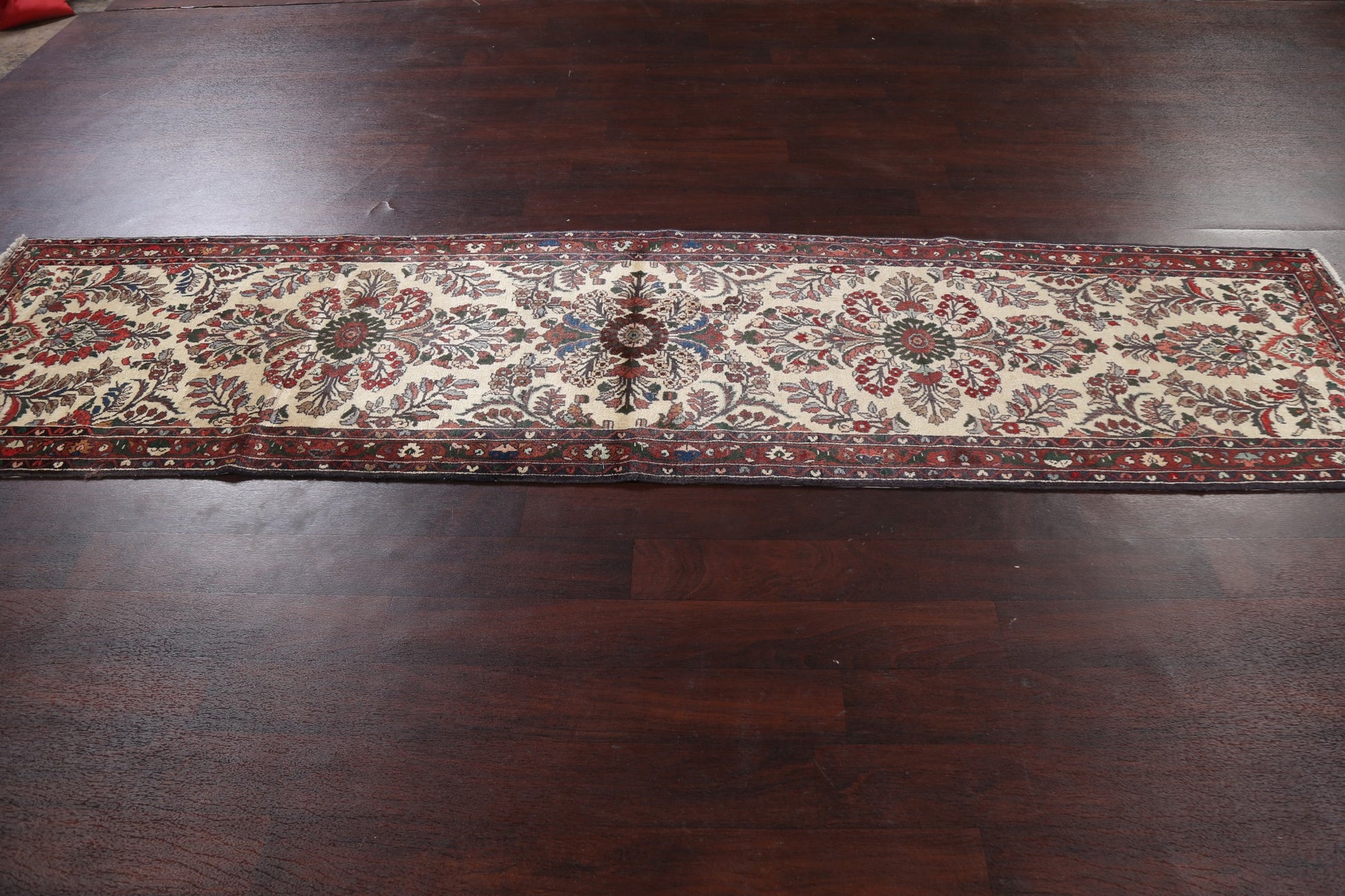 A Beautiful Genuine Persia ( Persia ) Lilian rug is Hand Knotted by skillful weavers in Persia ( Persia ) with 100% Wool Material. This rug is in Very Good condition. dimensions are 10' 7'' X 2' 7'' in foot and 323 X 79 in centimeter. the primary color is Beige & Ivories.