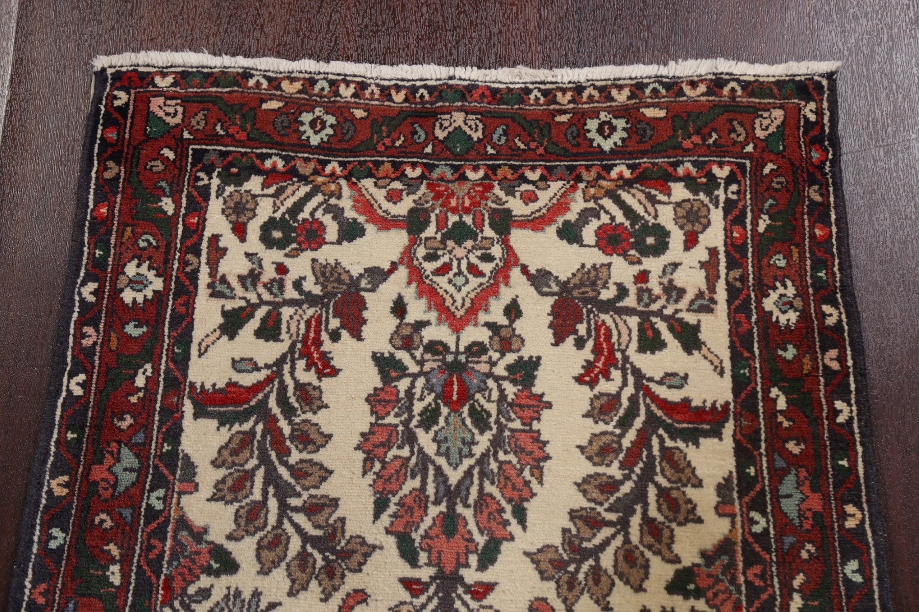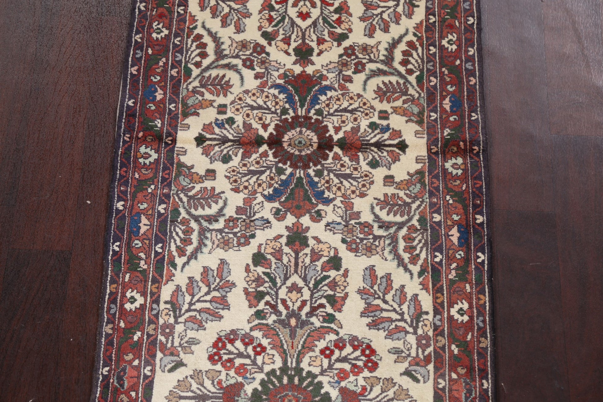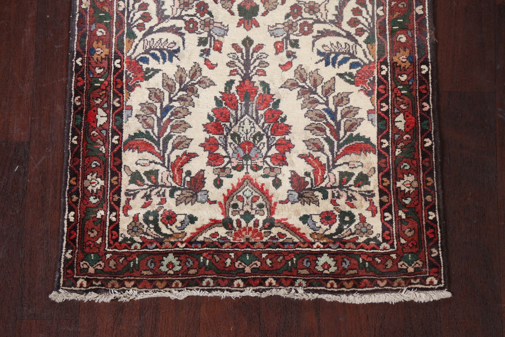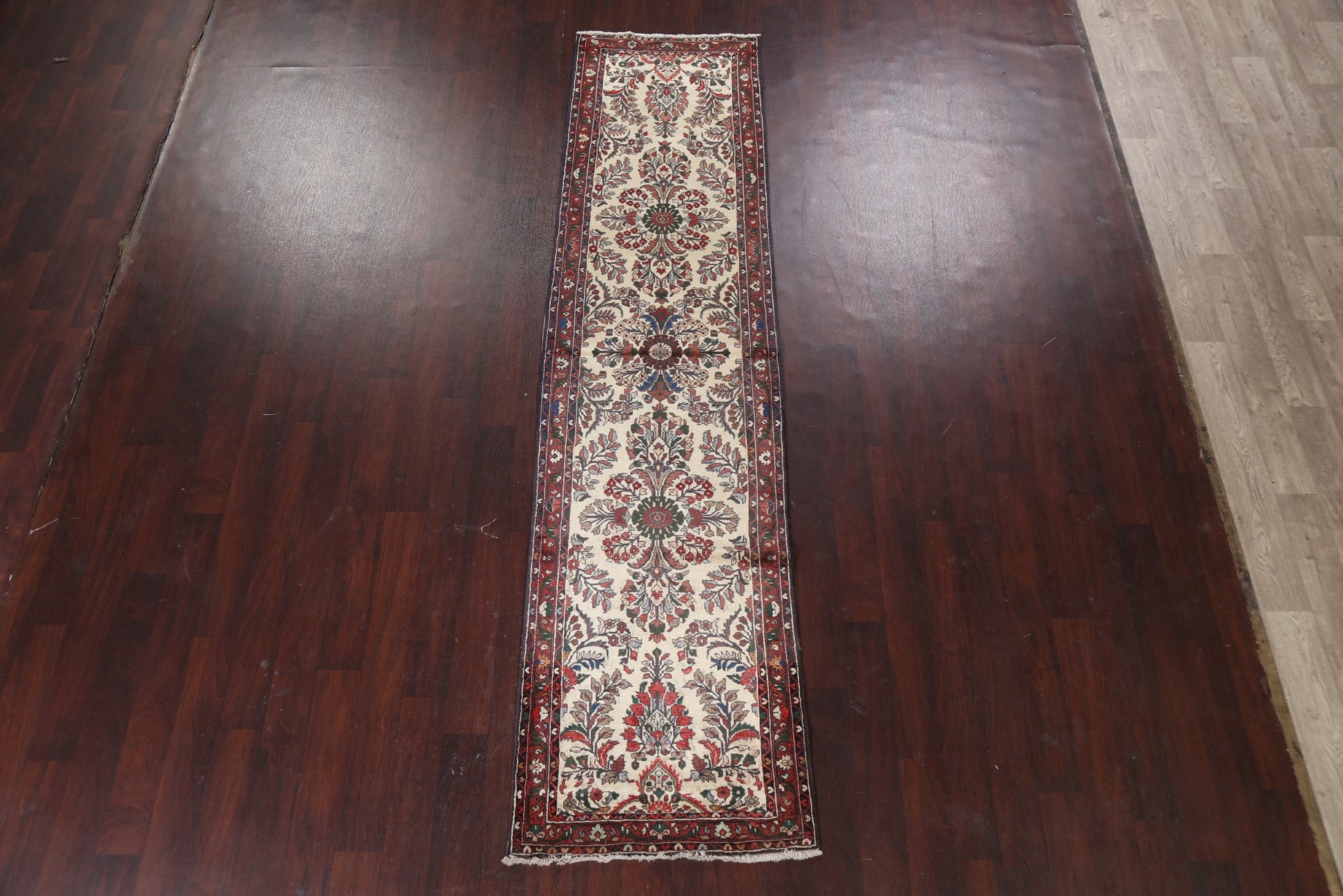 A Beautiful Genuine Persia ( Persia ) Lilian rug is Hand Knotted by skillful weavers in Persia ( Persia ) with 100% Wool Material. This rug is in Very Good condition. dimensions are 10' 7'' X 2' 7'' in foot and 323 X 79 in centimeter. the primary color is Beige & Ivories.