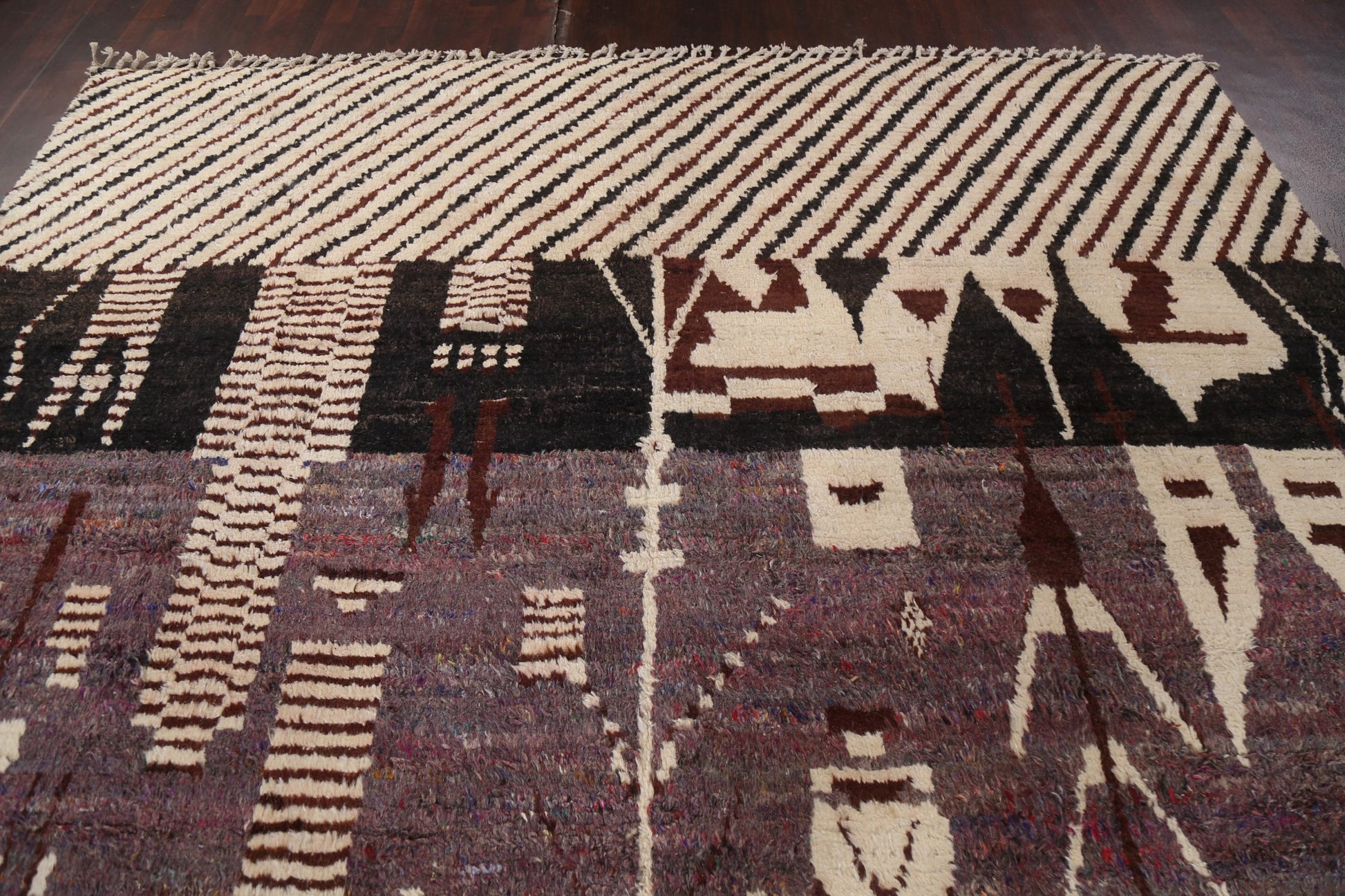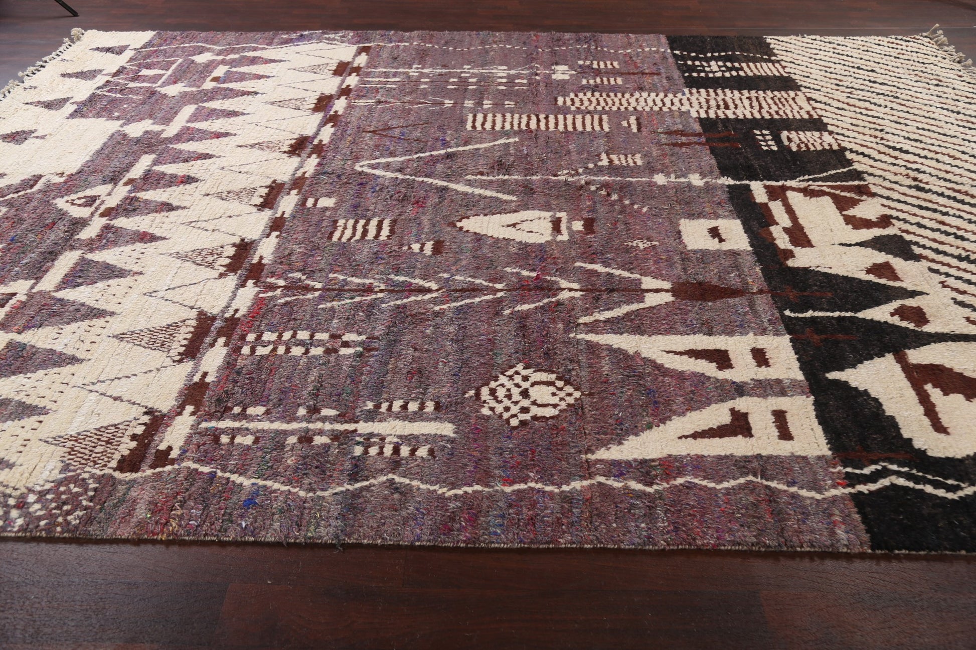 A Beautiful Genuine Morocco Moroccan rug is Hand Knotted by skillful weavers in Morocco with 100% Wool Material. This rug is in New, First Quality condition. dimensions are 13' 10'' X 9' 10'' in foot and 422 X 300 in centimeter. the primary color is Multi-Colored.