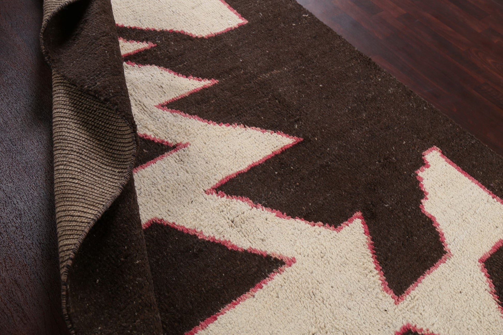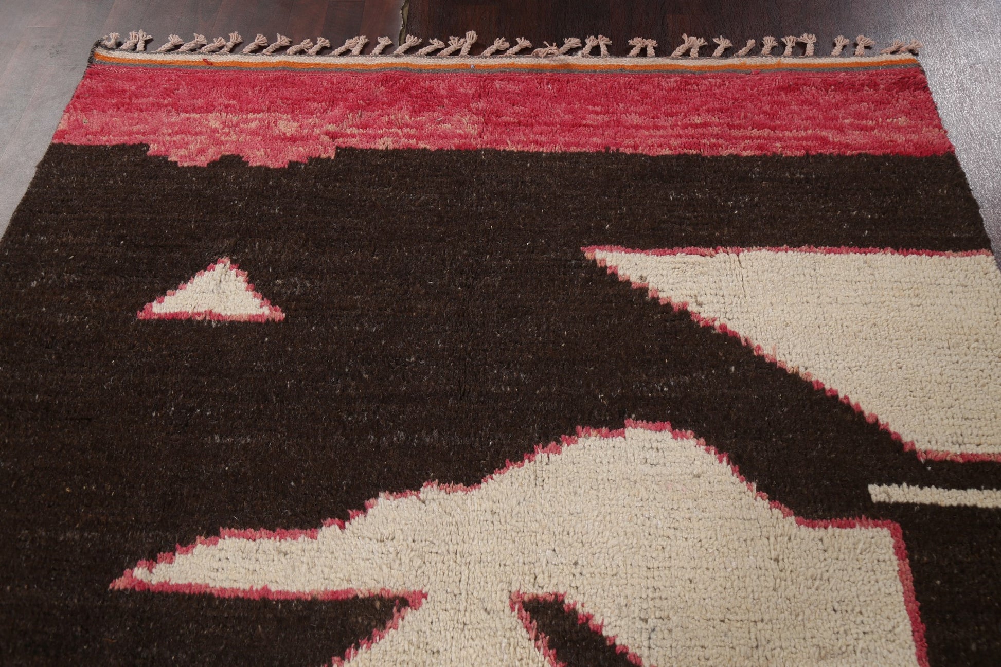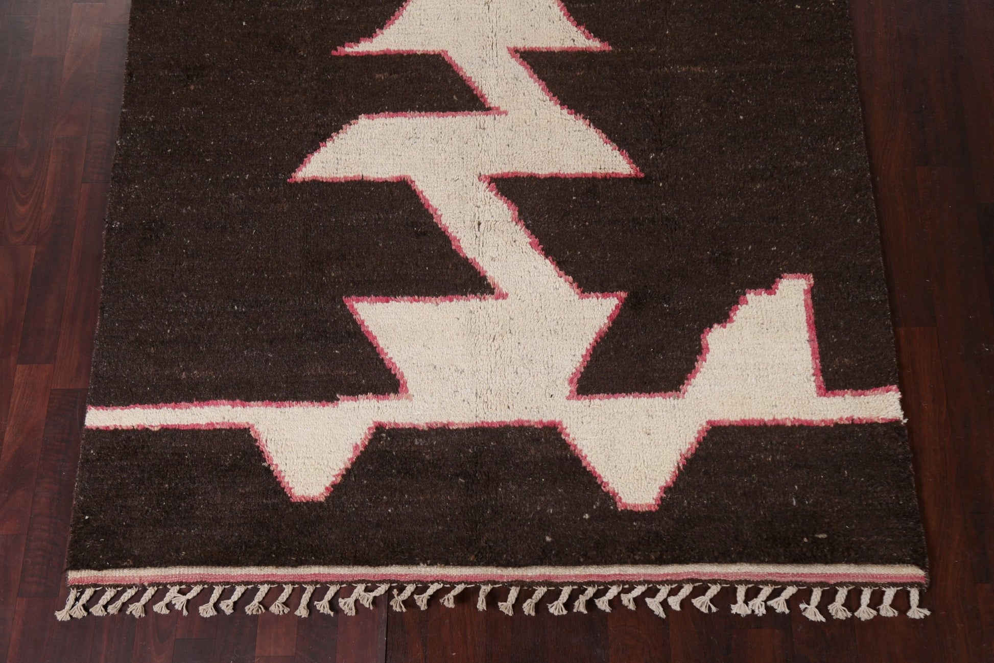 A Beautiful Genuine Morocco Moroccan rug is Hand Knotted by skillful weavers in Morocco with 100% Wool Material. This rug is in New, First Quality condition. dimensions are 9' 10'' X 5' 11'' in foot and 300 X 180 in centimeter. the primary color is Brown.