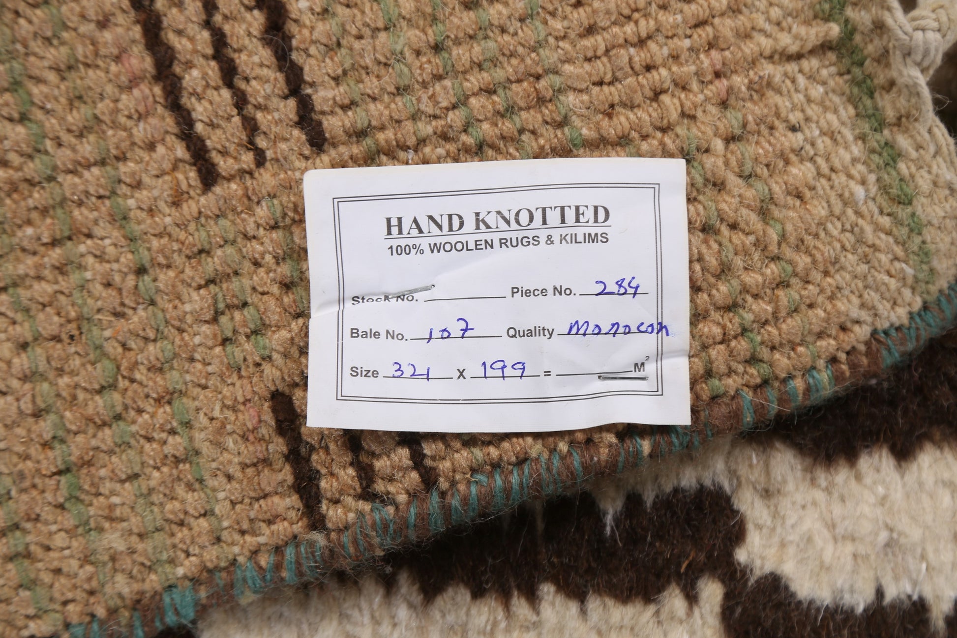 A Beautiful Genuine Morocco Moroccan rug is Hand Knotted by skillful weavers in Morocco with 100% Wool Material. This rug is in New, First Quality condition. dimensions are 10' 9'' X 6' 7'' in foot and 328 X 201 in centimeter. the primary color is Multi-Colored.