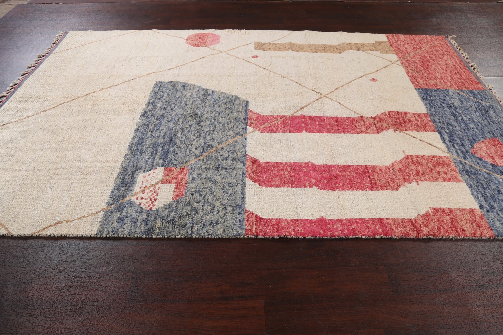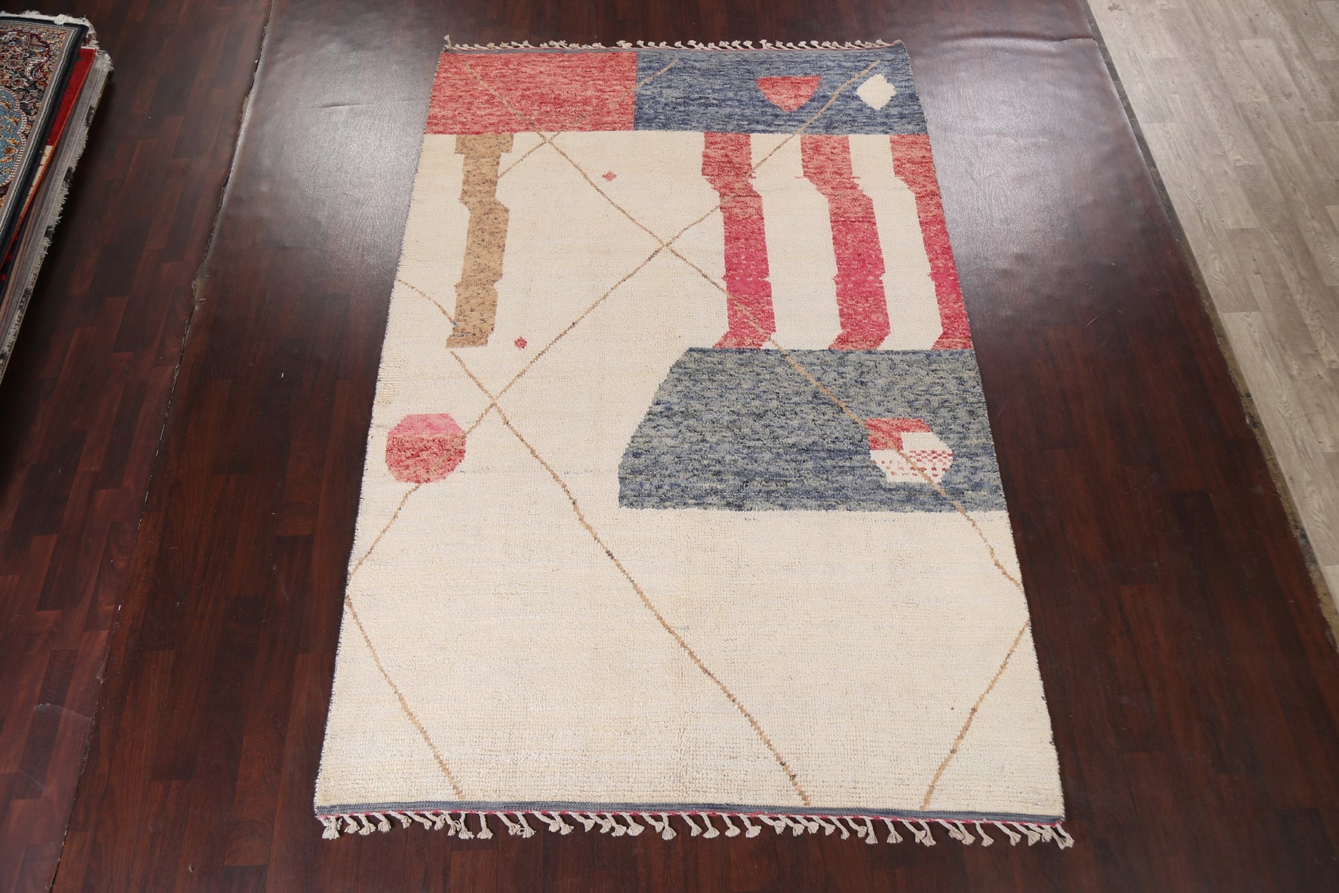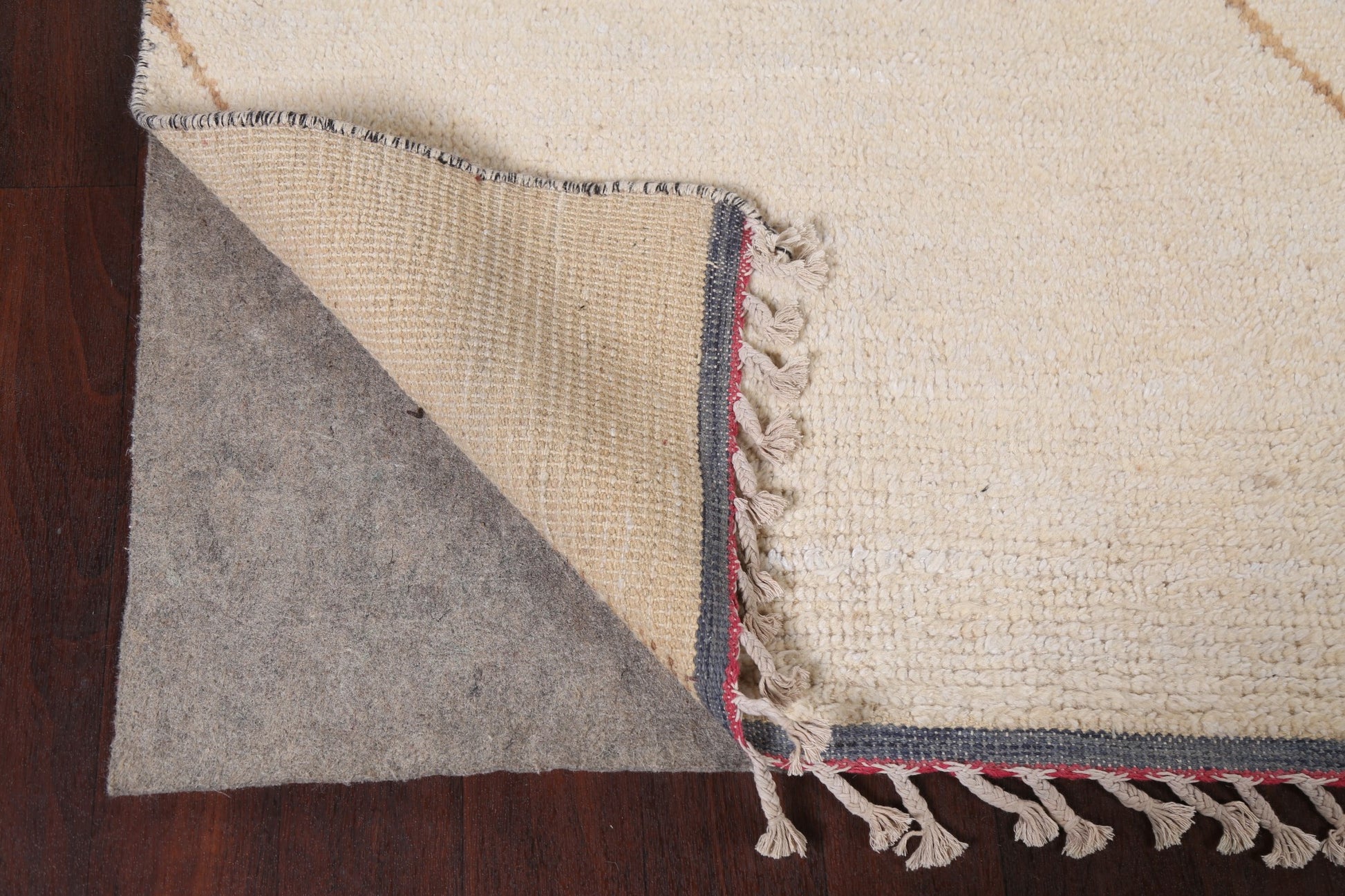 A Beautiful Genuine Morocco Moroccan rug is Hand Knotted by skillful weavers in Morocco with 100% Wool Material. This rug is in New, First Quality condition. dimensions are 10' 6'' X 6' 10'' in foot and 320 X 208 in centimeter. the primary color is Beige & Ivories.
