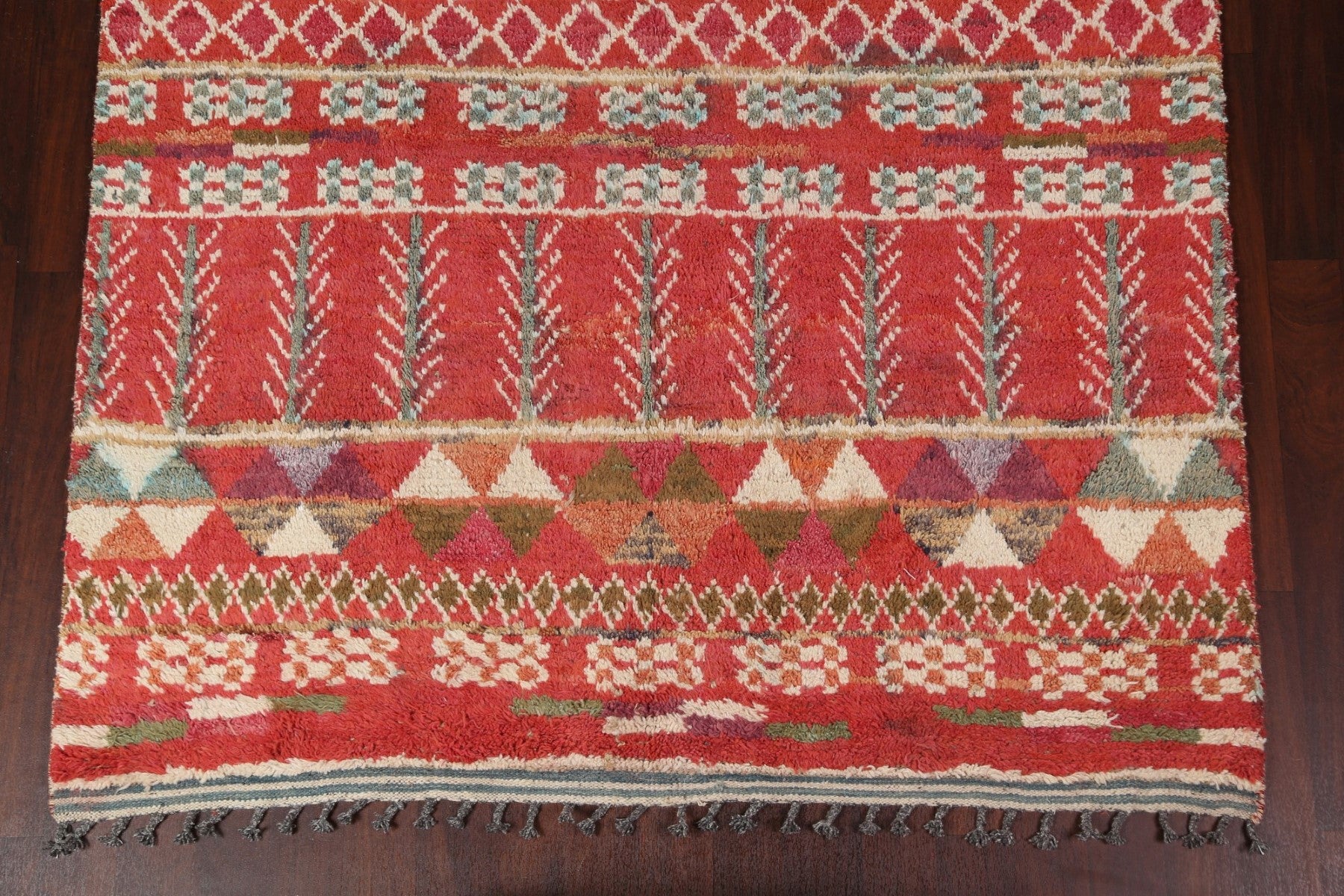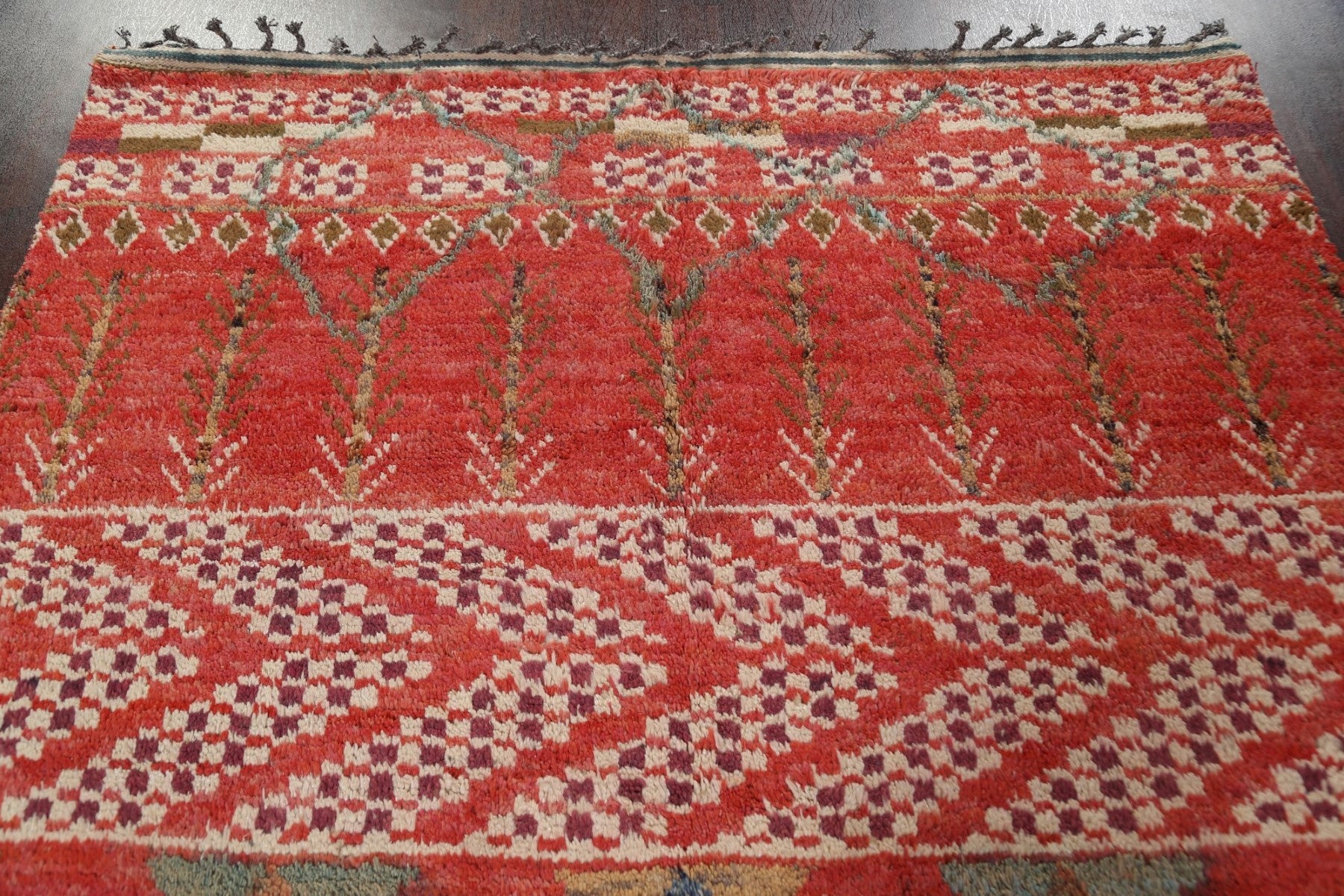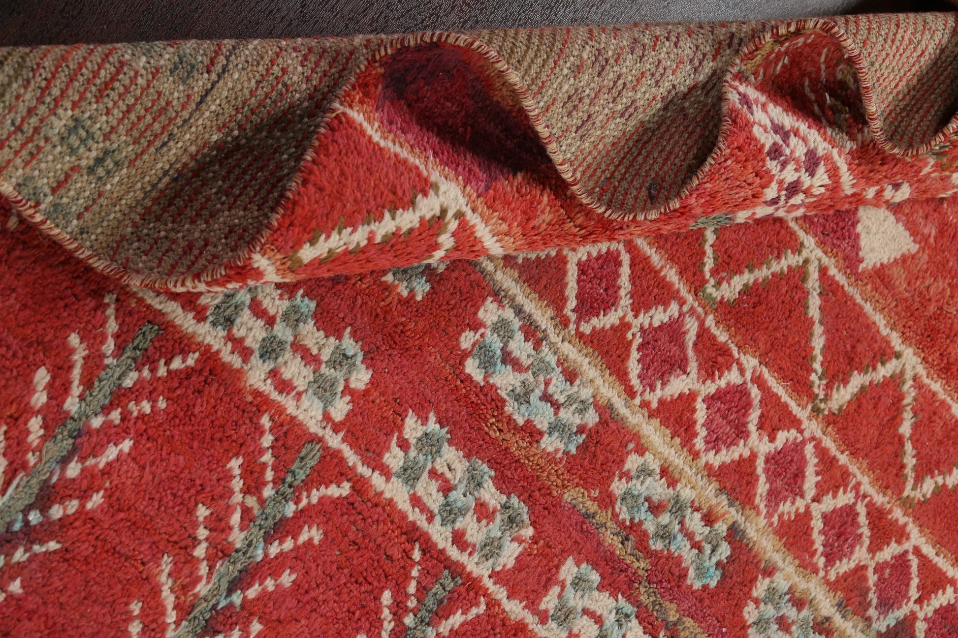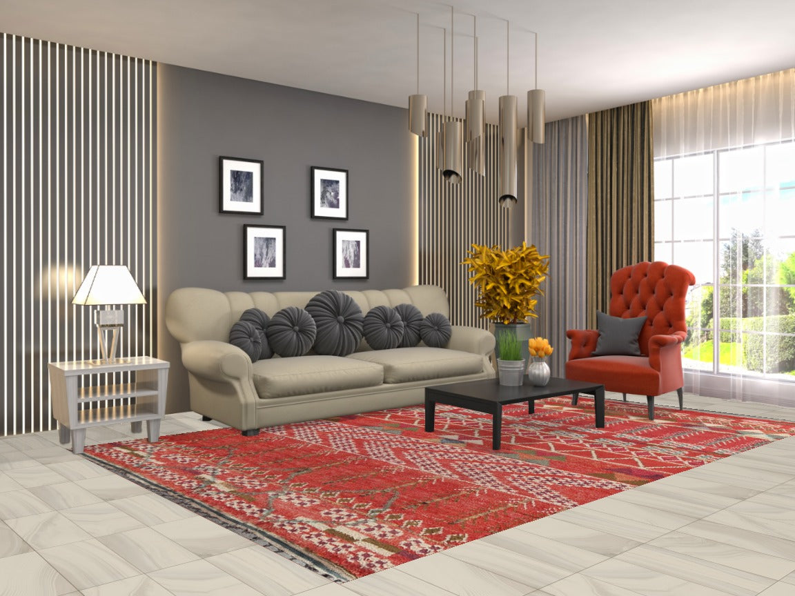 A Beautiful Genuine Morocco Moroccan rug is Hand Knotted by skillful weavers in Morocco with 100% Wool Material. This rug is in New, First Quality condition. dimensions are 10' 10'' X 6' 10'' in foot and 330 X 208 in centimeter. the primary color is Red.