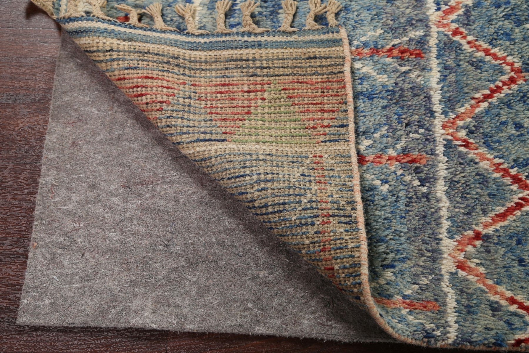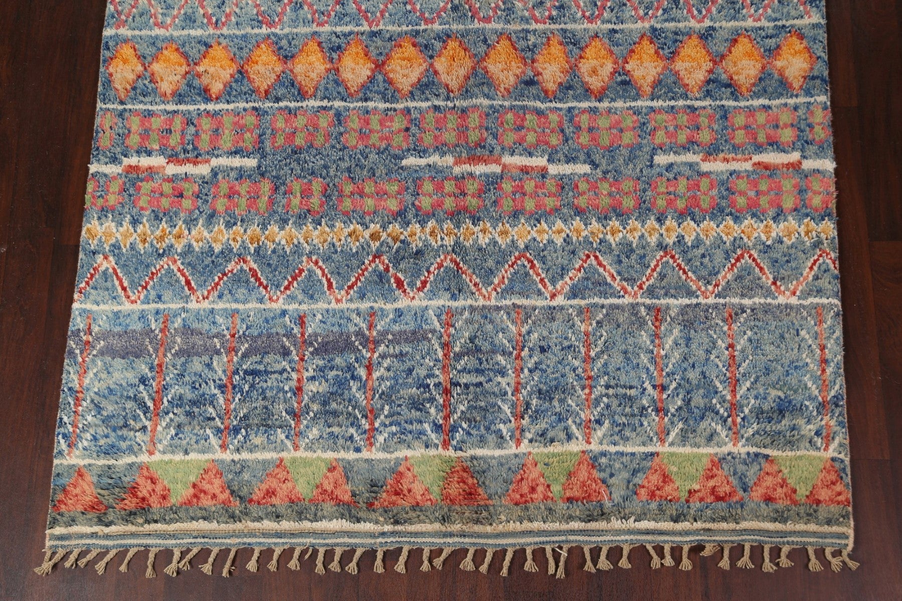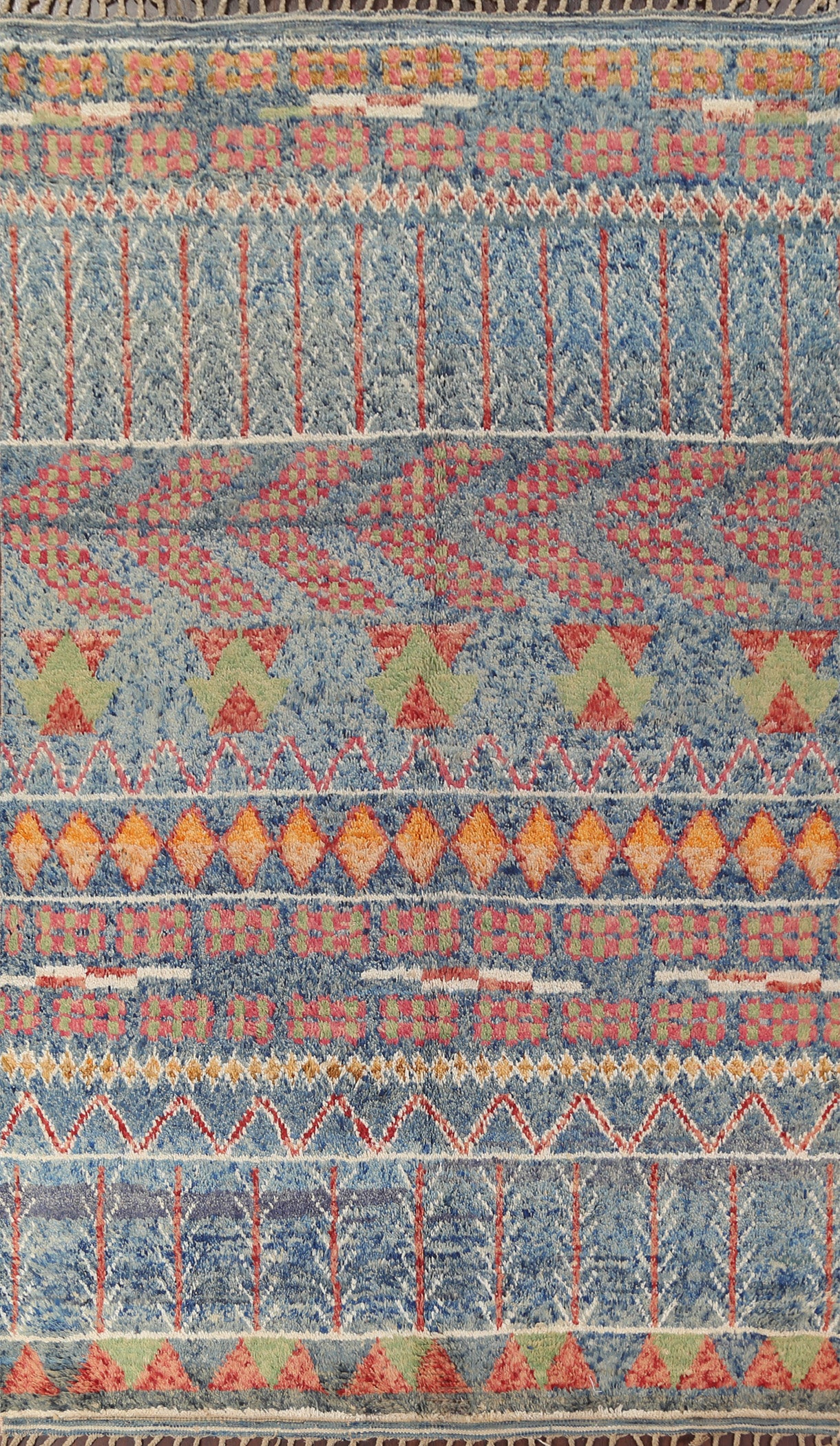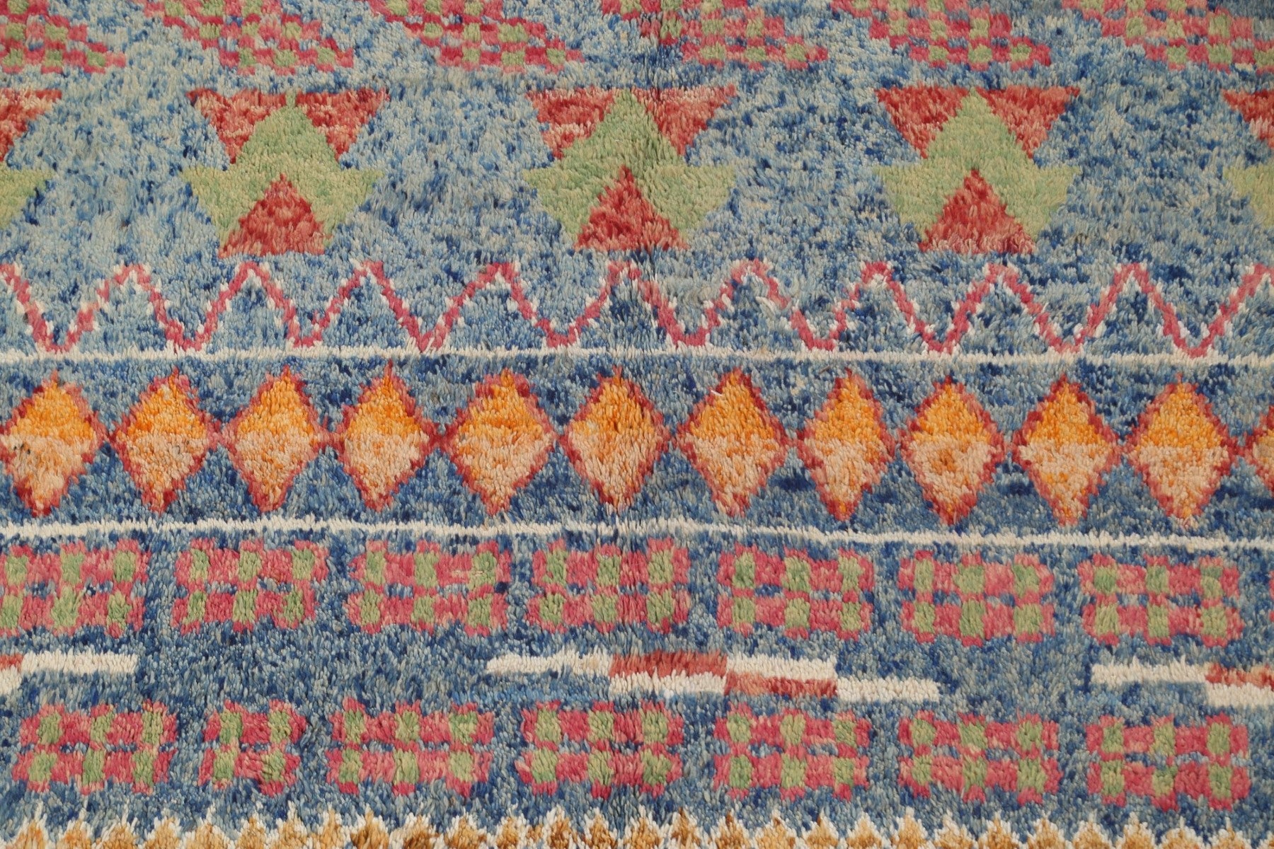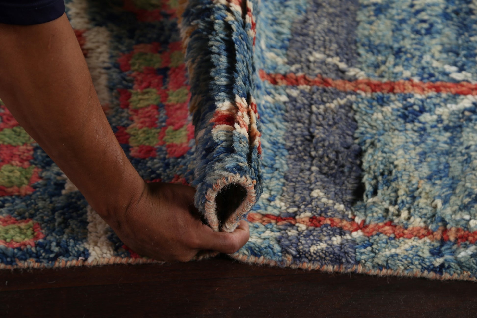 A Beautiful Genuine Morocco Moroccan rug is Hand Knotted by skillful weavers in Morocco with 100% Wool Material. This rug is in New, First Quality condition. dimensions are 10' 11'' X 6' 10'' in foot and 333 X 208 in centimeter. the primary color is Navy Blue & Blues.
