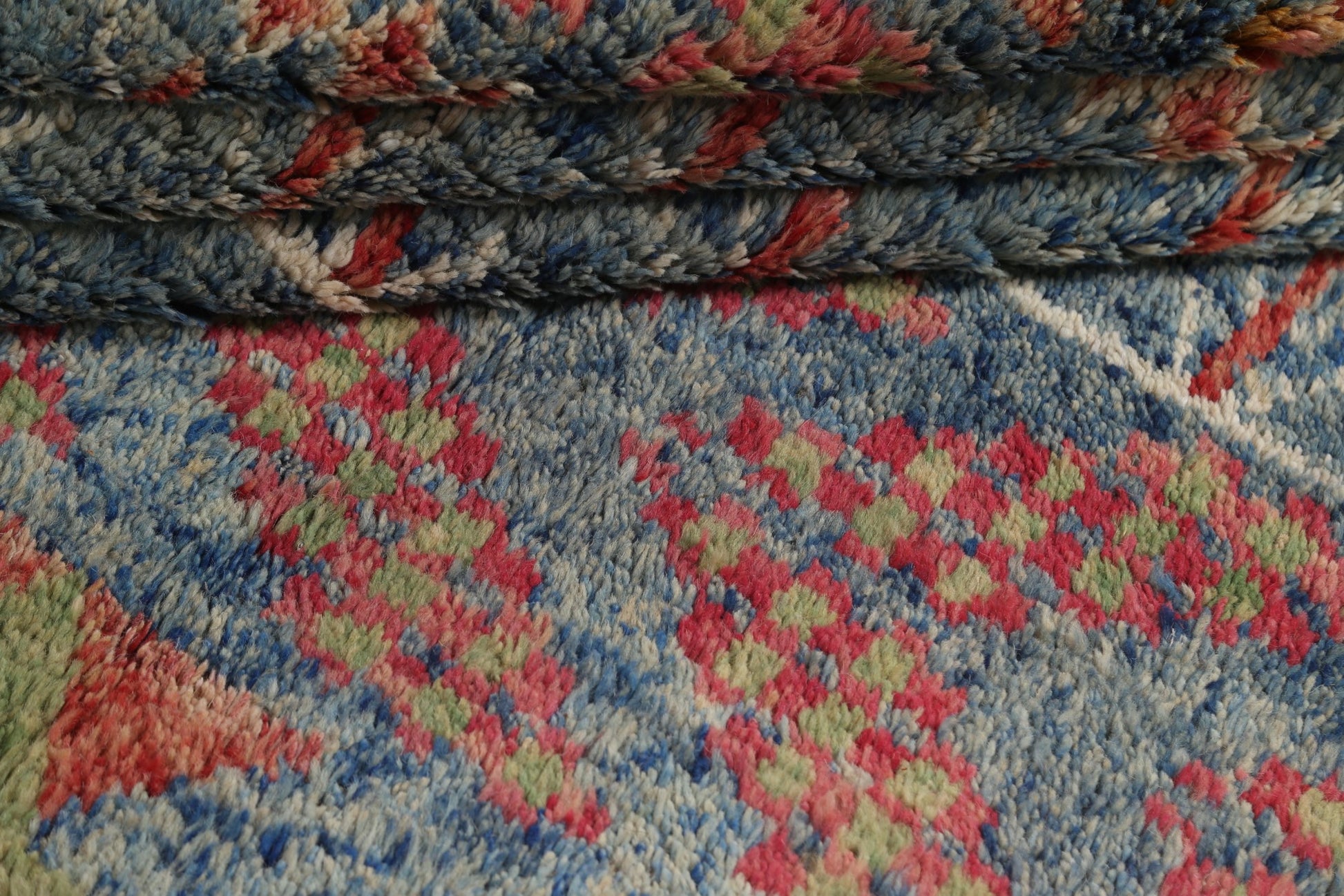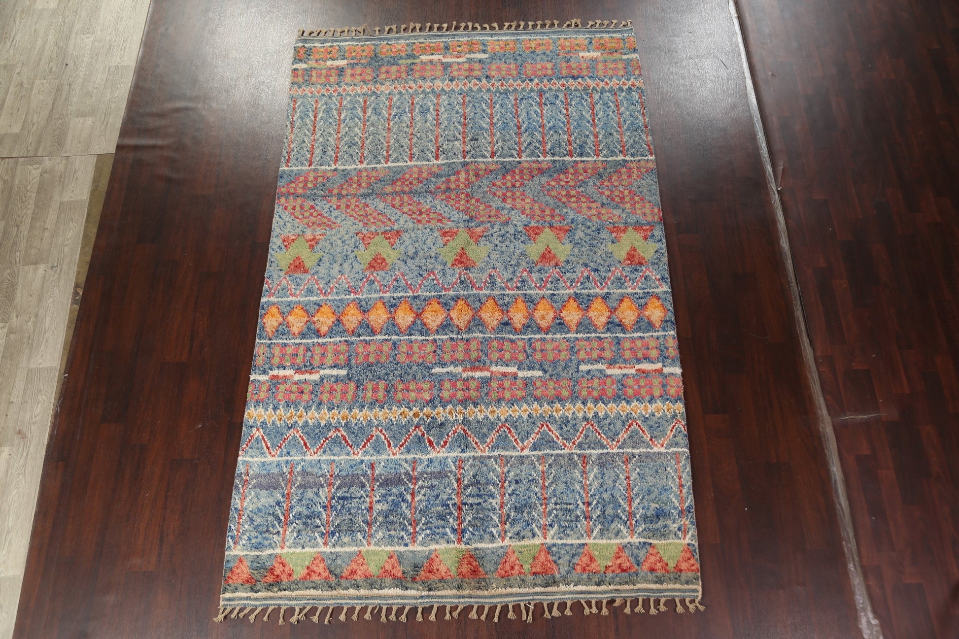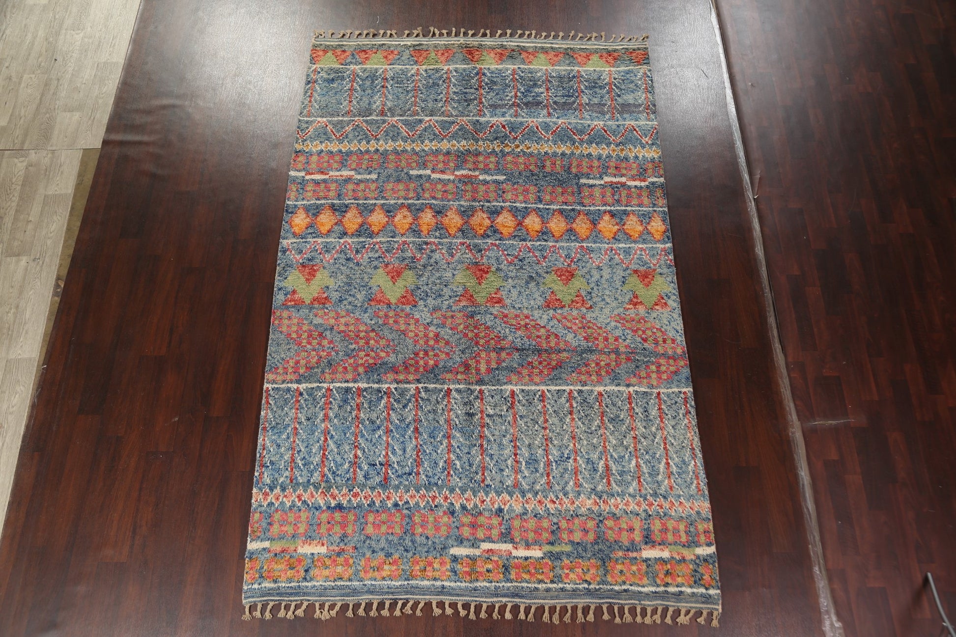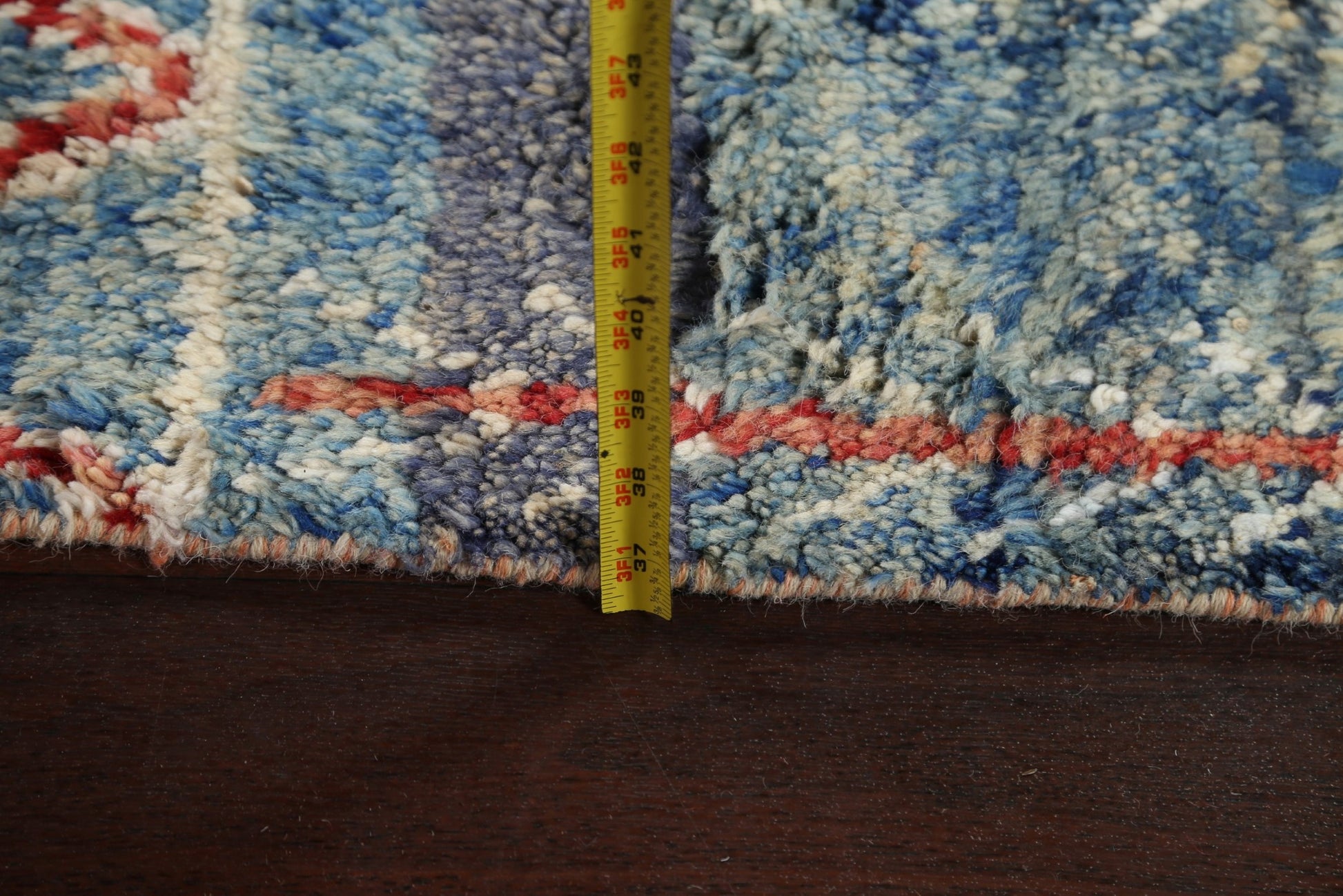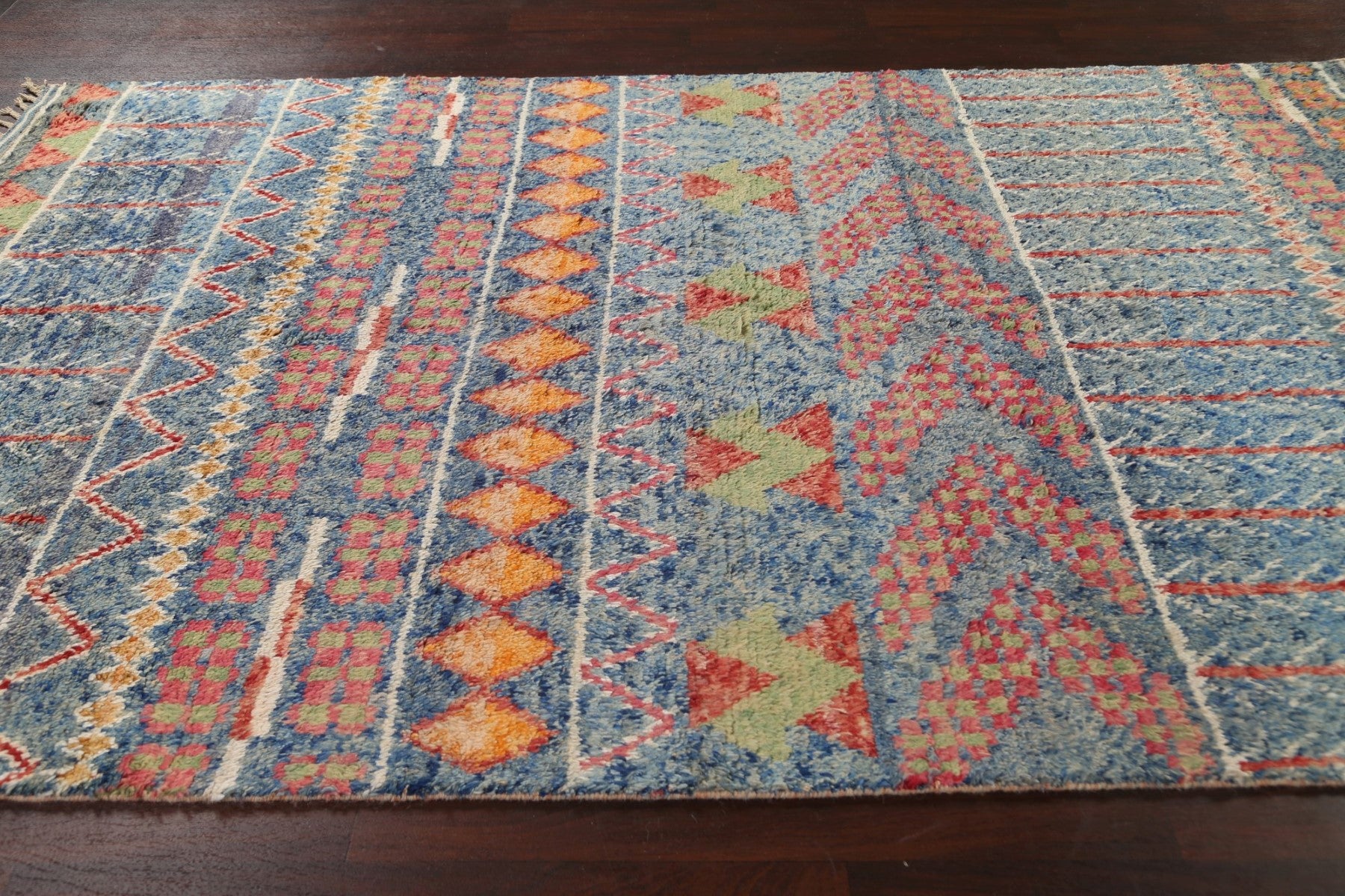A Beautiful Genuine Morocco Moroccan rug is Hand Knotted by skillful weavers in Morocco with 100% Wool Material. This rug is in New, First Quality condition. dimensions are 10' 11'' X 6' 10'' in foot and 333 X 208 in centimeter. the primary color is Navy Blue & Blues.