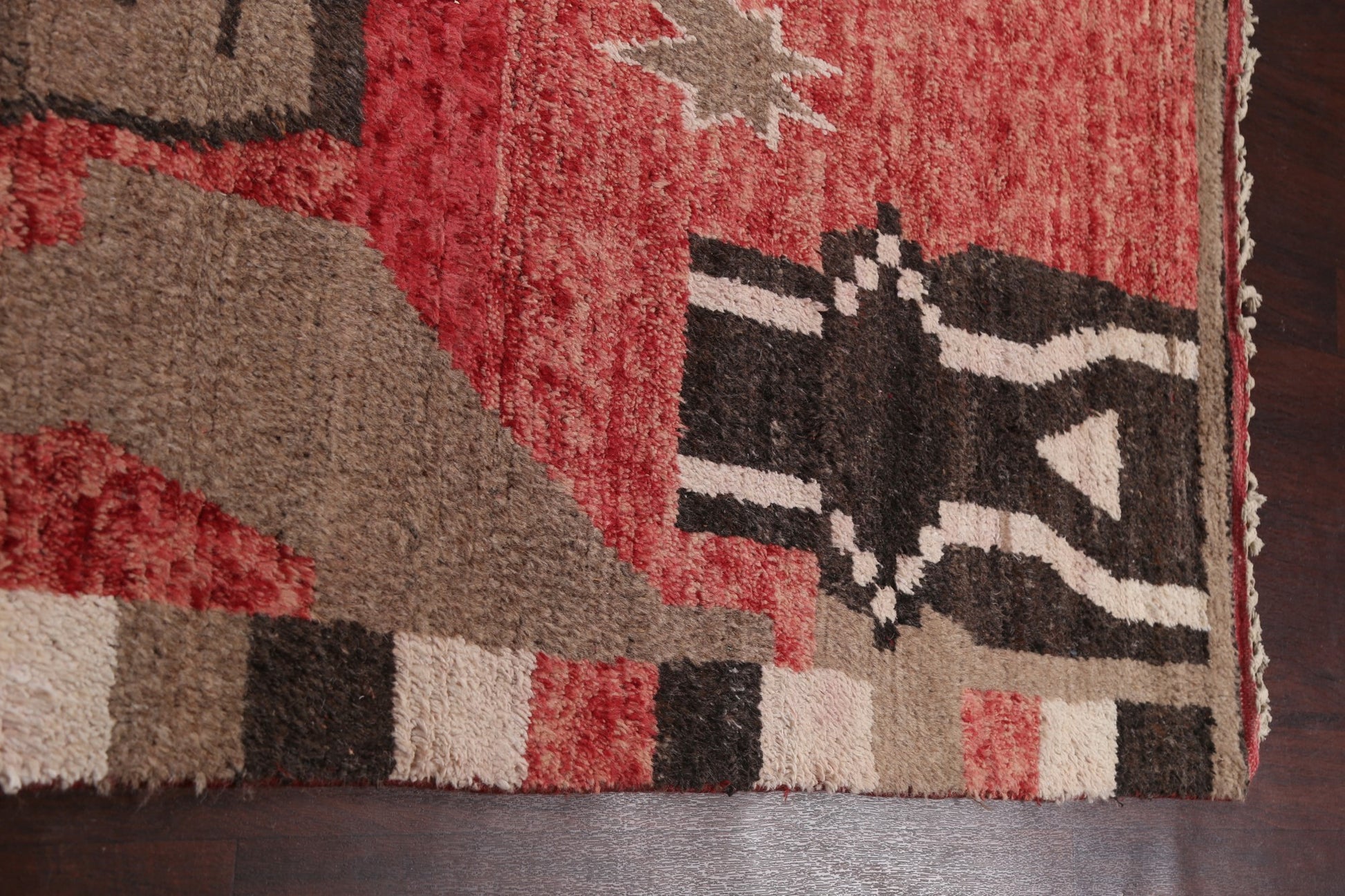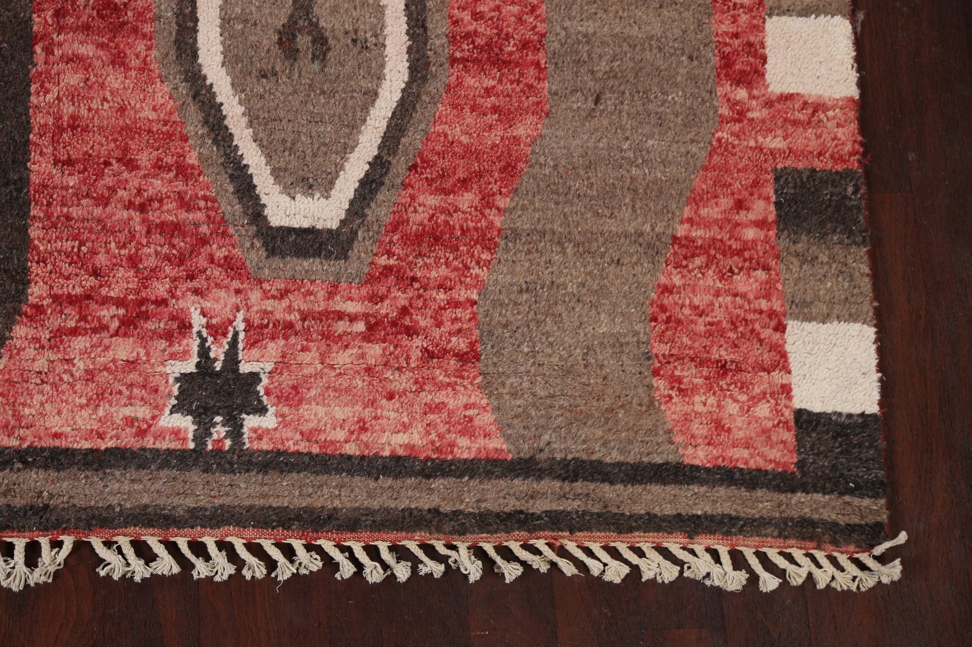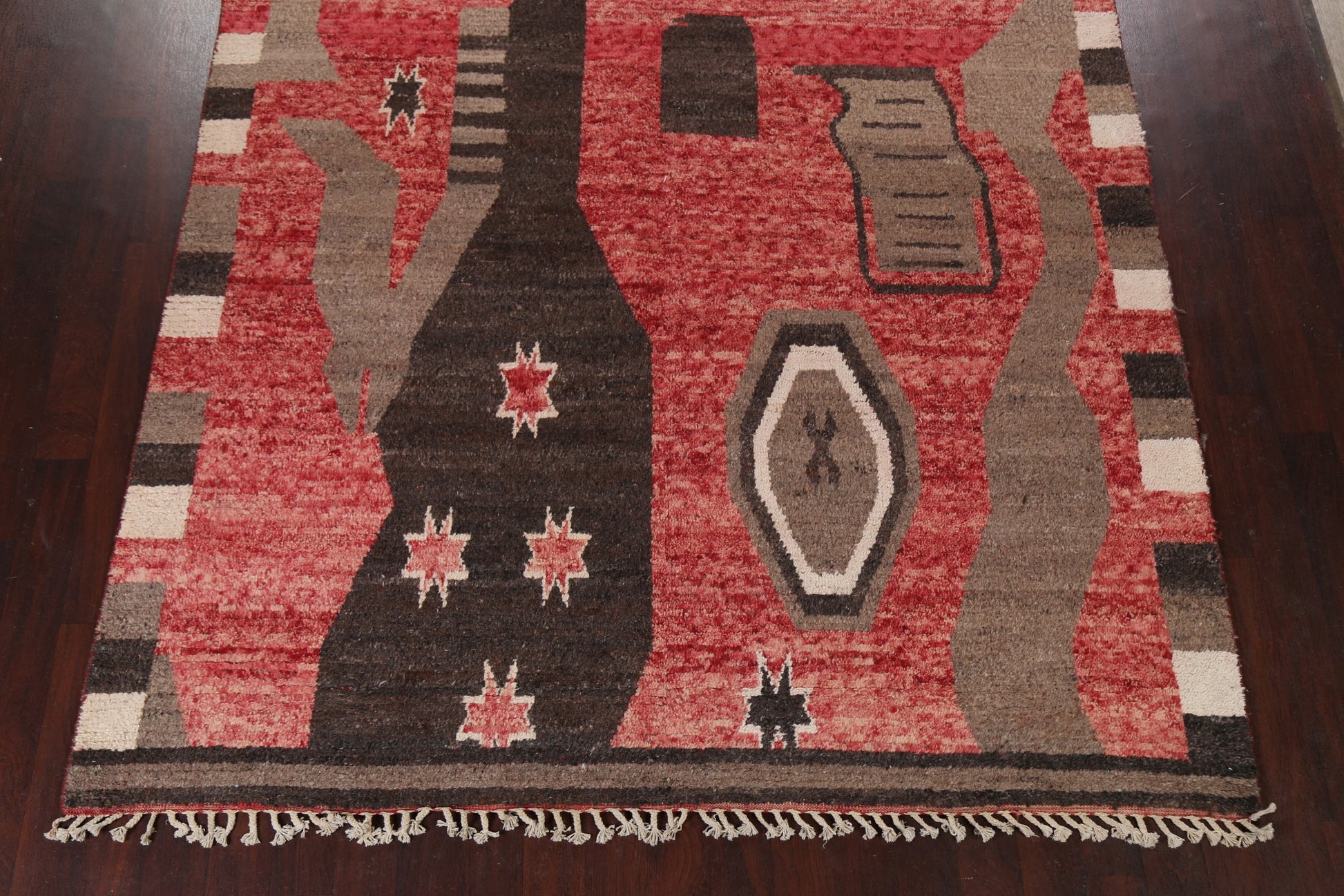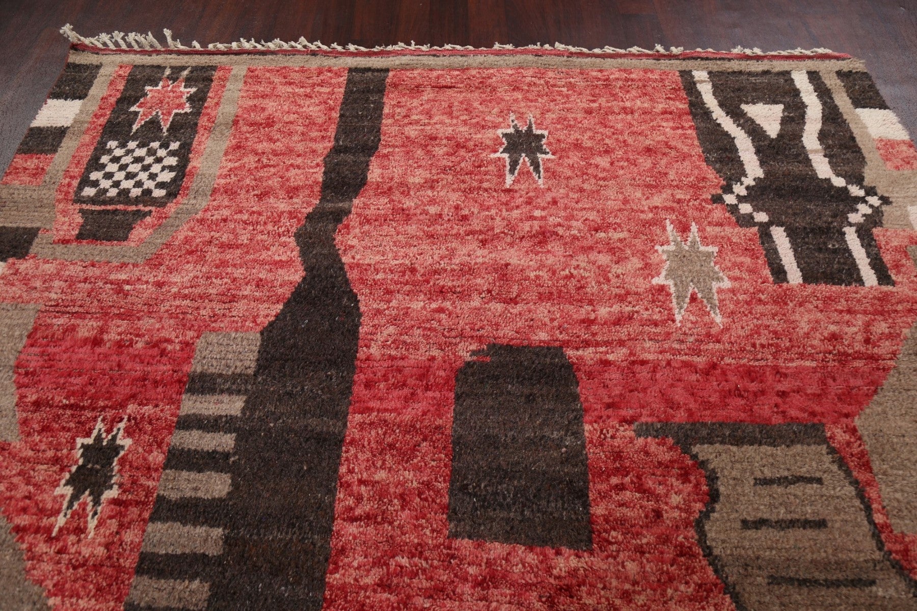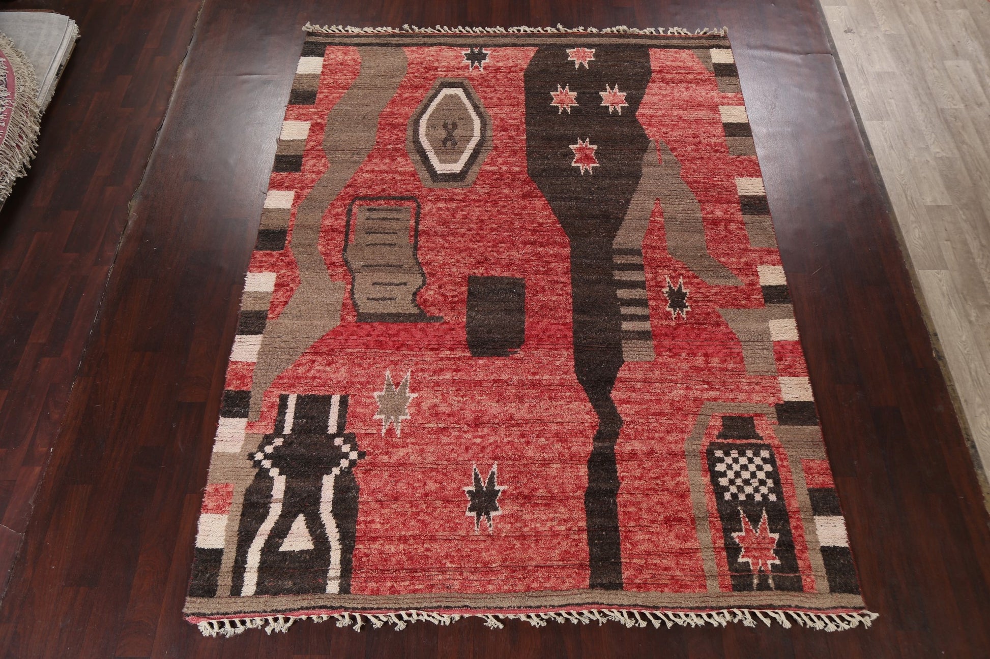 A Beautiful Genuine Morocco Moroccan rug is Hand Knotted by skillful weavers in Morocco with 100% Wool Material. This rug is in New, First Quality condition. dimensions are 10' 8'' X 8' 1'' in foot and 325 X 246 in centimeter. the primary color is Red.