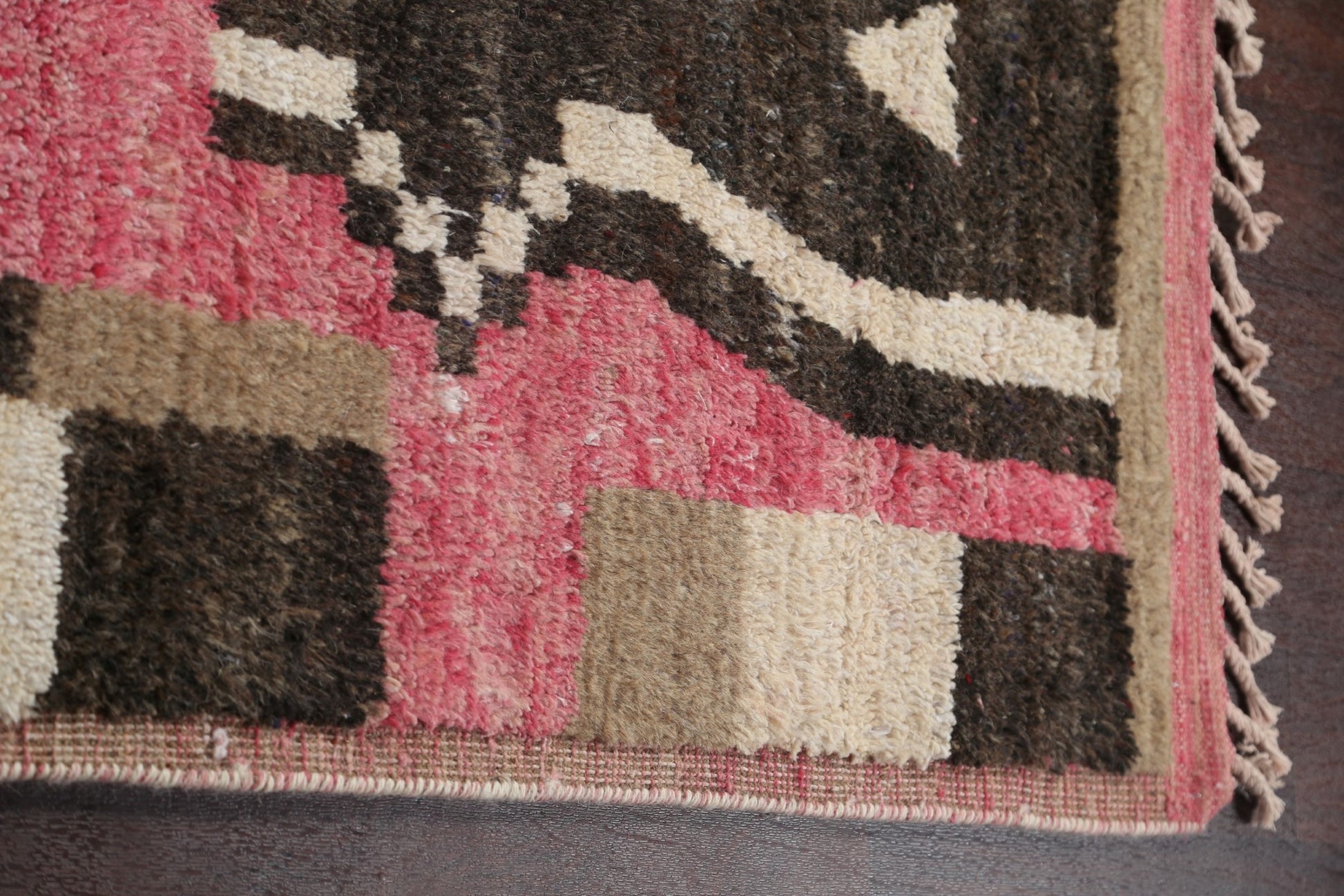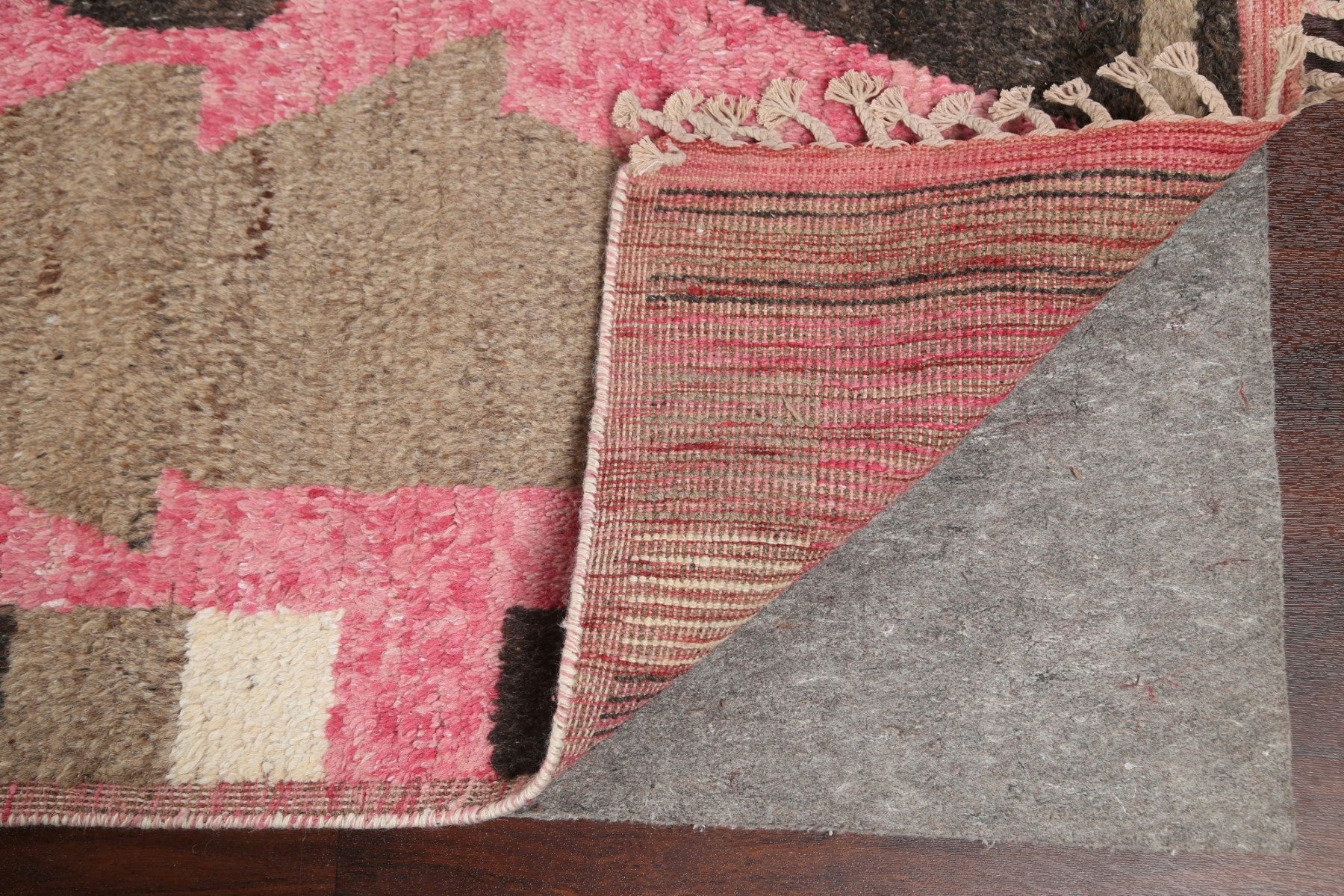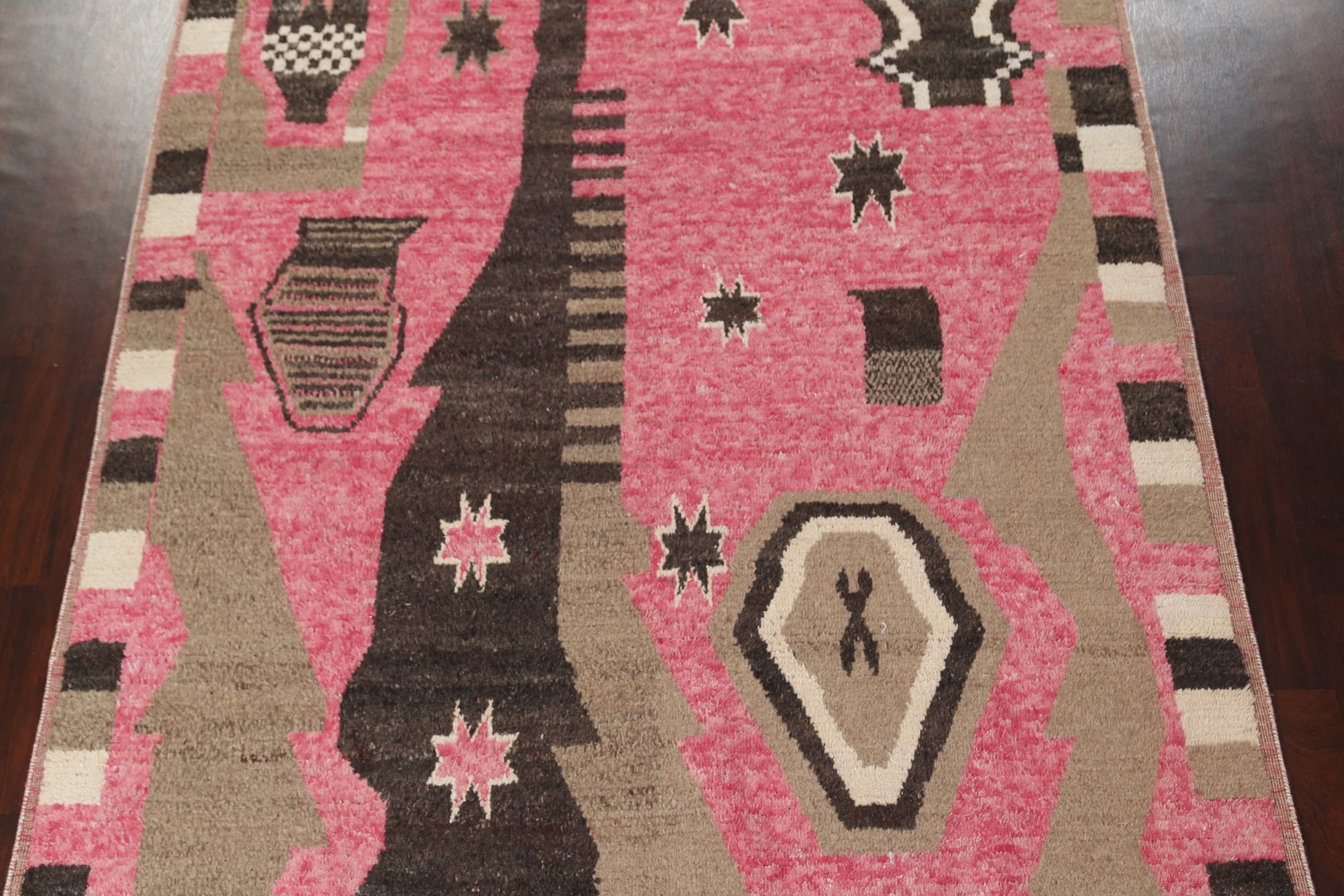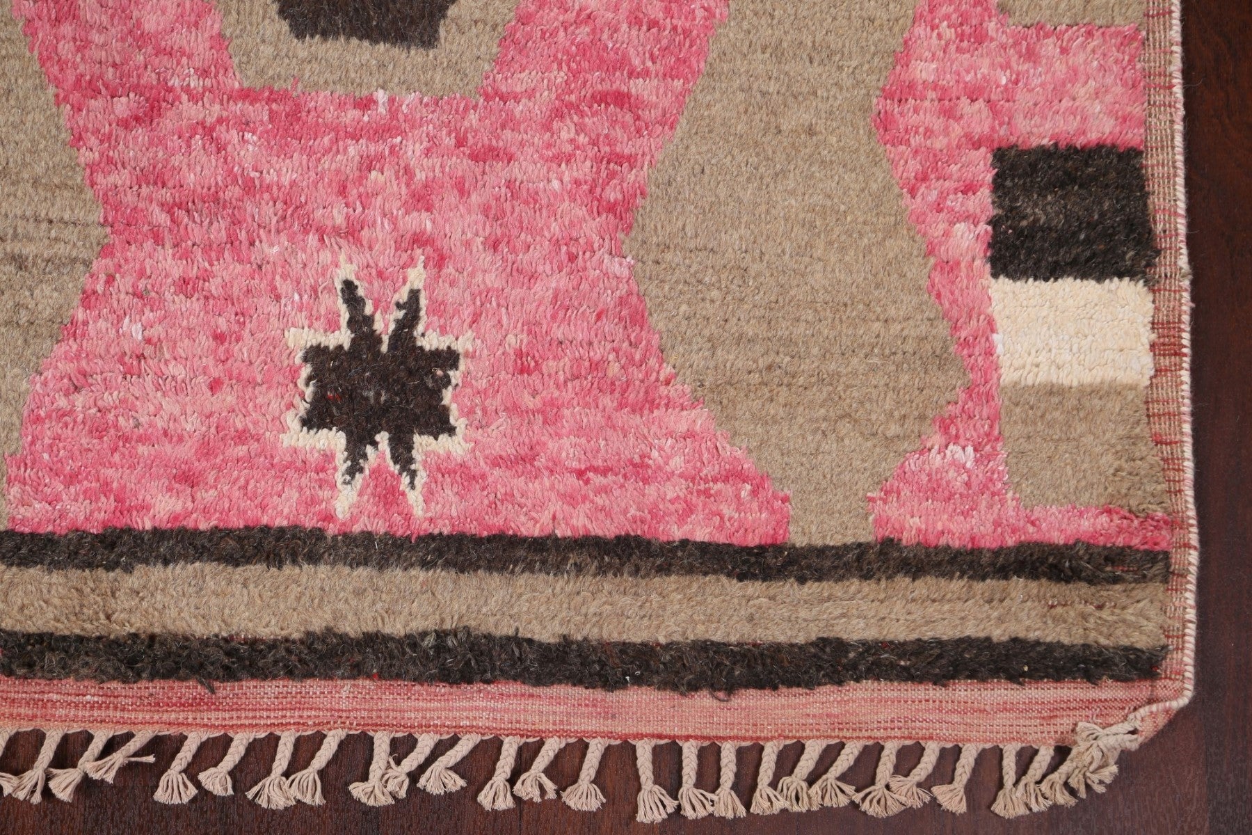 A Beautiful Genuine Morocco Moroccan rug is Hand Knotted by skillful weavers in Morocco with 100% Wool Material. This rug is in New, First Quality condition. dimensions are 10' 7'' X 8' 0'' in foot and 323 X 244 in centimeter. the primary color is Pink.