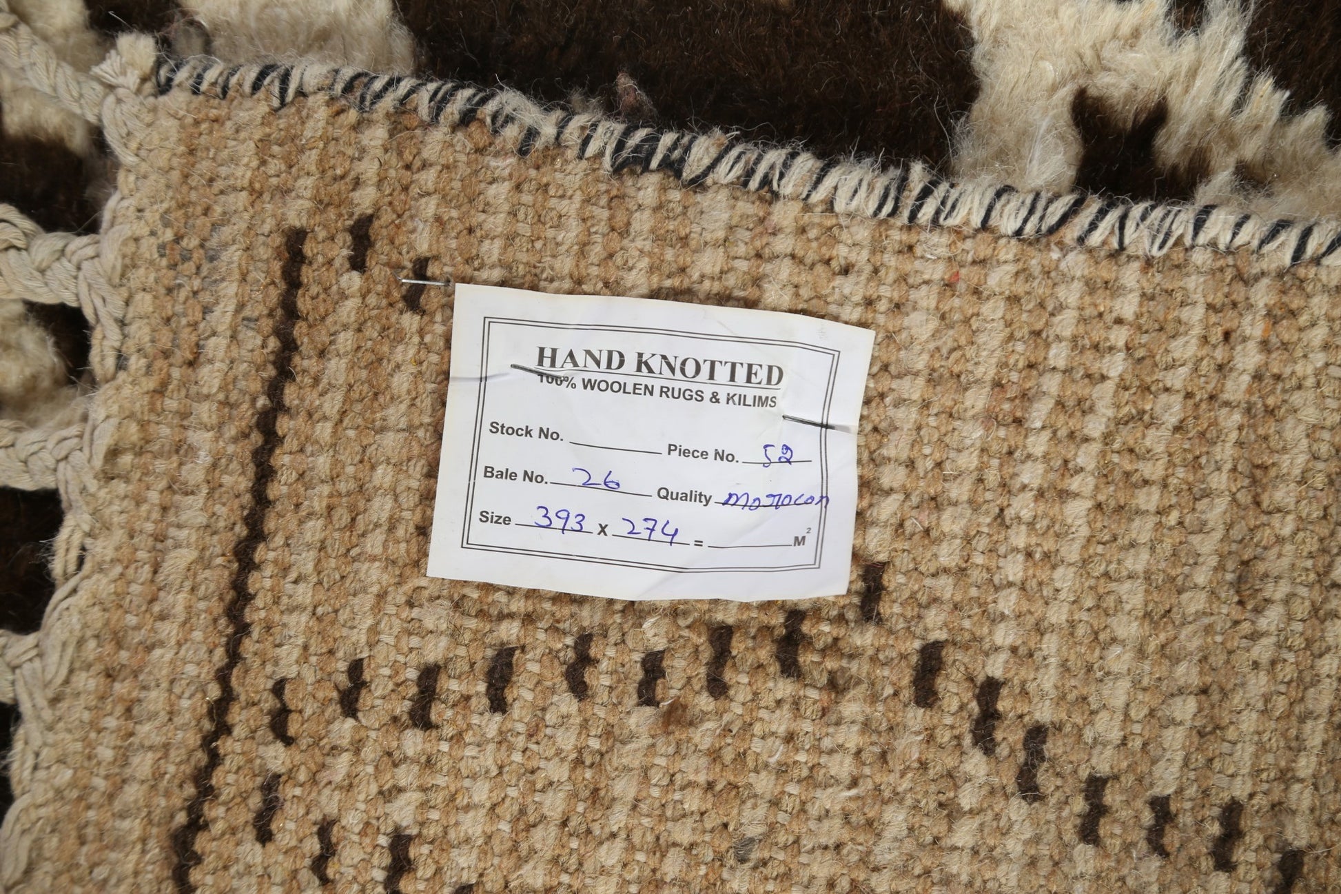 A Beautiful Genuine Morocco Moroccan rug is Hand Knotted by skillful weavers in Morocco with 100% Wool Material. This rug is in New, First Quality condition. dimensions are 13' 0'' X 9' 0'' in foot and 396 X 274 in centimeter. the primary color is Beige & Ivories.
