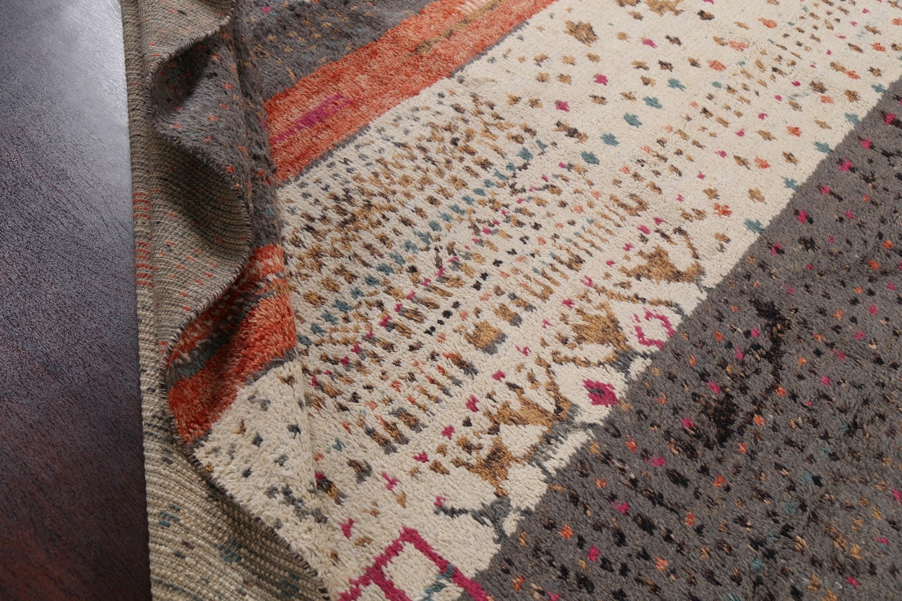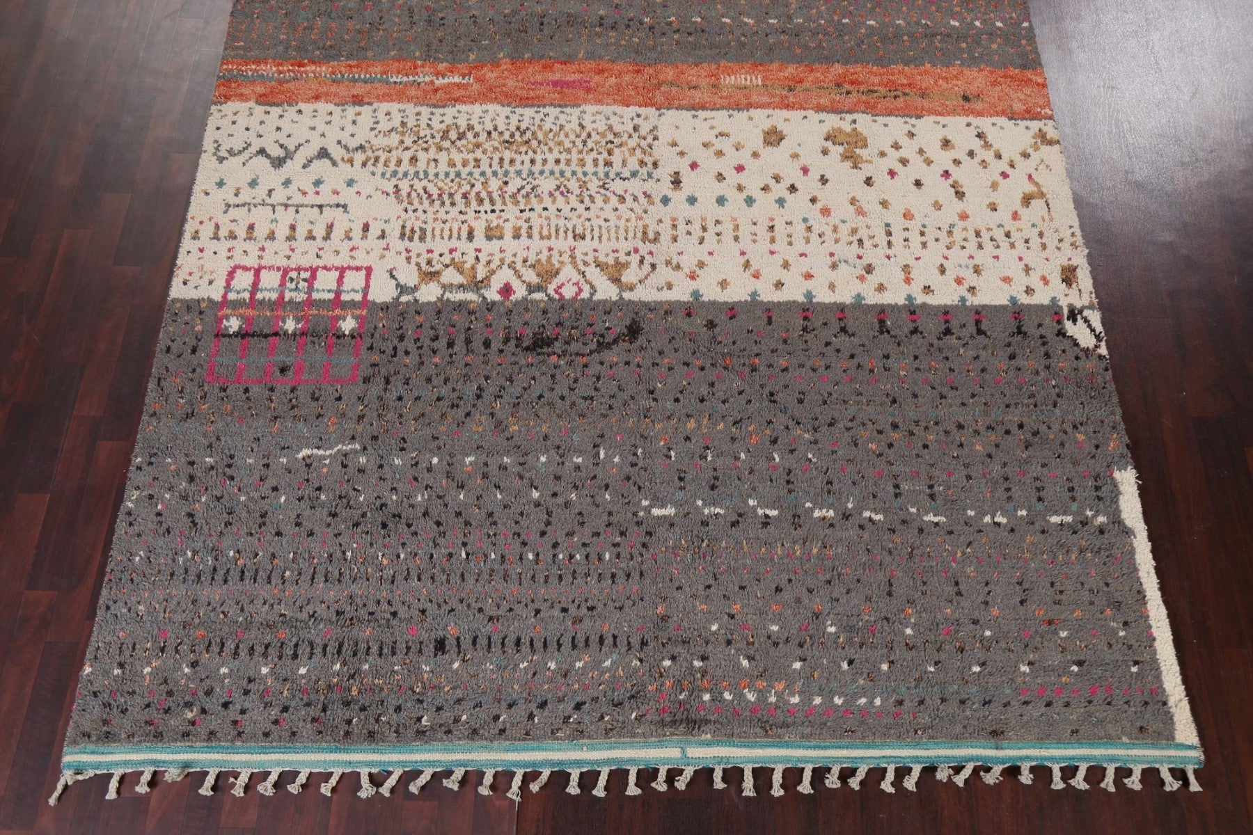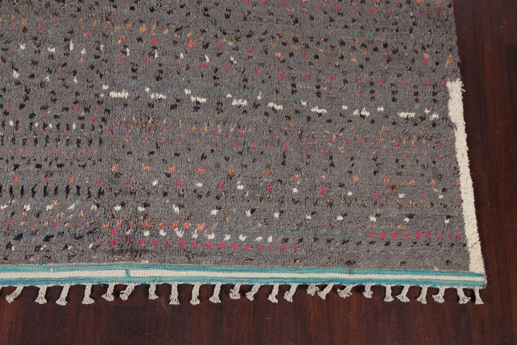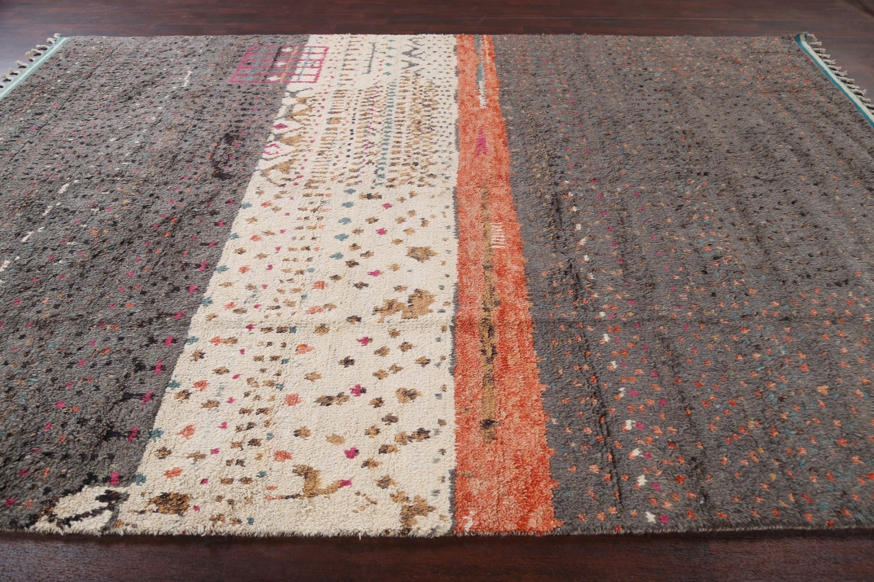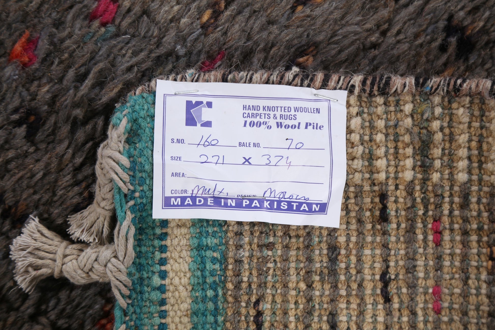 A Beautiful Genuine Pakistan Moroccan rug is Hand Knotted by skillful weavers in Pakistan with 100% Wool Material. This rug is in New, First Quality condition. dimensions are 12' 7'' X 8' 10'' in foot and 384 X 269 in centimeter. the primary color is Greys & Charcoal.
