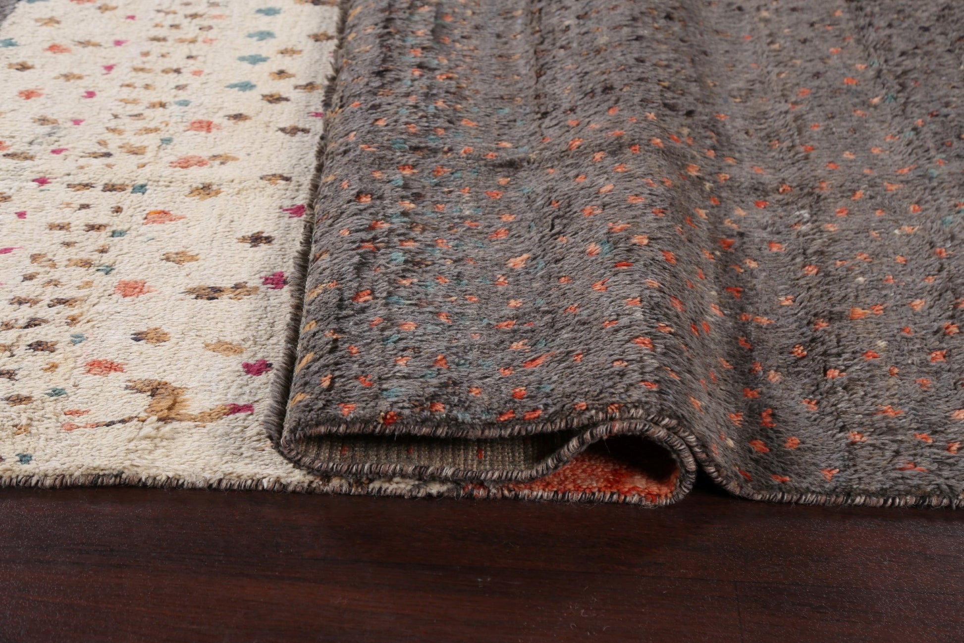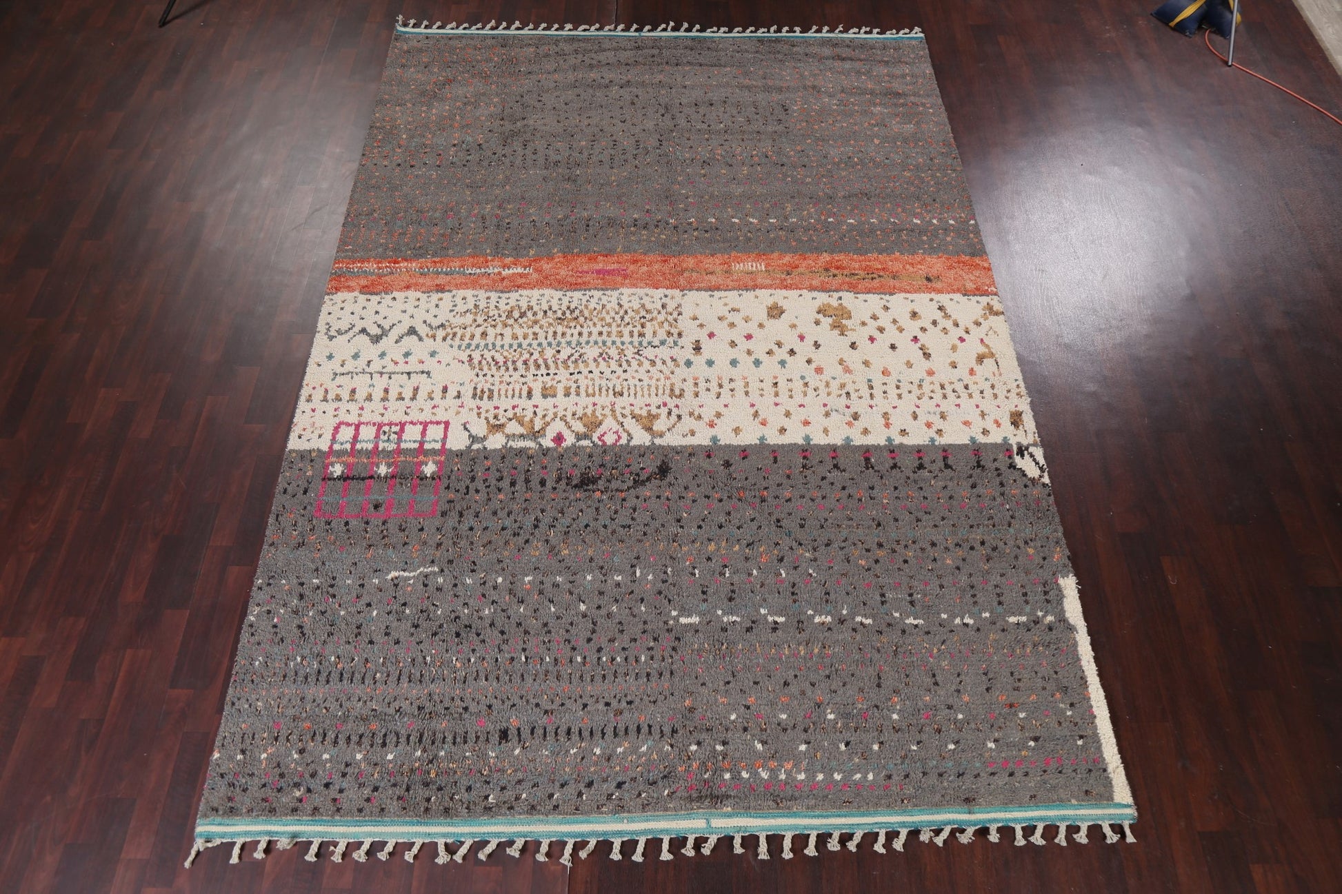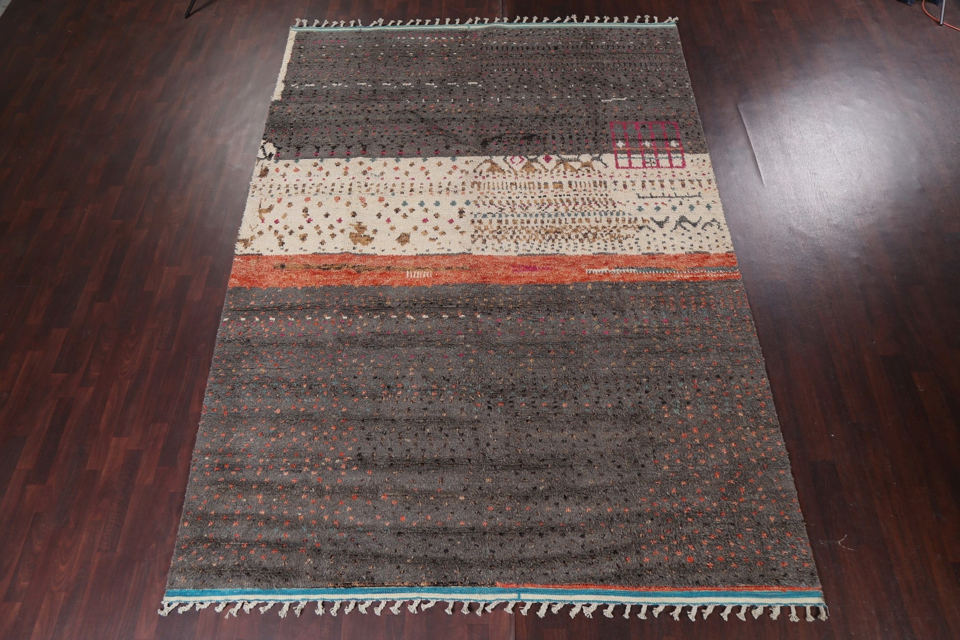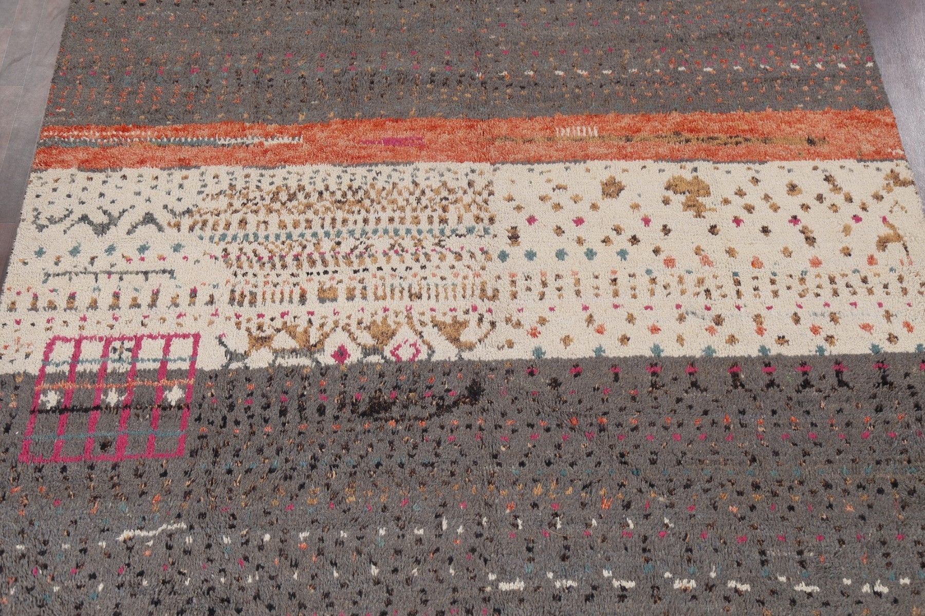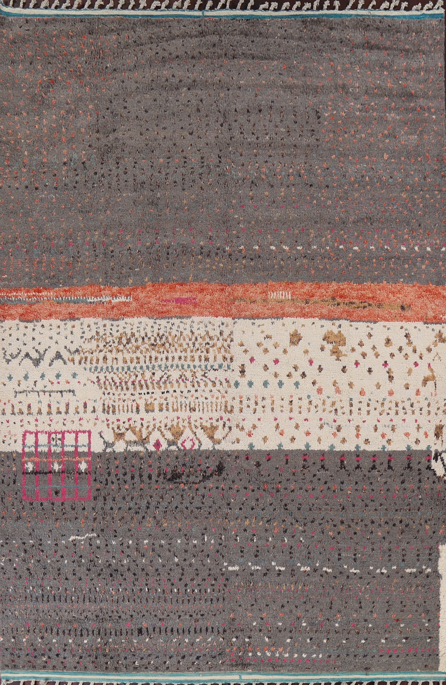 A Beautiful Genuine Pakistan Moroccan rug is Hand Knotted by skillful weavers in Pakistan with 100% Wool Material. This rug is in New, First Quality condition. dimensions are 12' 7'' X 8' 10'' in foot and 384 X 269 in centimeter. the primary color is Greys & Charcoal.