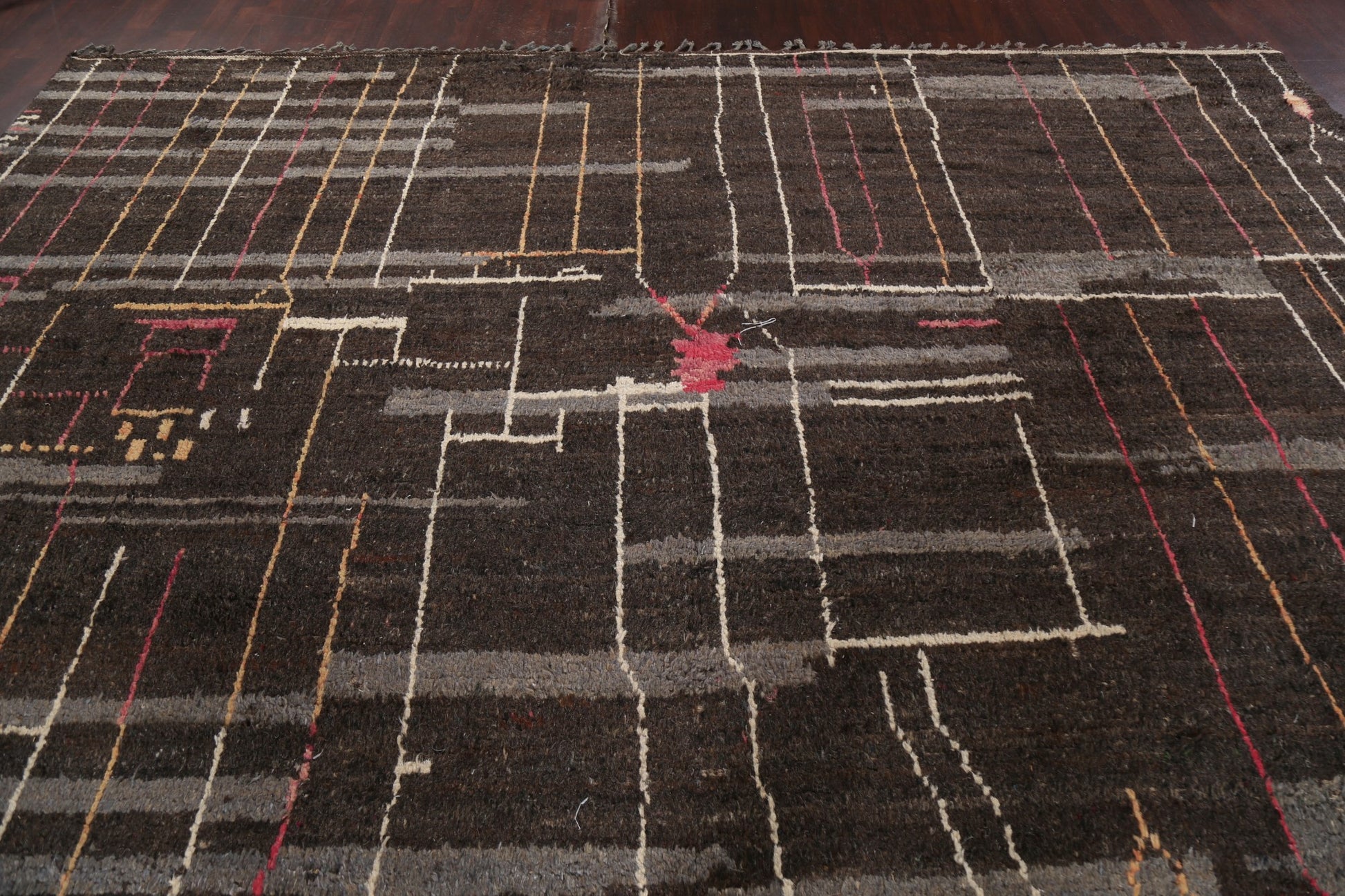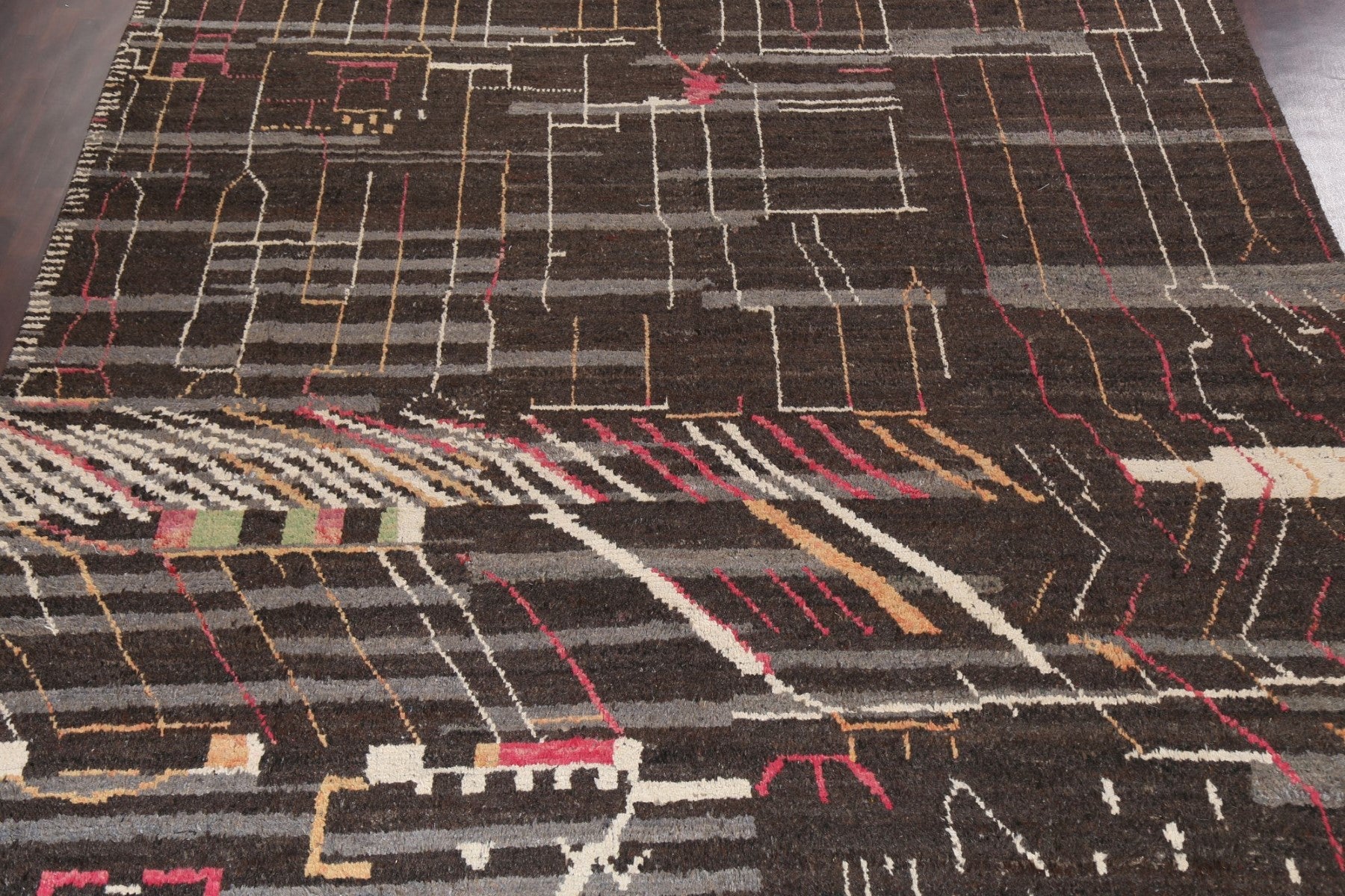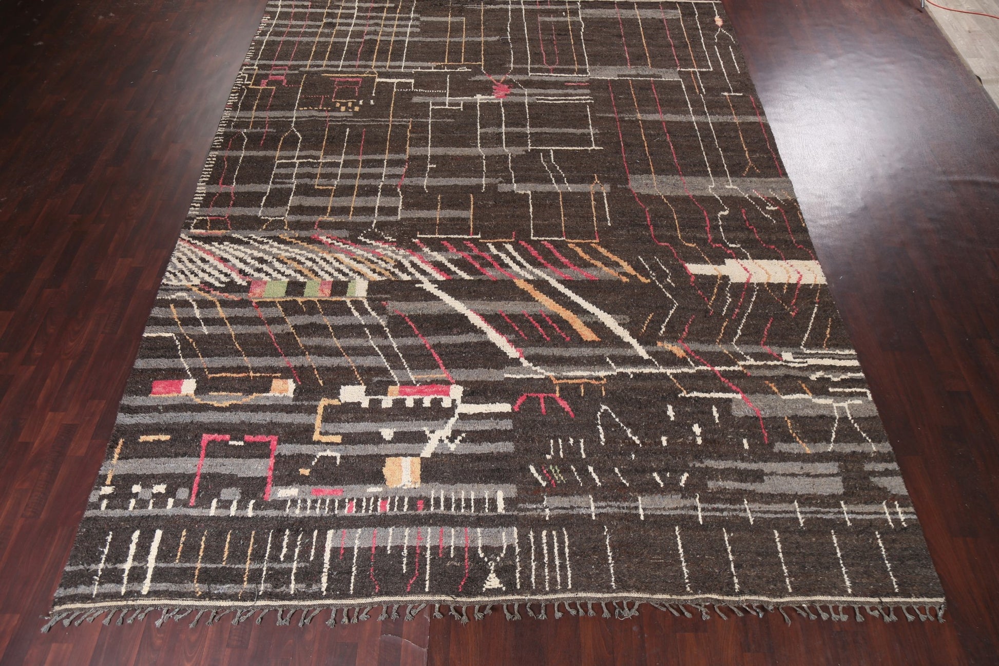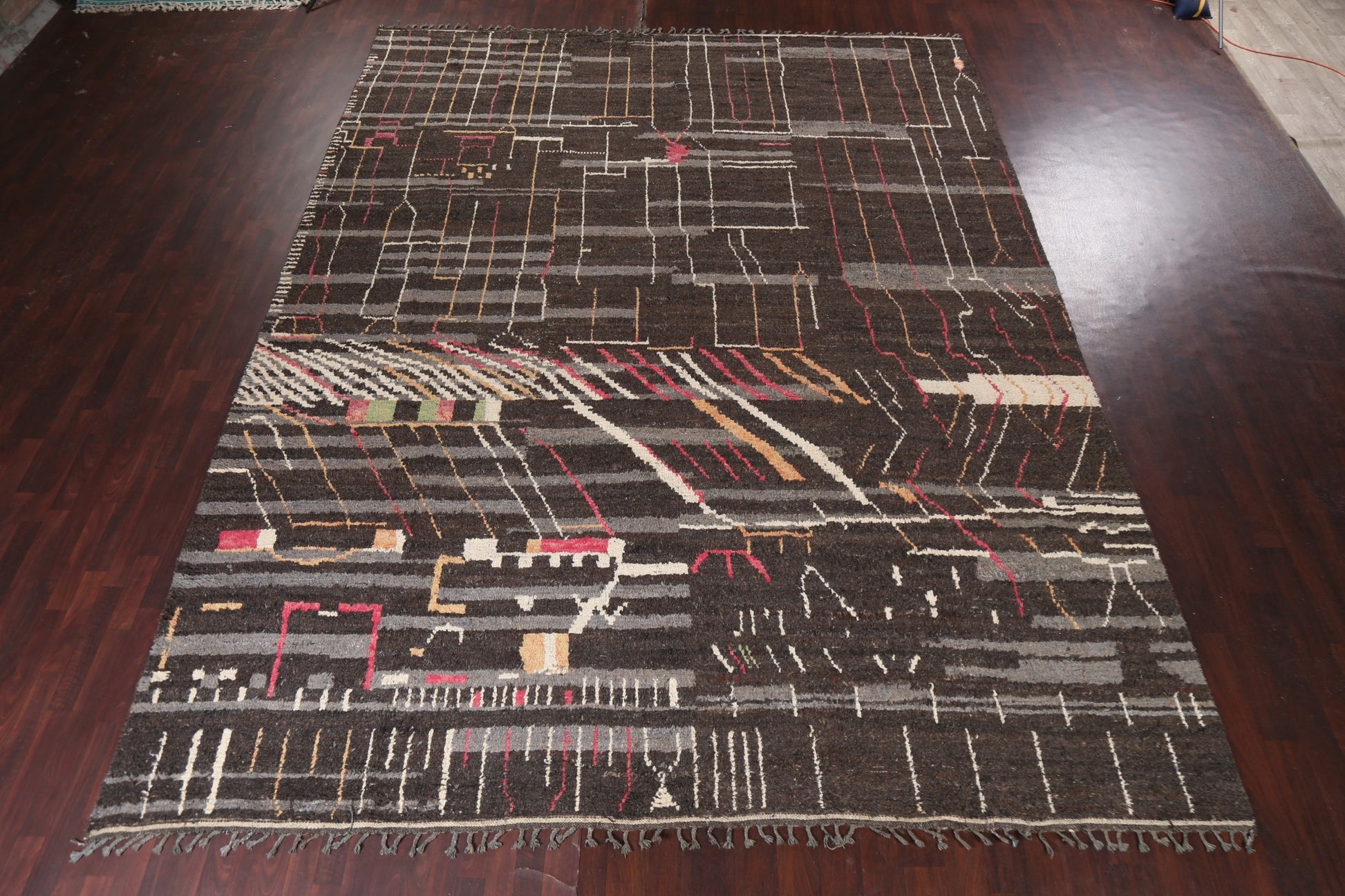 A Beautiful Genuine Morocco Moroccan rug is Hand Knotted by skillful weavers in Morocco with 100% Wool Material. This rug is in New, First Quality condition. dimensions are 15' 7'' X 11' 9'' in foot and 475 X 358 in centimeter. the primary color is Brown.