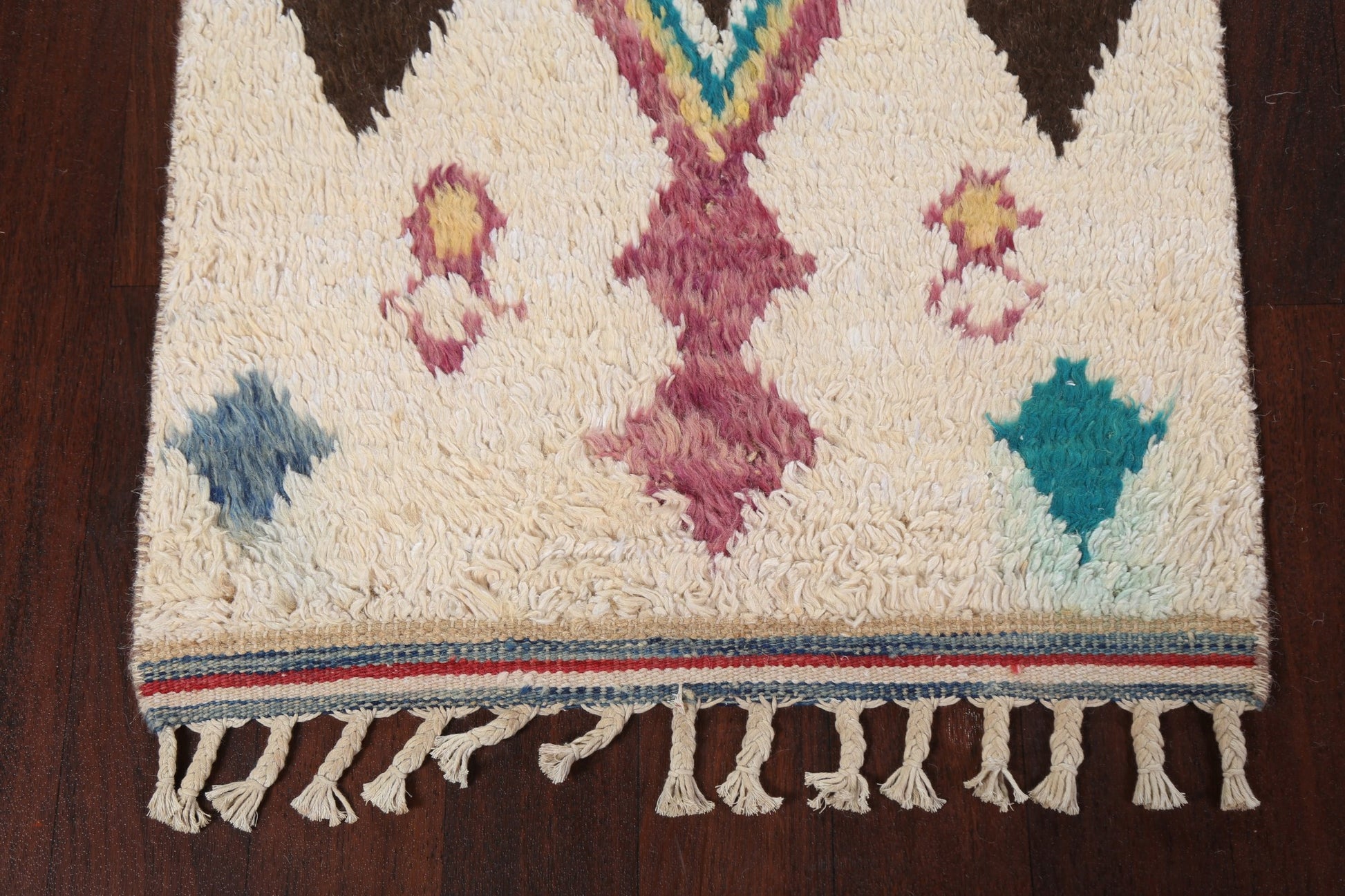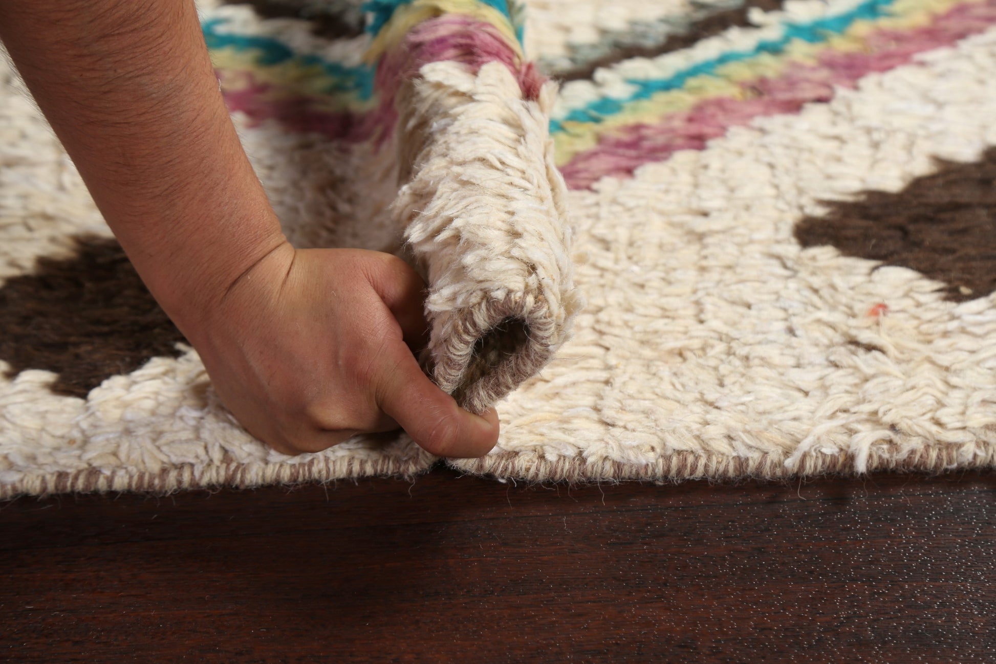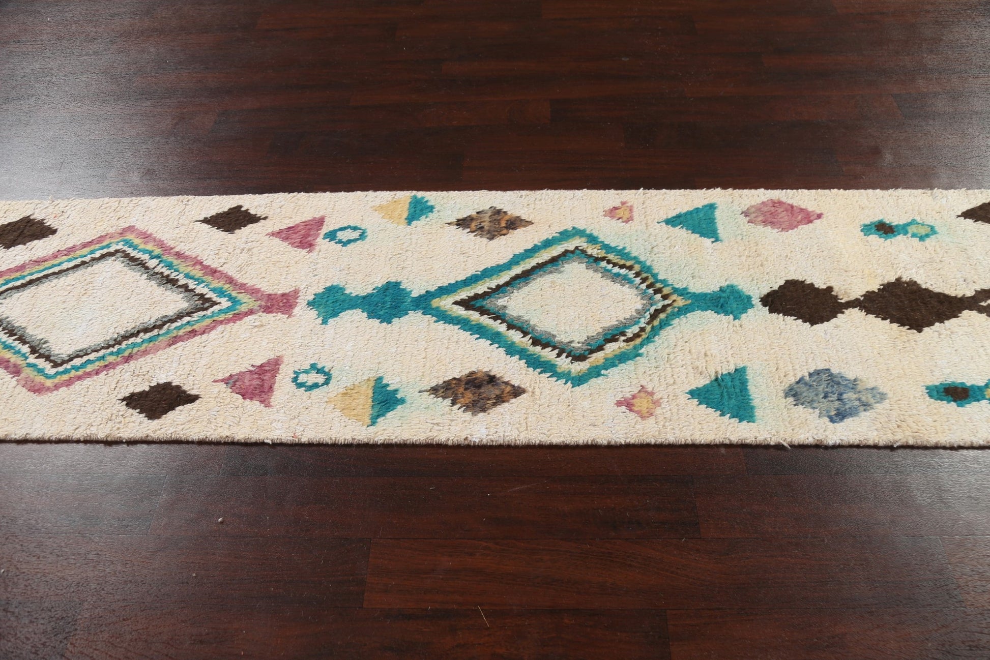 A Beautiful Genuine Morocco Moroccan rug is Hand Knotted by skillful weavers in Morocco with 100% Wool Material. This rug is in New, First Quality condition. dimensions are 12' 8'' X 2' 6'' in foot and 386 X 76 in centimeter. the primary color is Beige & Ivories.