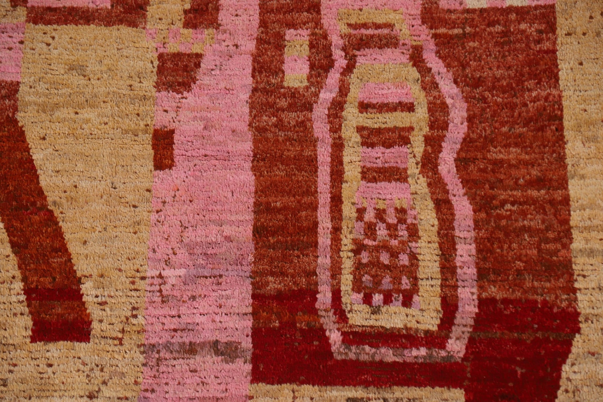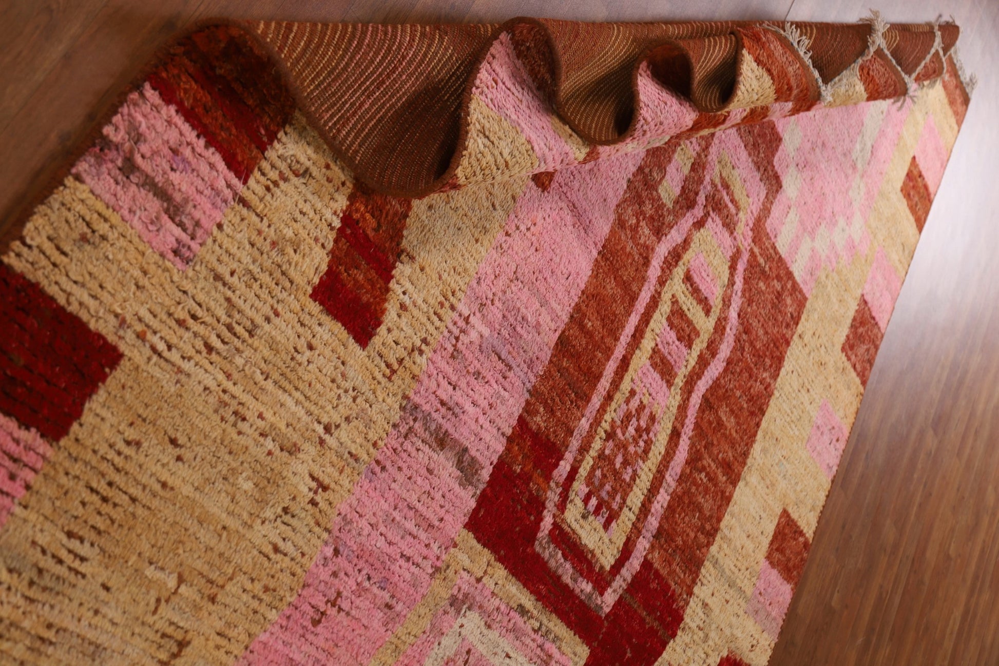 A Beautiful Genuine Pakistan Moroccan rug is Hand Knotted by skillful weavers in Pakistan with 100% Wool Material. This rug is in condition. dimensions are 9' 11'' X 6' 7'' in foot and 302 X 201 in centimeter. the primary color is Red.