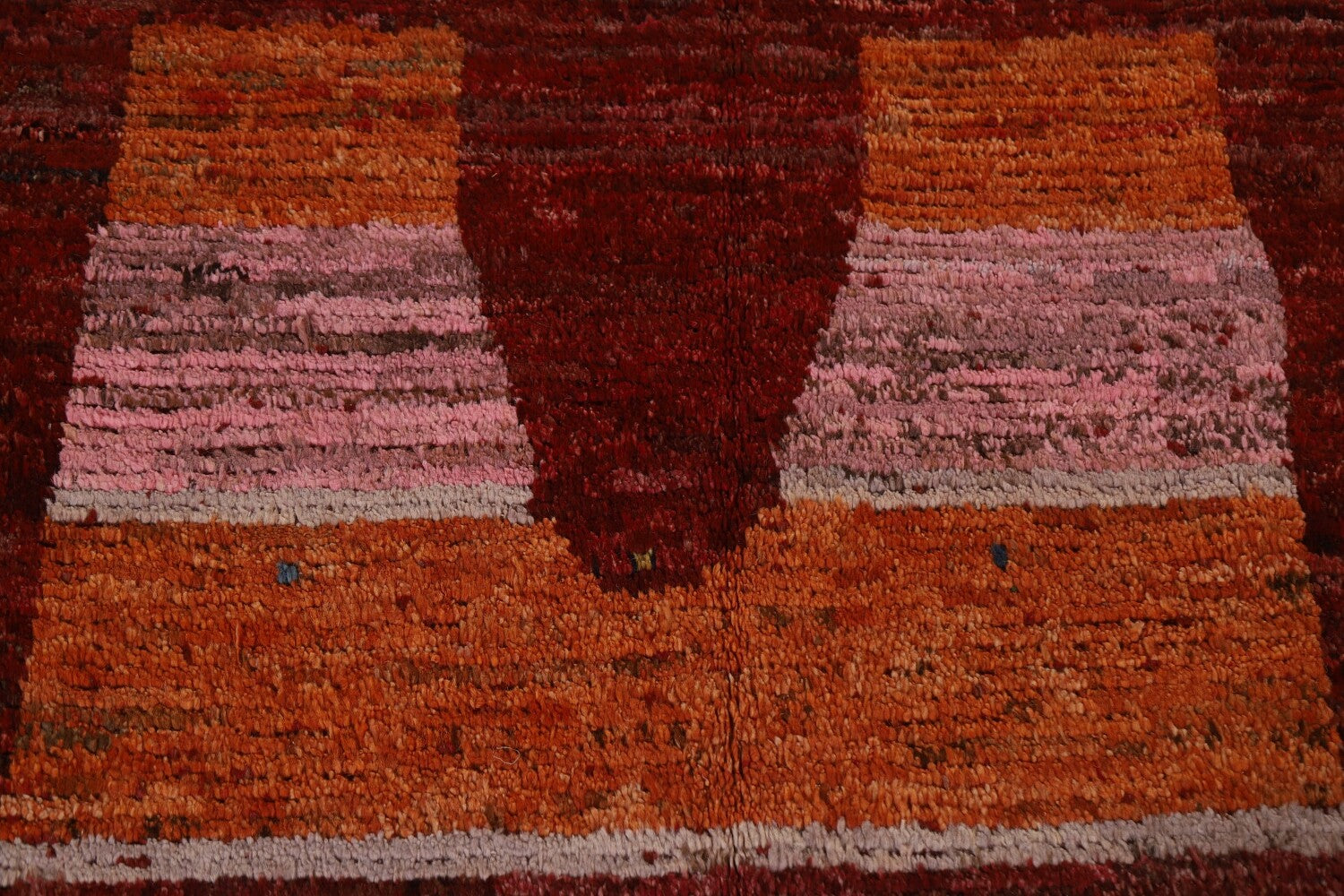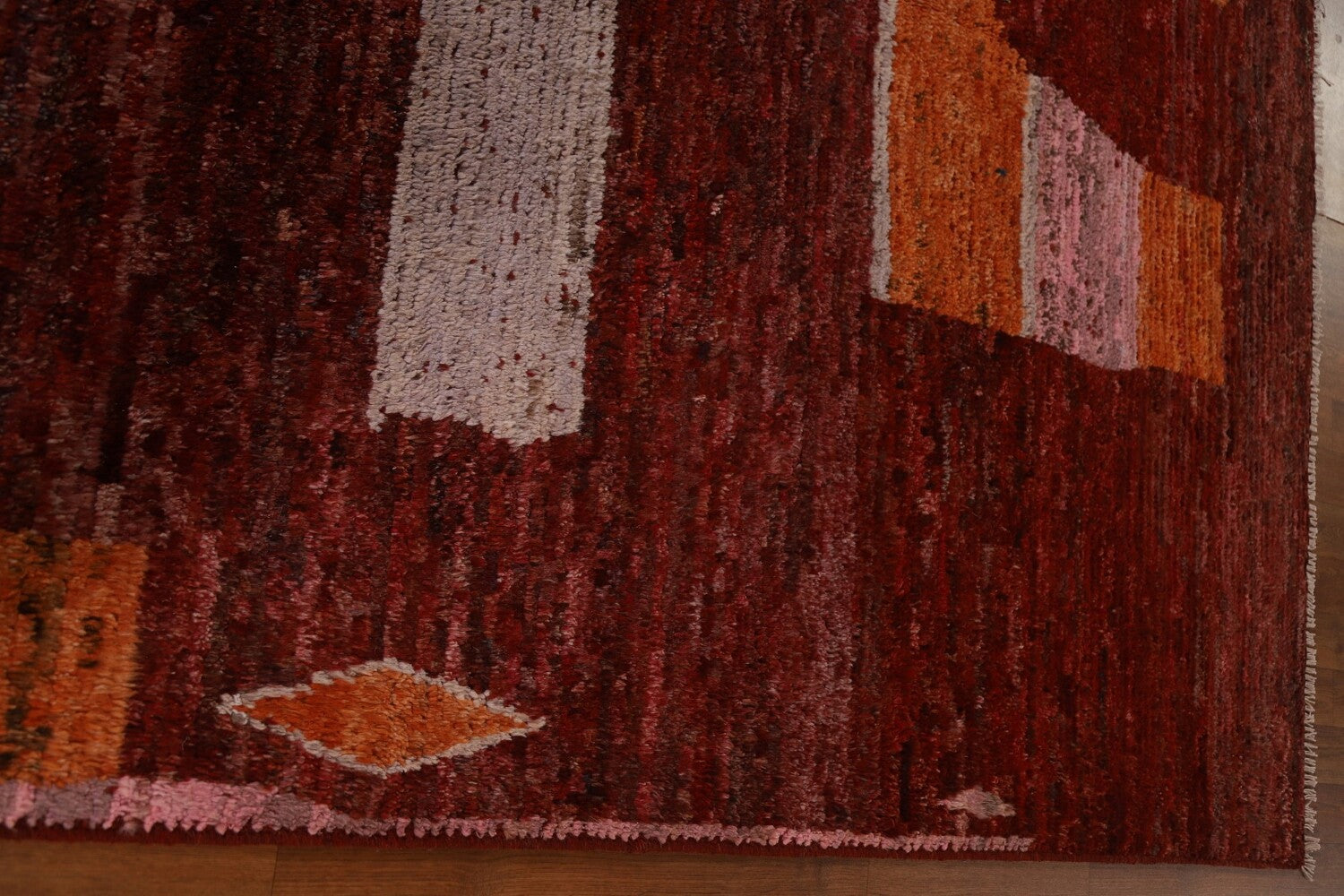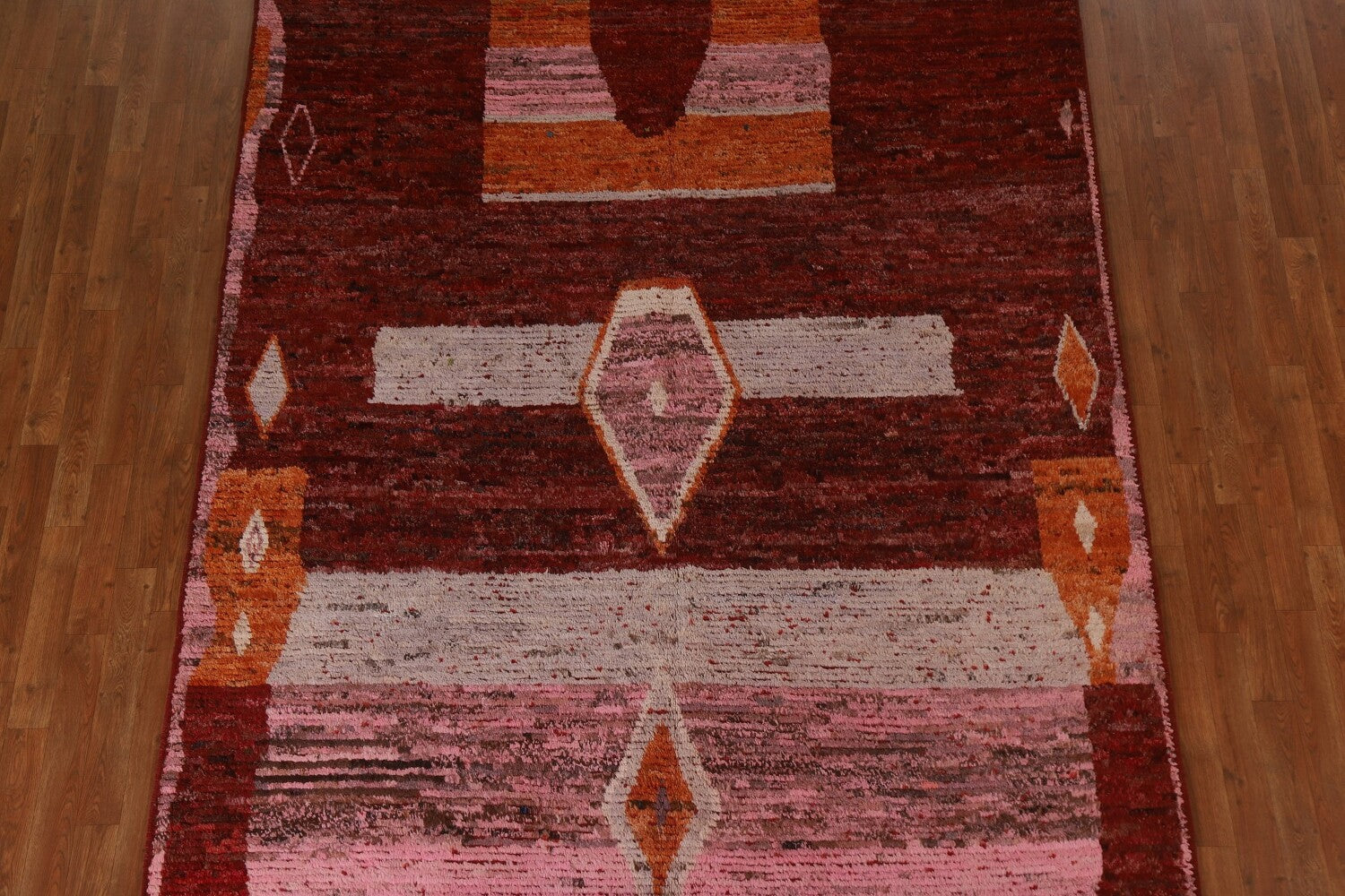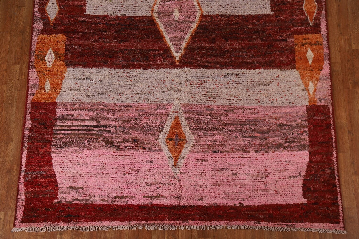 A Beautiful Genuine Pakistan Moroccan rug is Hand Knotted by skillful weavers in Pakistan with 100% Wool Material. This rug is in condition. dimensions are 9' 7'' X 6' 10'' in foot and 292 X 208 in centimeter. the primary color is Red.