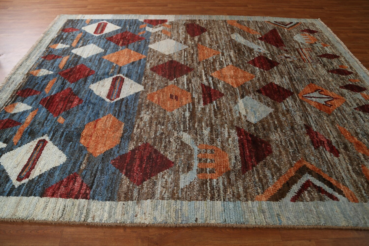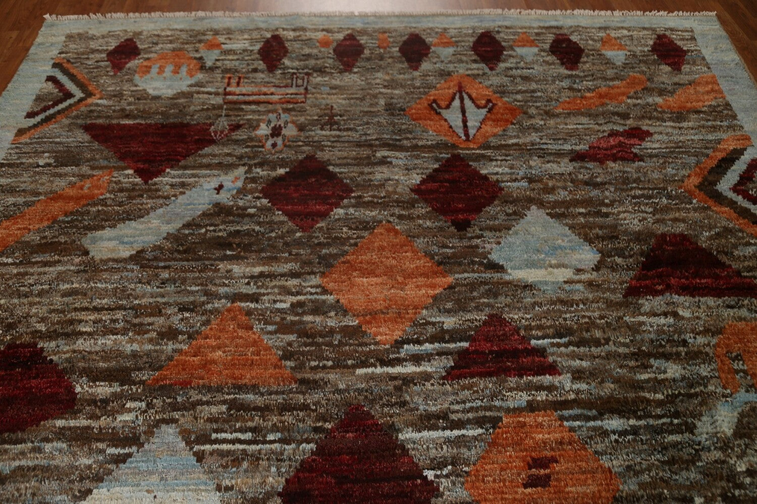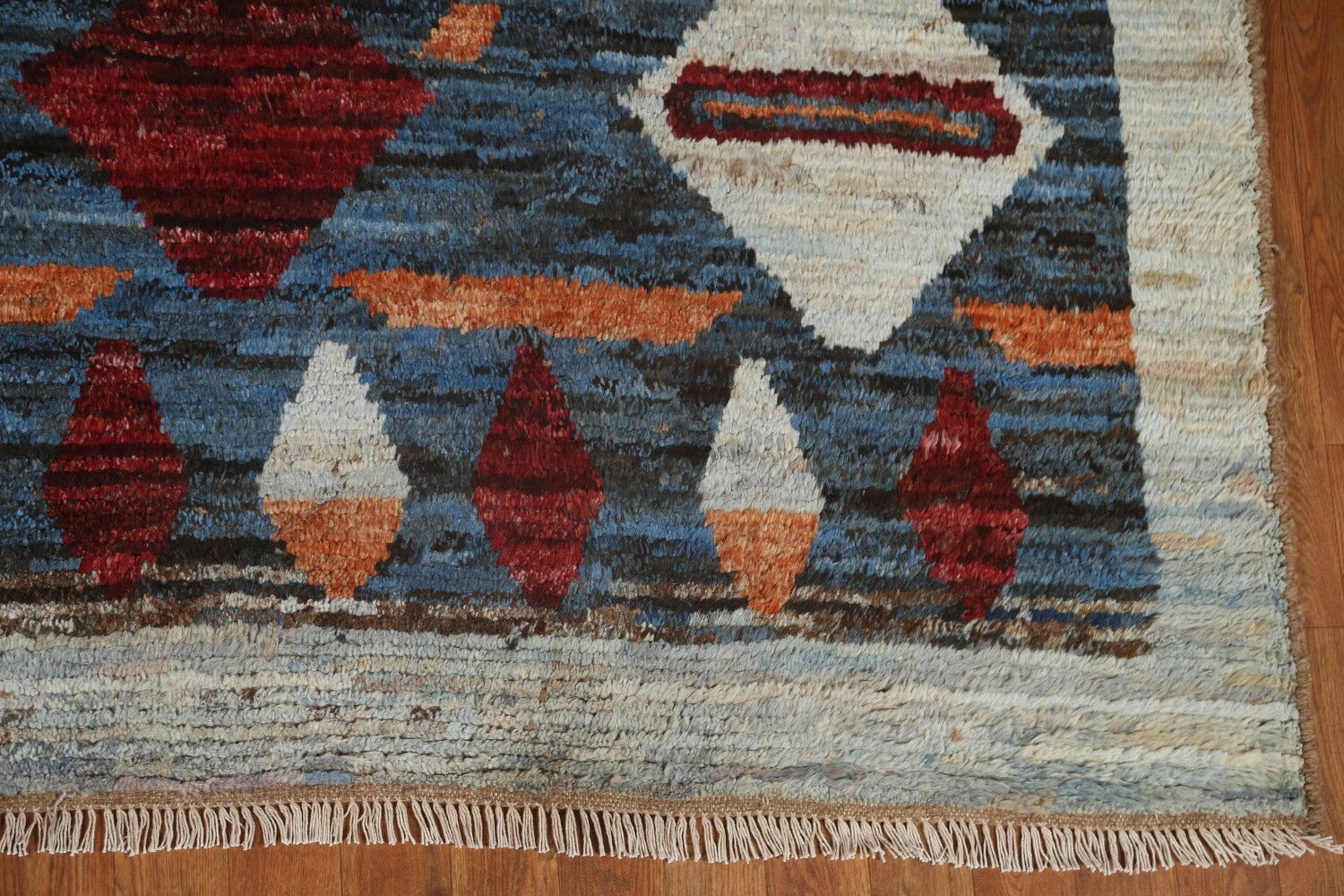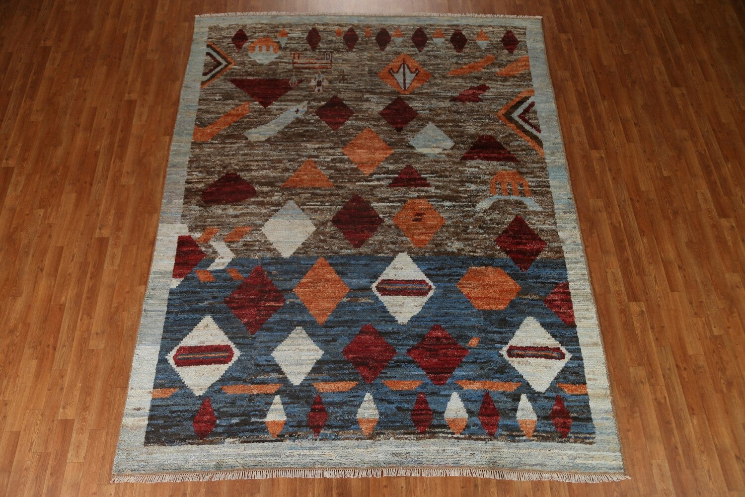 A Beautiful Genuine Pakistan Moroccan rug is Hand Knotted by skillful weavers in Pakistan with 100% Wool Material. This rug is in condition. dimensions are 9' 8'' X 7' 9'' in foot and 295 X 236 in centimeter. the primary color is Multi-Colored.