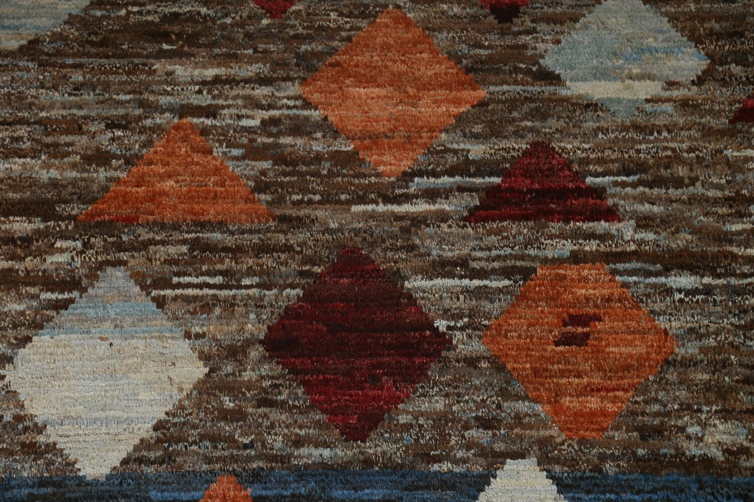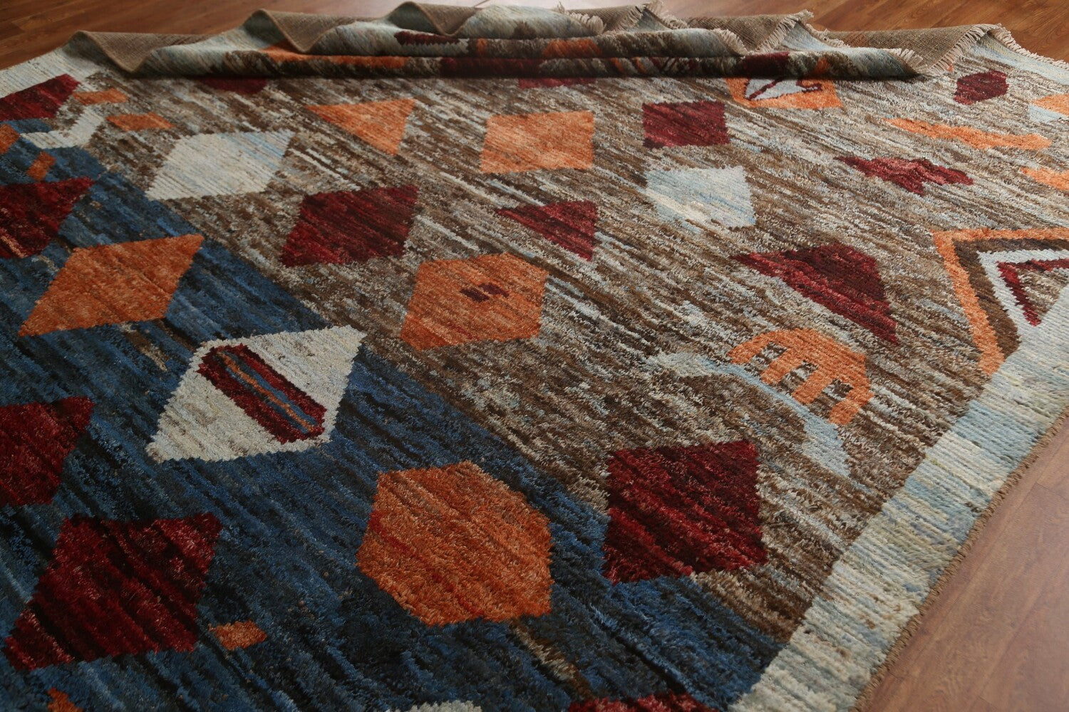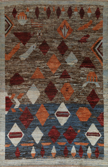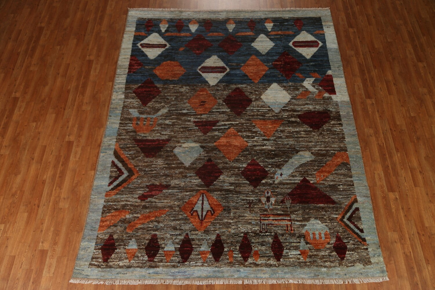 A Beautiful Genuine Pakistan Moroccan rug is Hand Knotted by skillful weavers in Pakistan with 100% Wool Material. This rug is in condition. dimensions are 9' 8'' X 7' 9'' in foot and 295 X 236 in centimeter. the primary color is Multi-Colored.