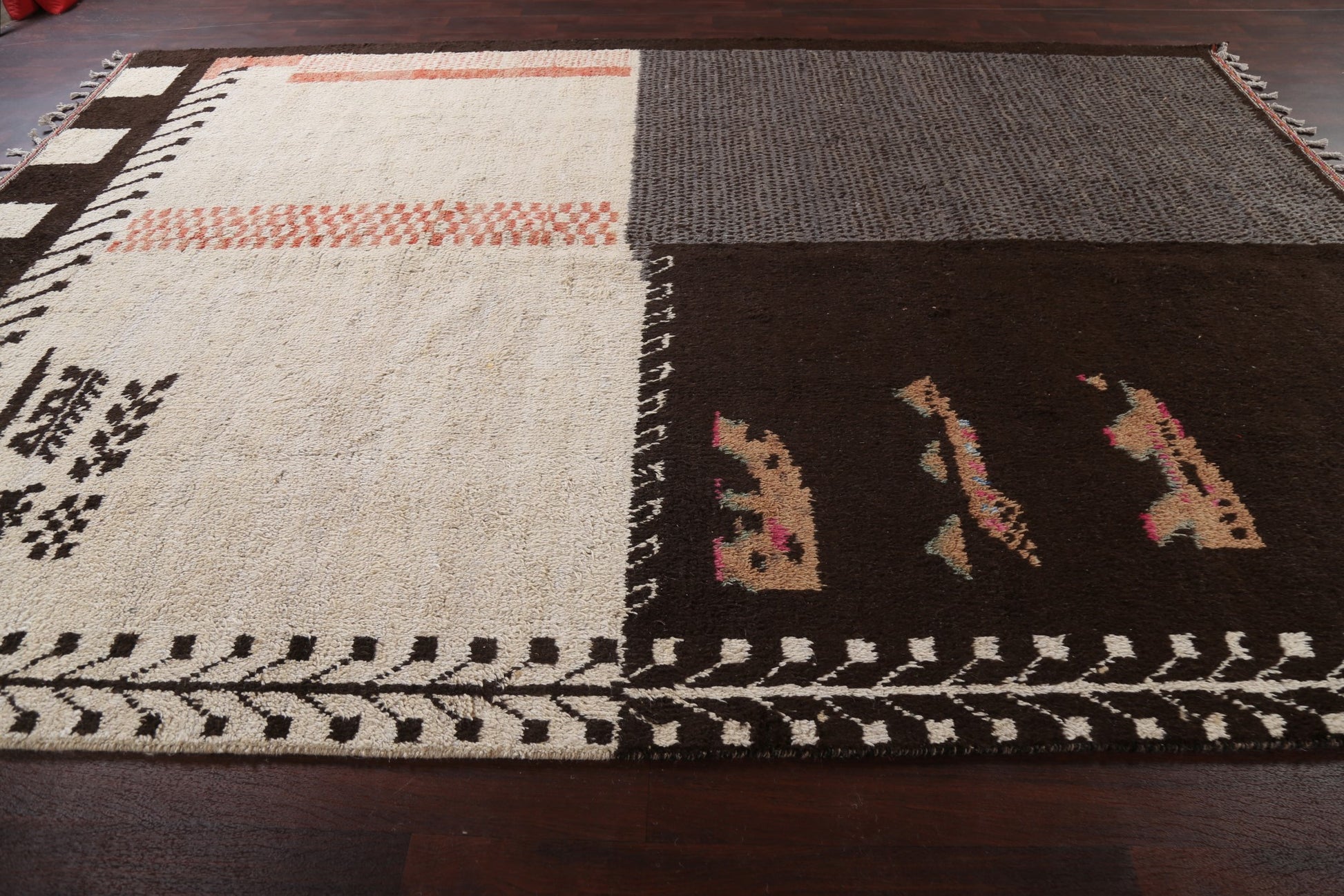 A Beautiful Genuine Morocco Moroccan rug is Hand Knotted by skillful weavers in Morocco with 100% Wool Material. This rug is in New, First Quality condition. dimensions are 12' 9'' X 9' 0'' in foot and 389 X 274 in centimeter. the primary color is Beige & Ivories.