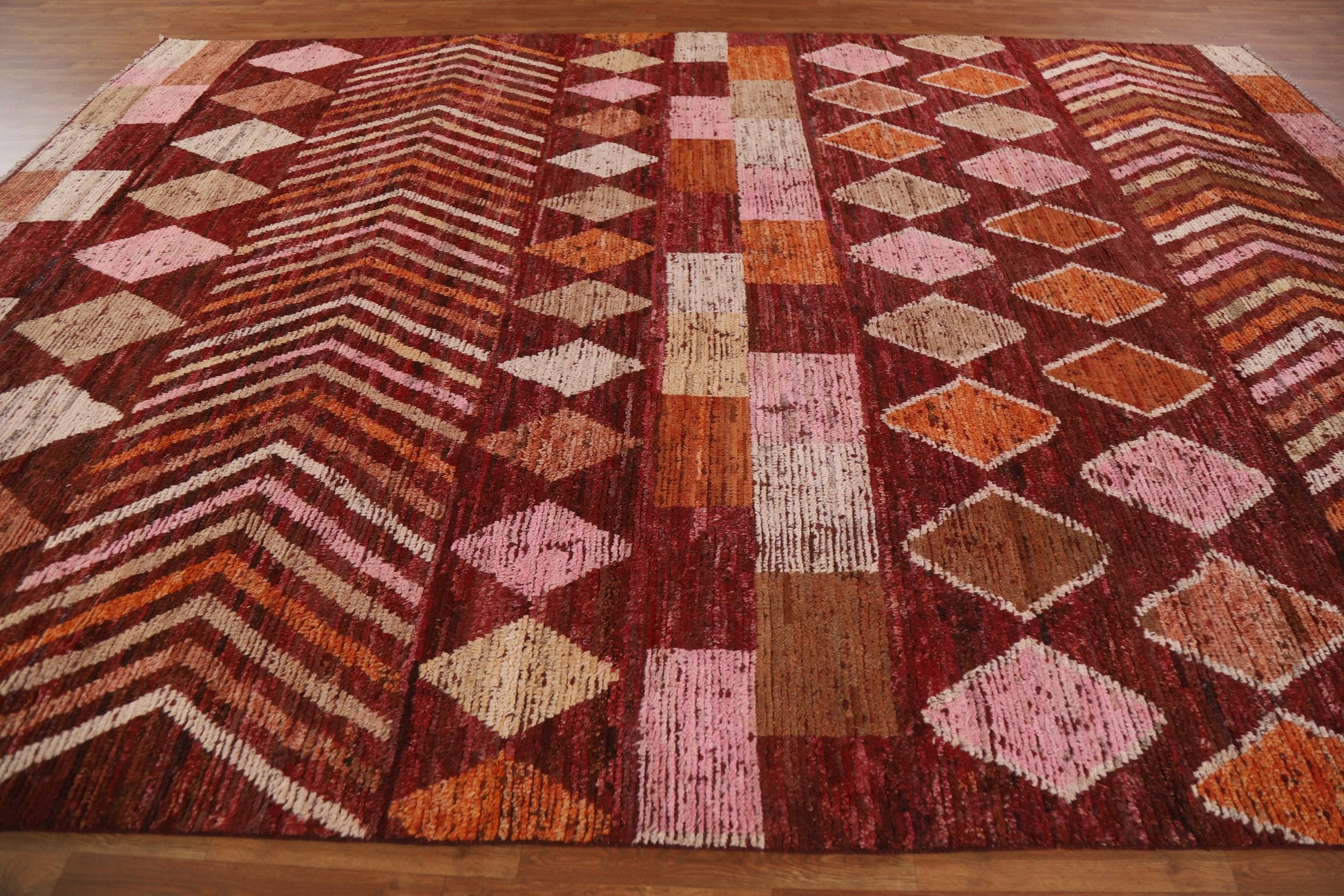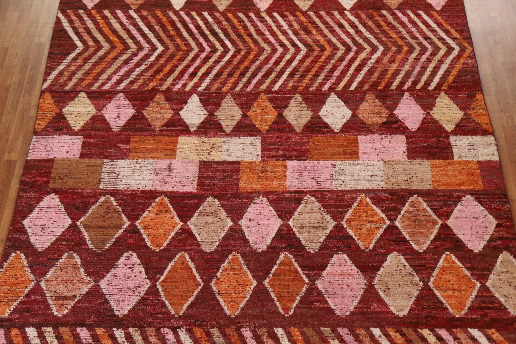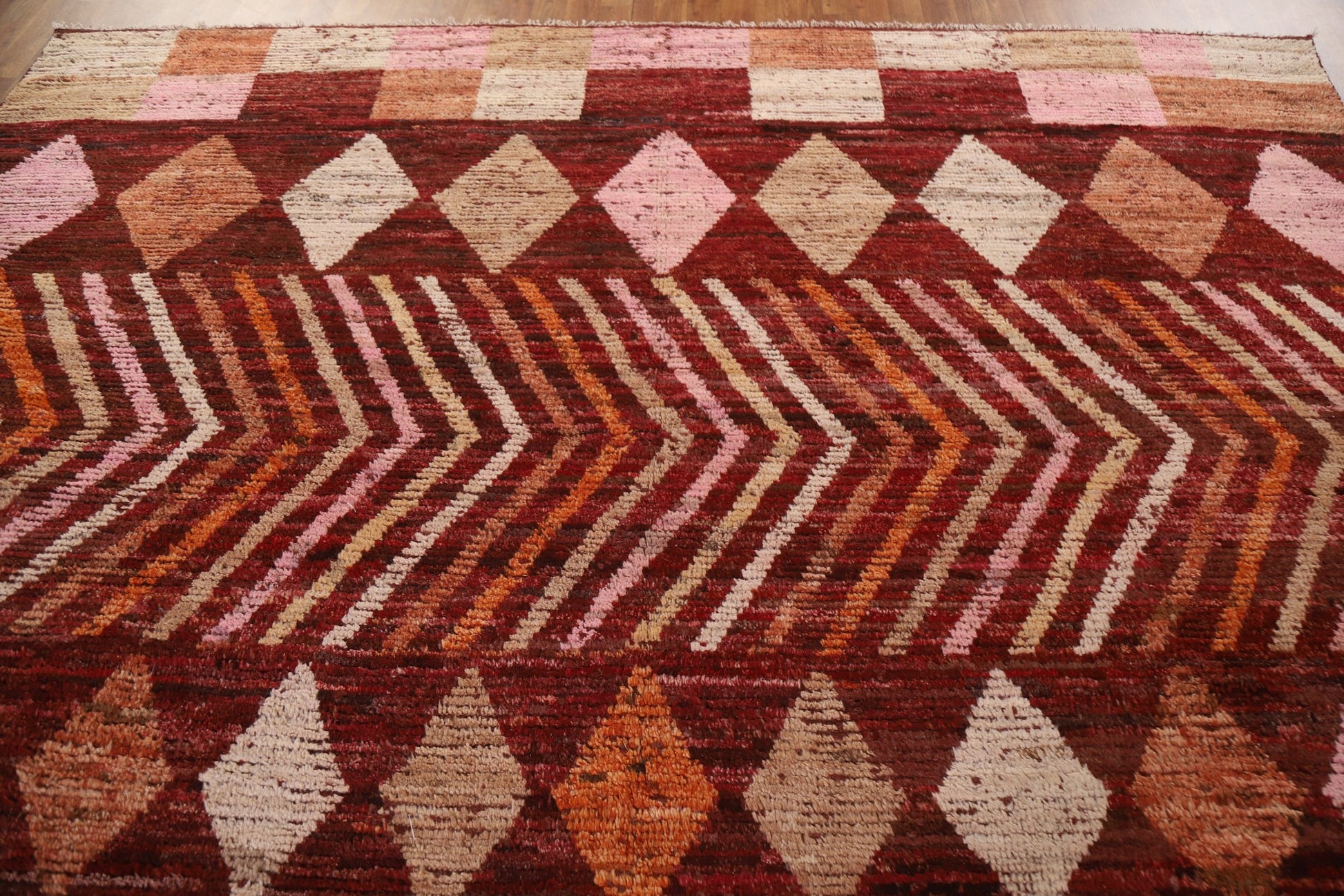 A Beautiful Genuine Pakistan Moroccan rug is Hand Knotted by skillful weavers in Pakistan with 100% Wool Material. This rug is in condition. dimensions are 13' 10'' X 9' 10'' in foot and 422 X 300 in centimeter. the primary color is Red.