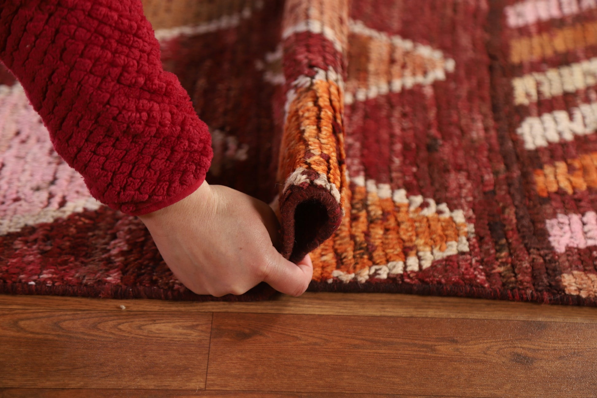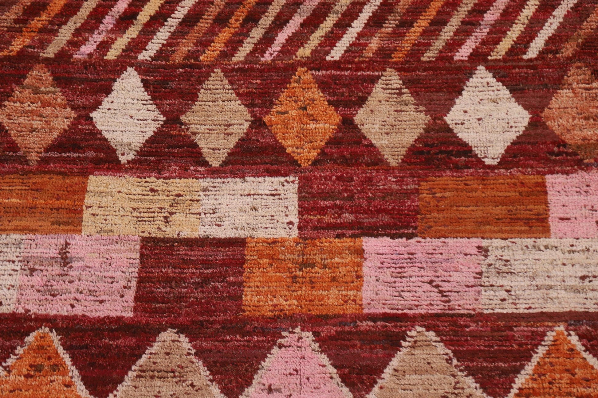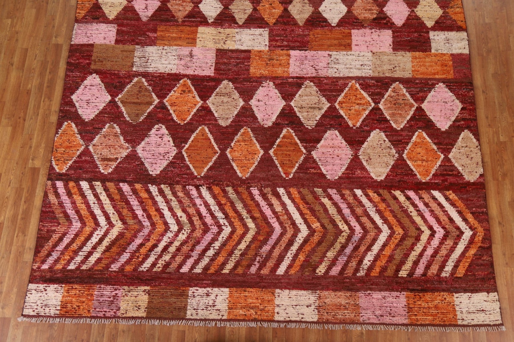 A Beautiful Genuine Pakistan Moroccan rug is Hand Knotted by skillful weavers in Pakistan with 100% Wool Material. This rug is in condition. dimensions are 13' 10'' X 9' 10'' in foot and 422 X 300 in centimeter. the primary color is Red.