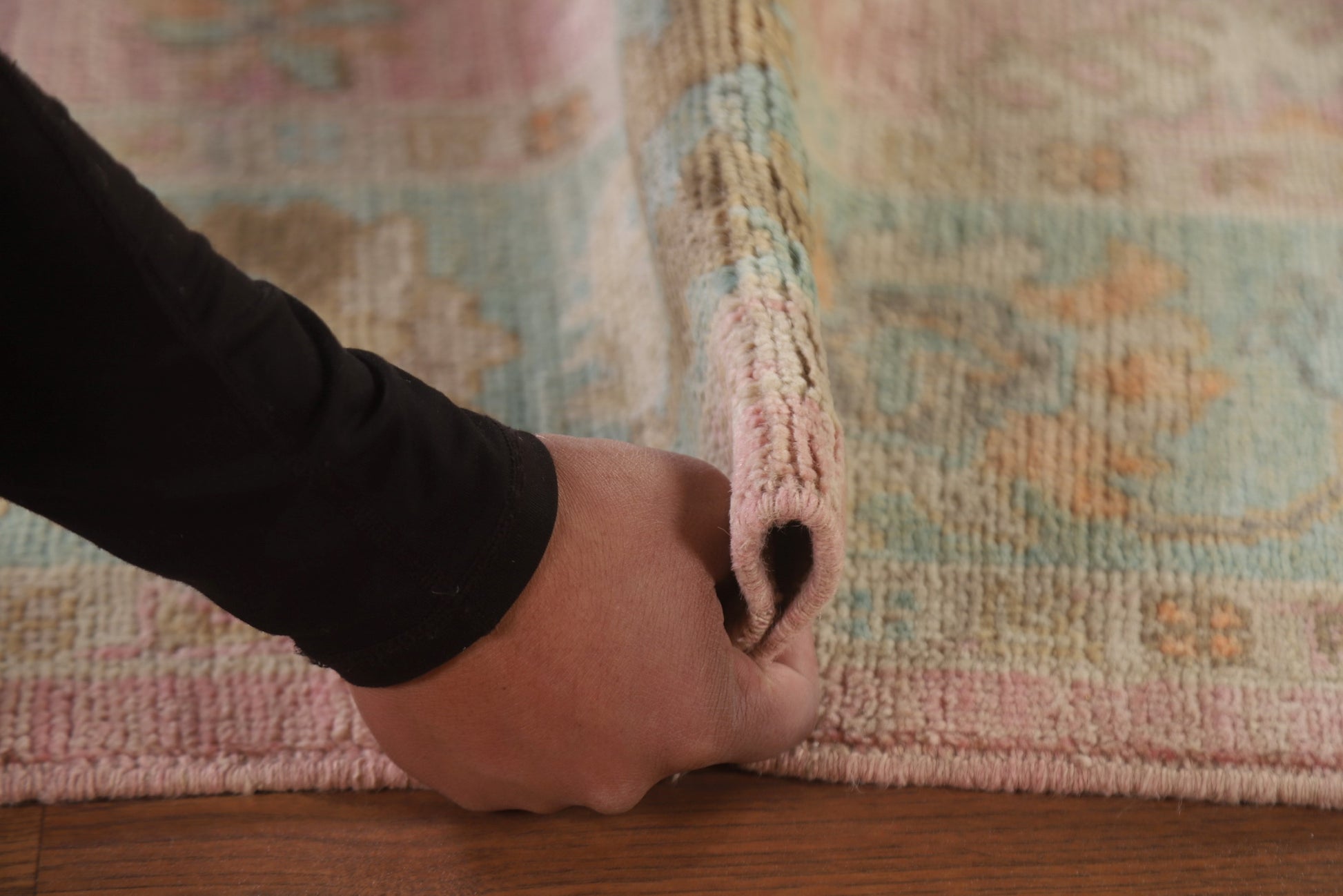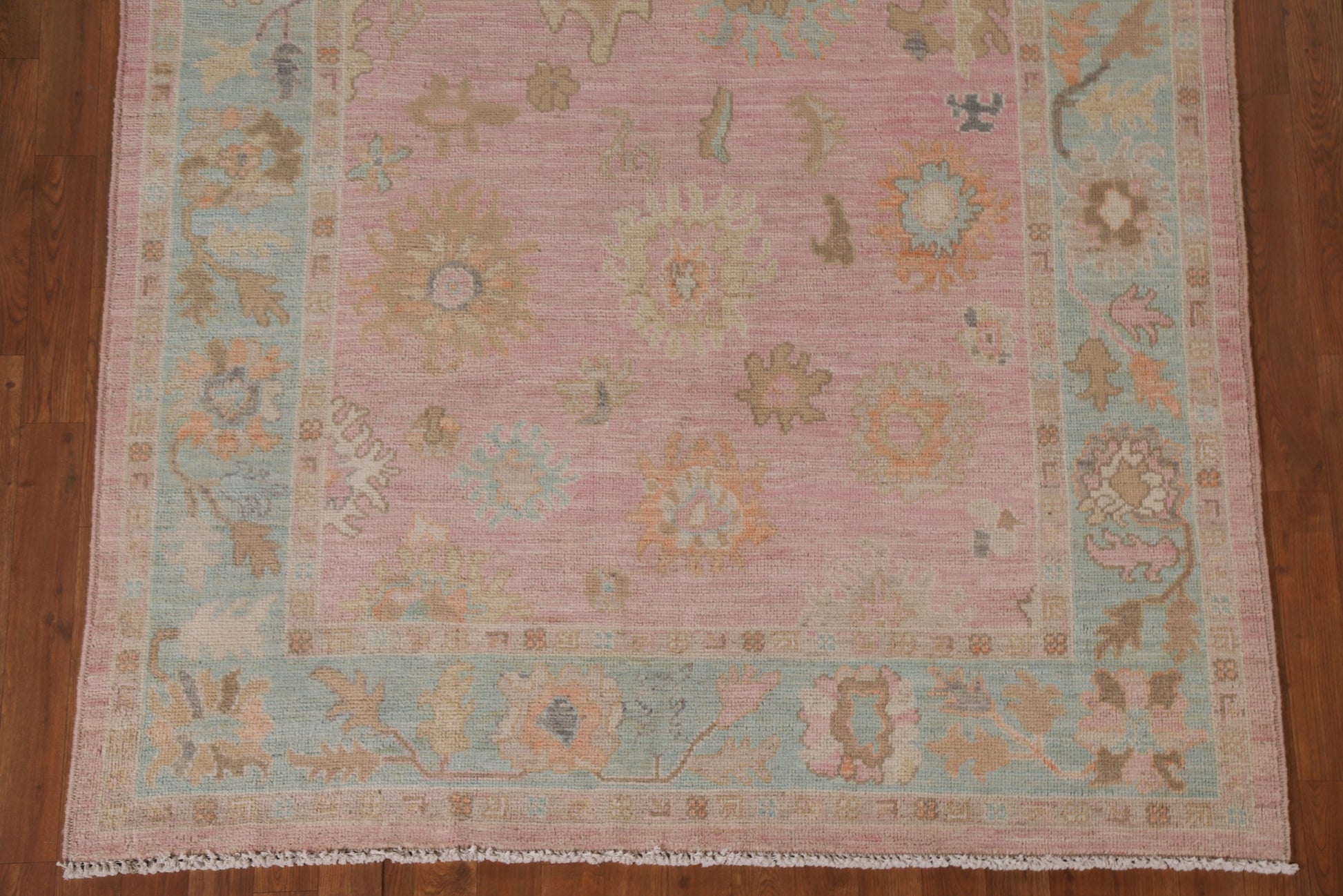 A Beautiful Genuine Turkey Oushak rug is Hand Knotted by skillful weavers in Turkey with 100% Wool Material. This rug is in New, First Quality condition. dimensions are 7' 11'' X 5' 3'' in foot and 241 X 160 in centimeter. the primary color is Pink.
