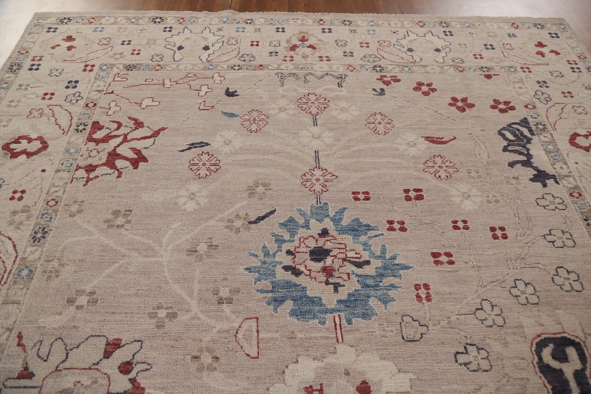 A Beautiful Genuine Turkey Oushak rug is Hand Knotted by skillful weavers in Turkey with 100% Wool Material. This rug is in New, First Quality condition. dimensions are 11' 11'' X 8' 7'' in foot and 363 X 262 in centimeter. the primary color is Beige & Ivories.