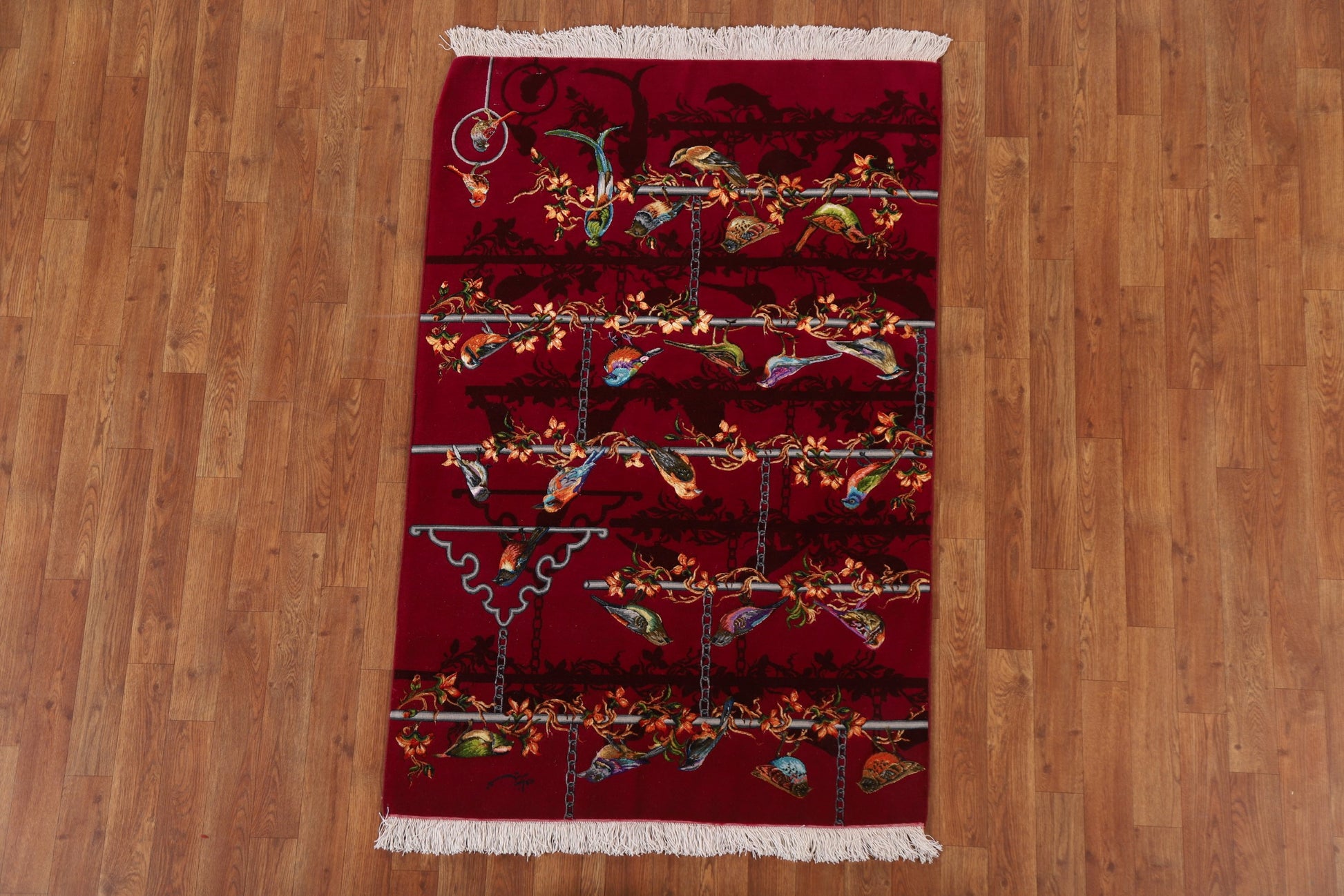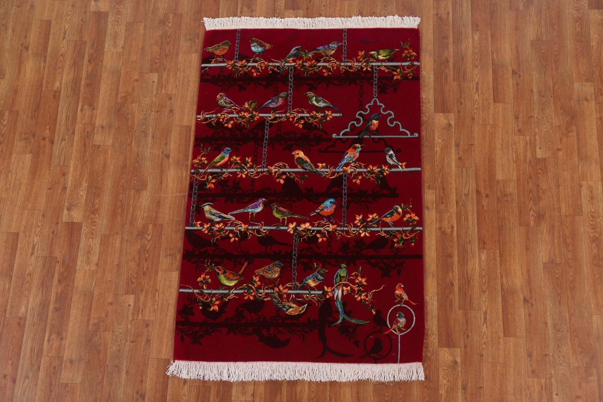 Wool & Silk Animal Pictorial Tabriz Persian Rug 3x5