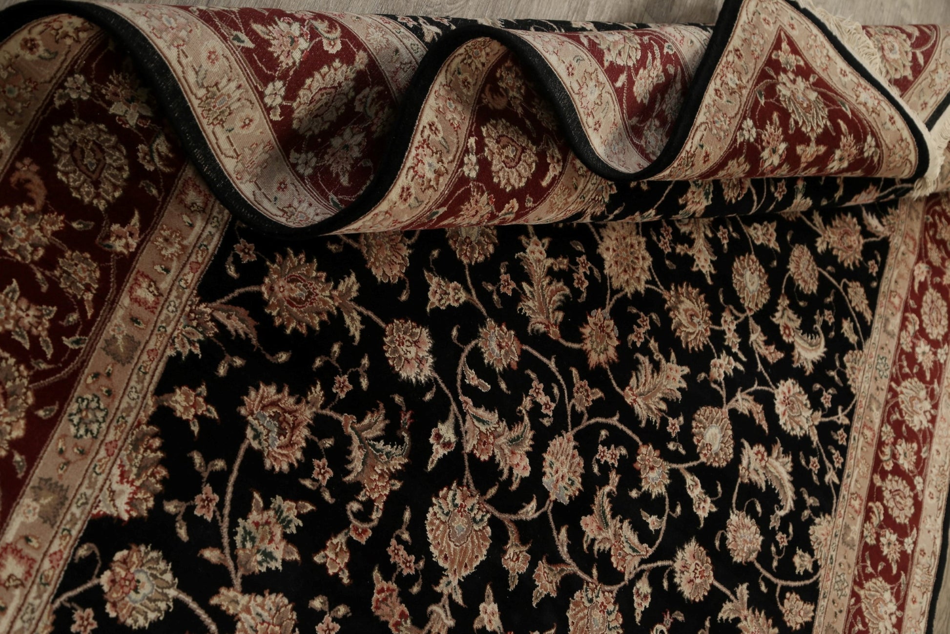A Beautiful Genuine China Kashan rug is Hand Knotted by skillful weavers in China with Wool & Silk Material. This rug is in New, First Quality condition. dimensions are 9' 6'' X 6' 1'' in foot and 290 X 185 in centimeter. the primary color is Black.
