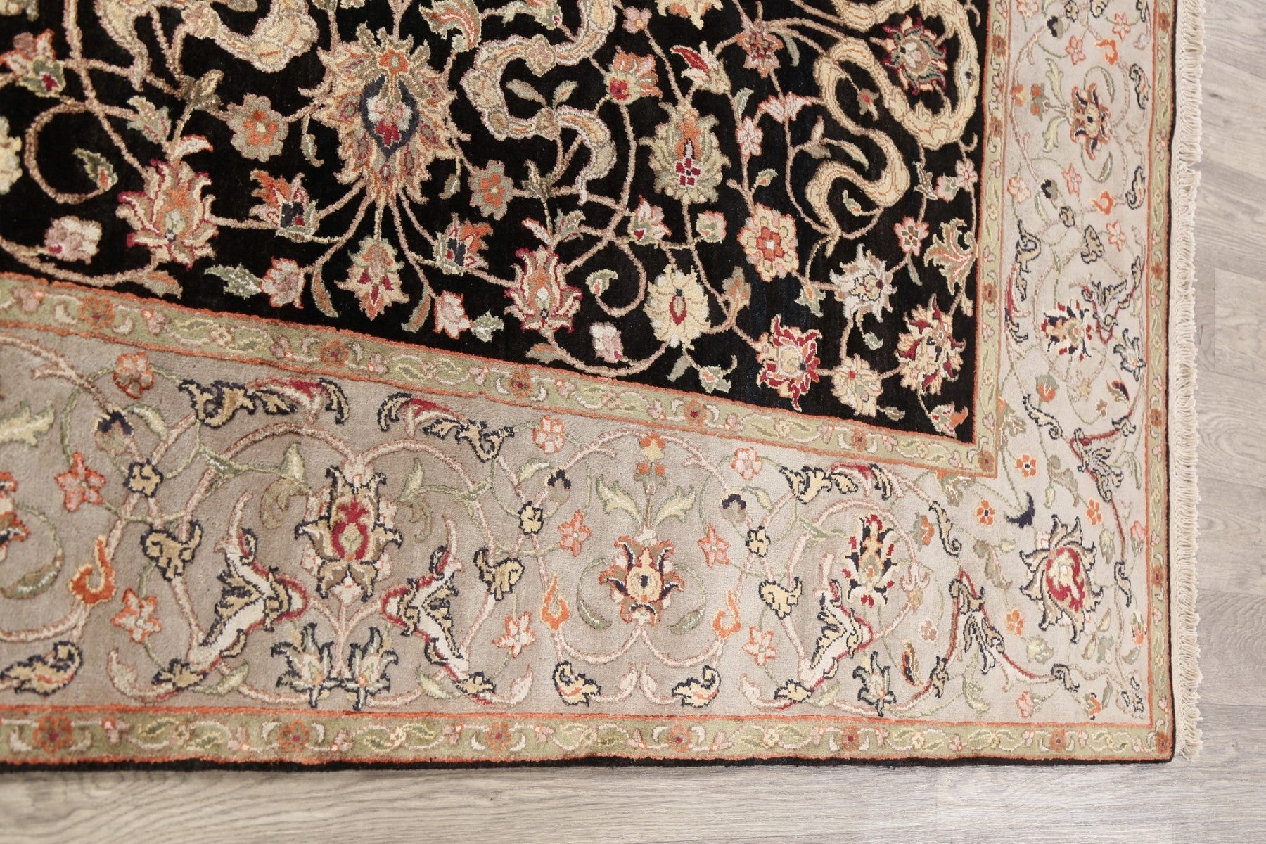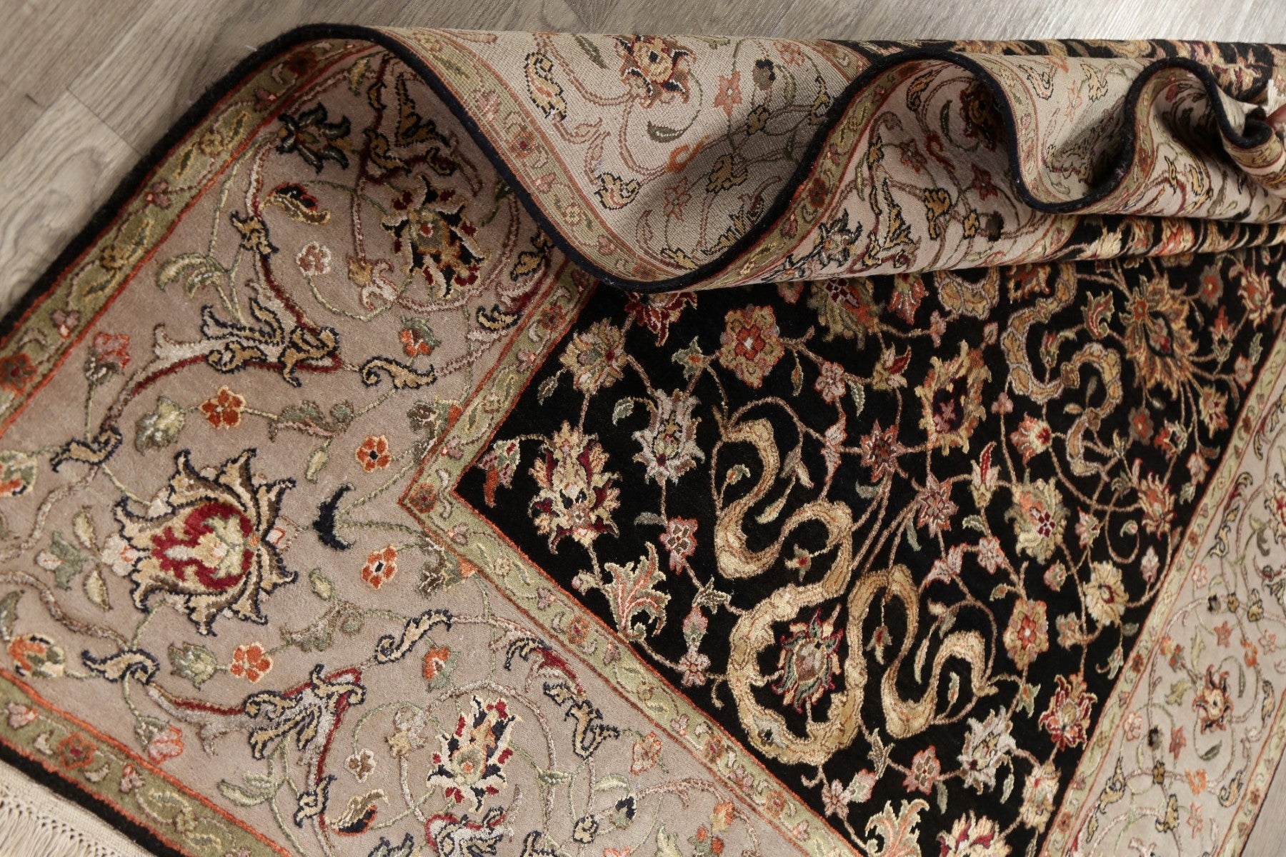 A Beautiful Genuine China Tabriz rug is Hand Knotted by skillful weavers in China with Wool & Silk Material. This rug is in New, First Quality condition. dimensions are 7' 4'' X 5' 2'' in foot and 224 X 157 in centimeter. the primary color is Black.