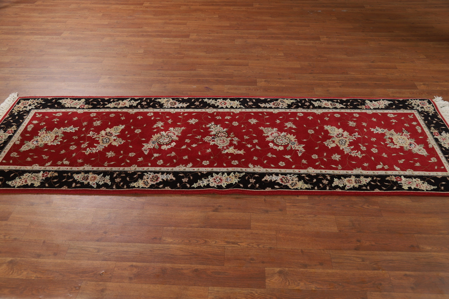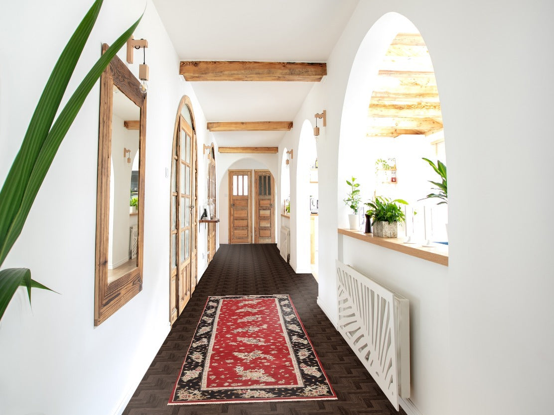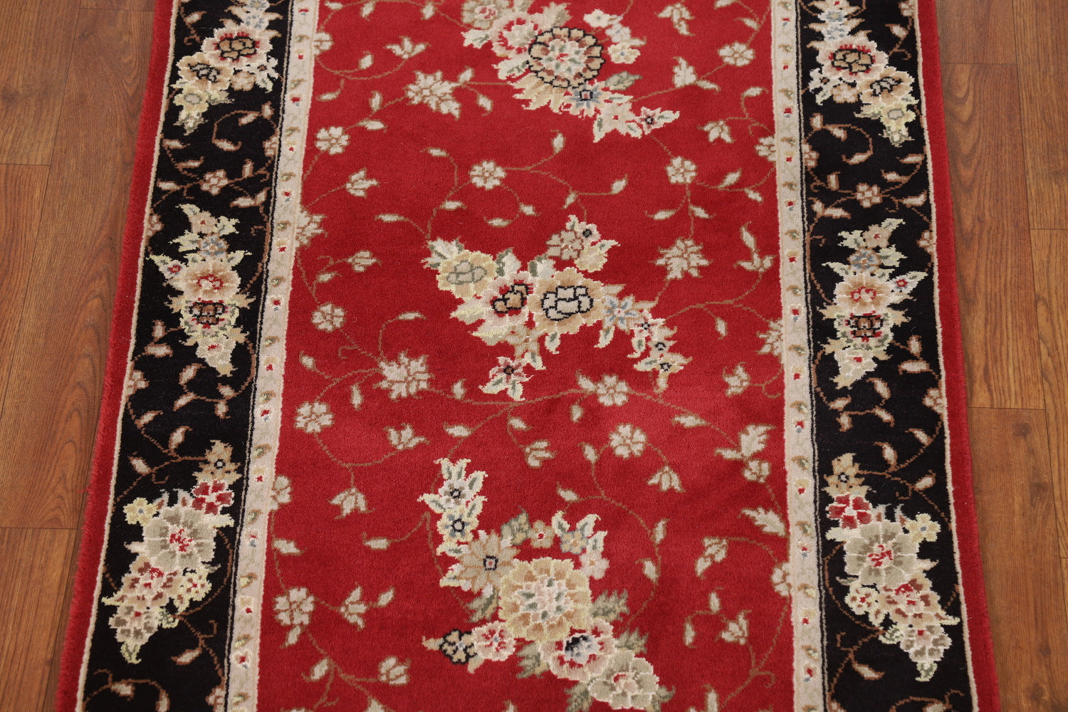 Wool & Silk Red Floral Tabriz Chinese Runner Rug 2x8