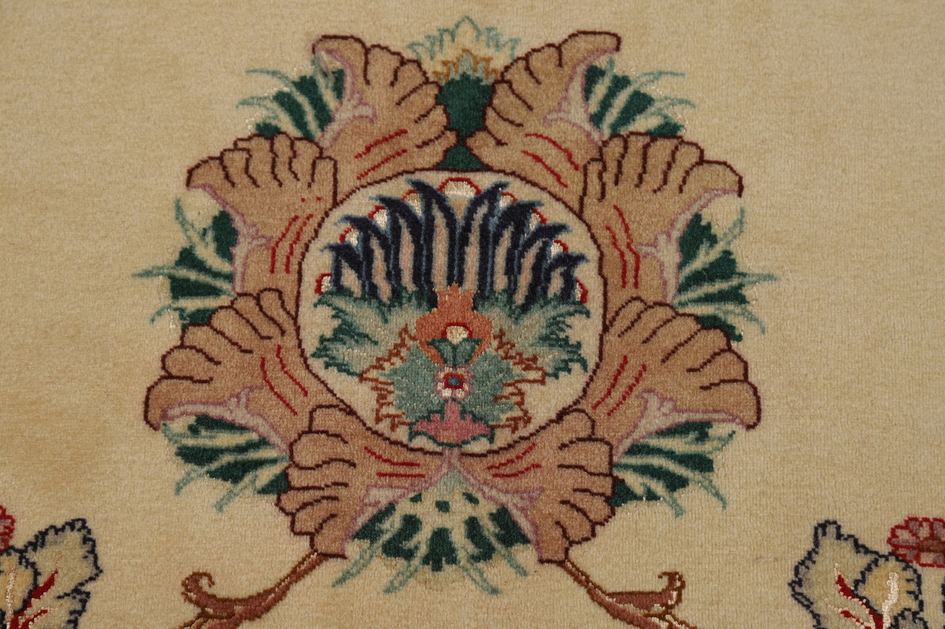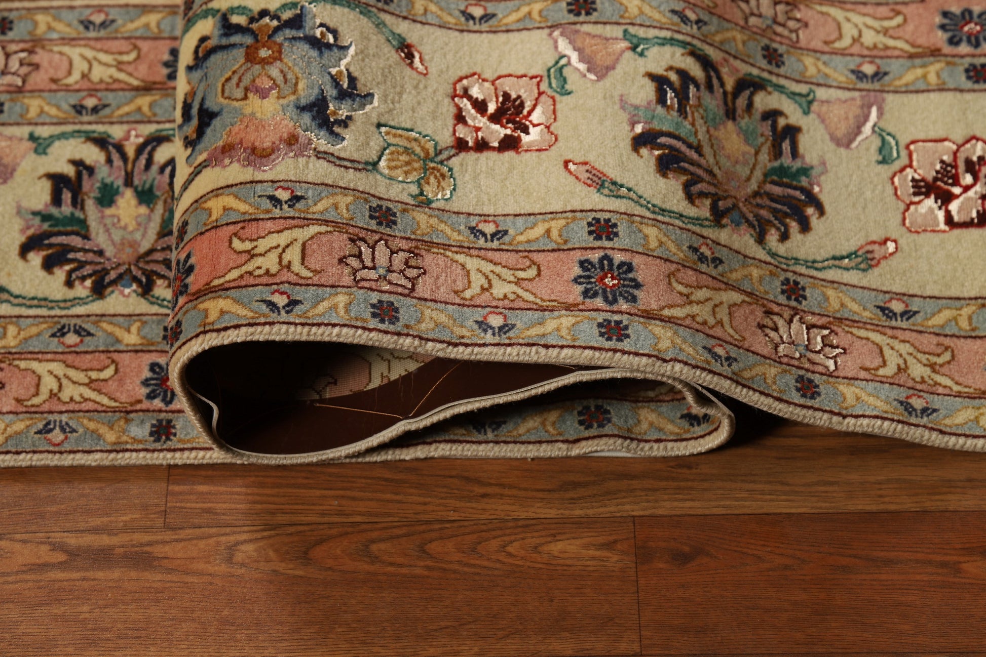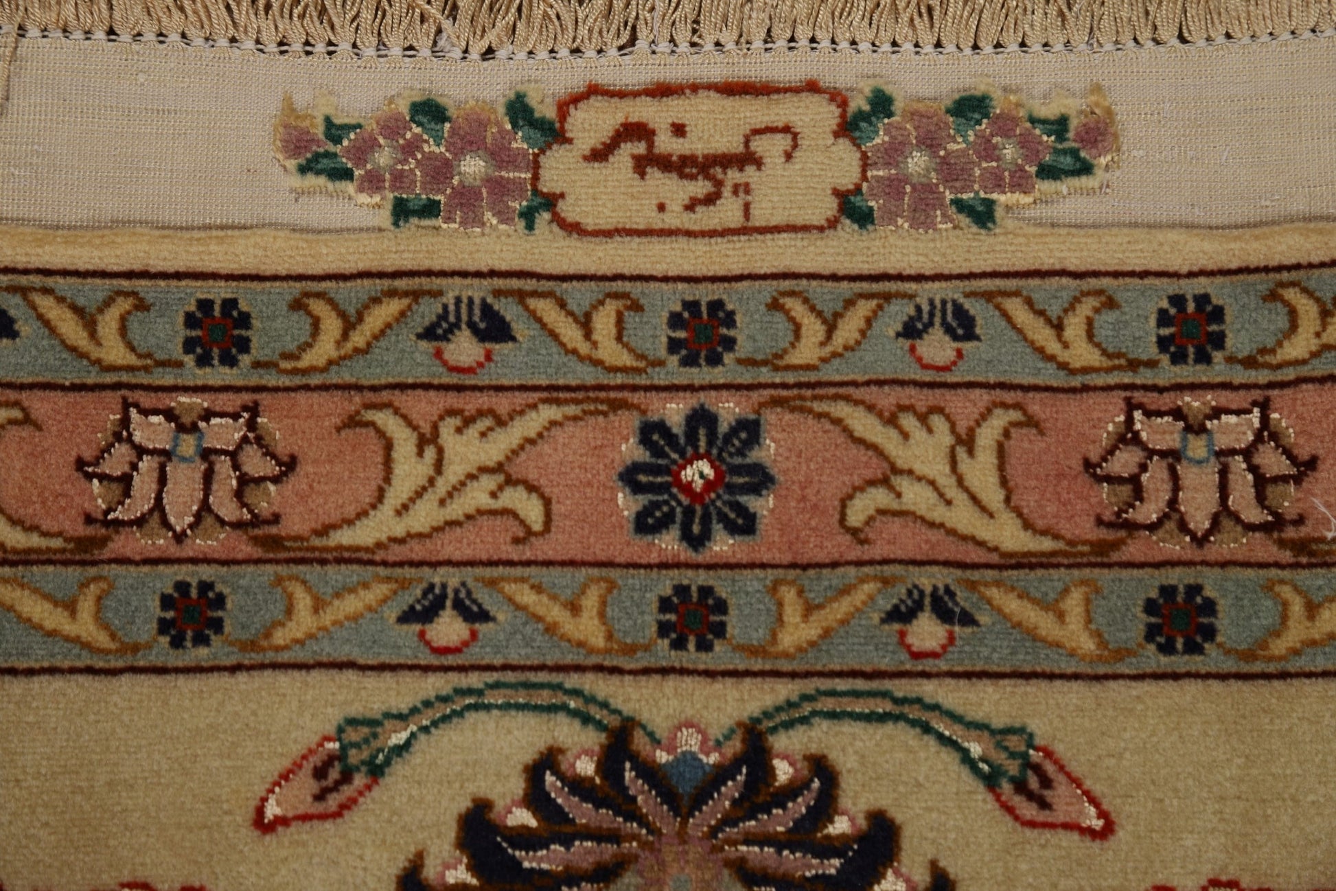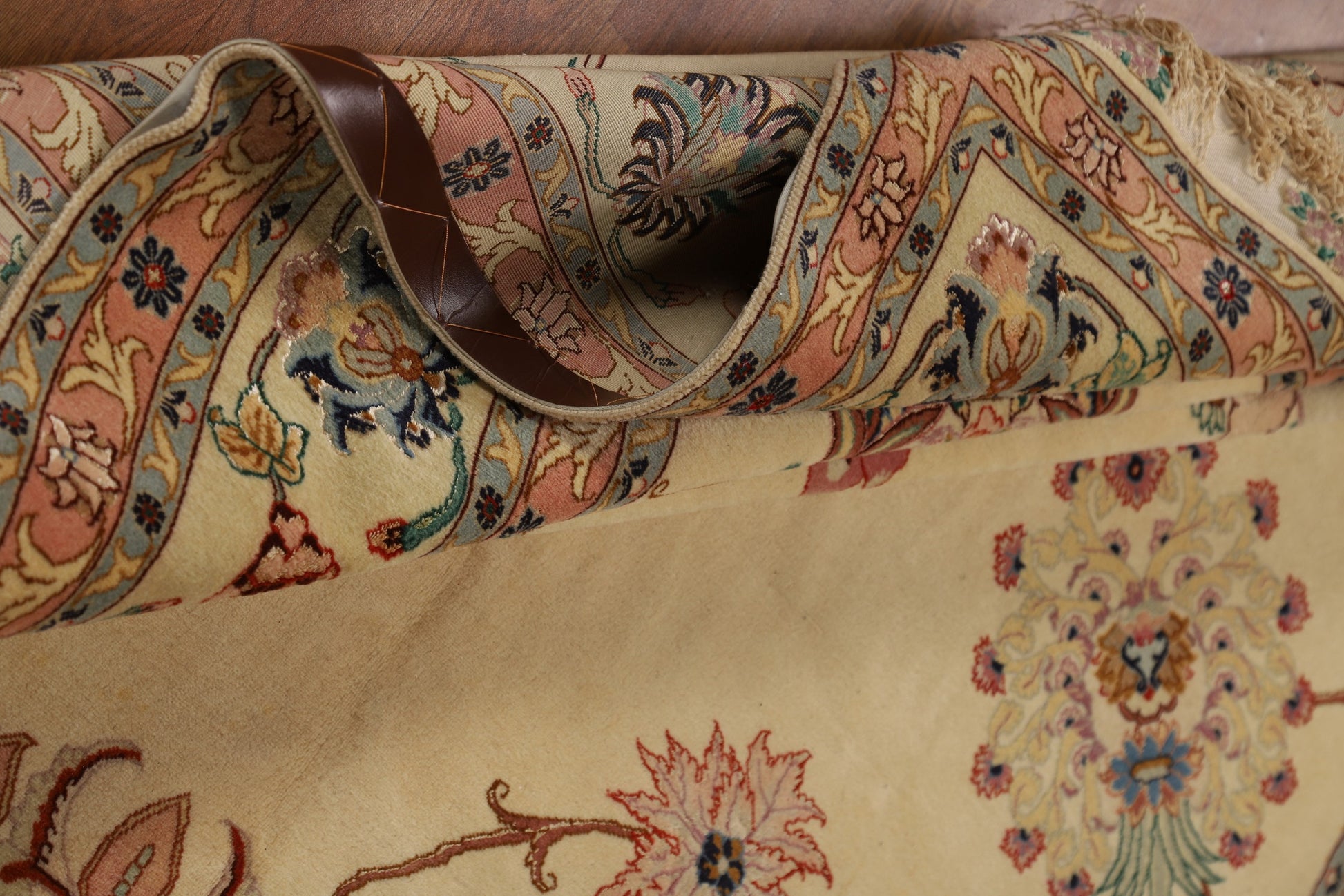 A Beautiful Genuine Persia ( Persia ) Tabriz rug is Hand Knotted by skillful weavers in Persia ( Persia ) with Wool & Silk Material. This rug is in New, First Quality condition. dimensions are 10' 1'' X 6' 8'' in foot and 307 X 203 in centimeter. the primary color is Beige & Ivories.