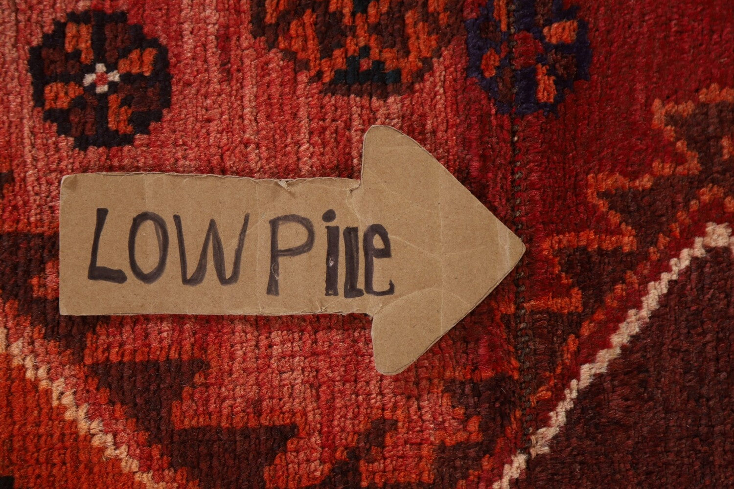 A Beautiful Genuine Persia ( Persia ) Lori rug is Hand Knotted by skillful weavers in Persia ( Persia ) with 100% Wool Material. This rug is in Very Good (Low Pile-Abrash) condition. dimensions are 9' 9'' X 4' 10'' in foot and 297 X 147 in centimeter. the primary color is Red.