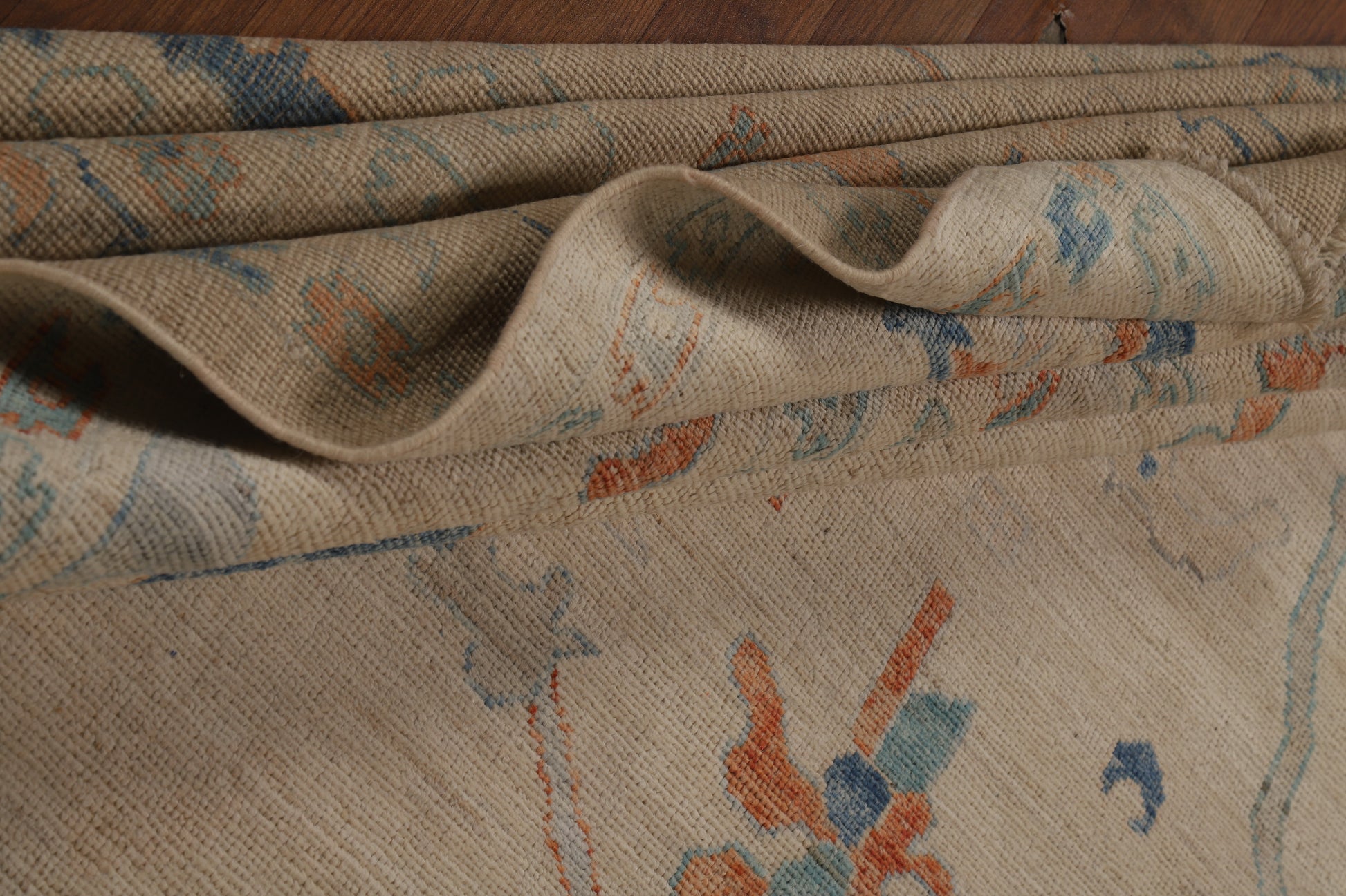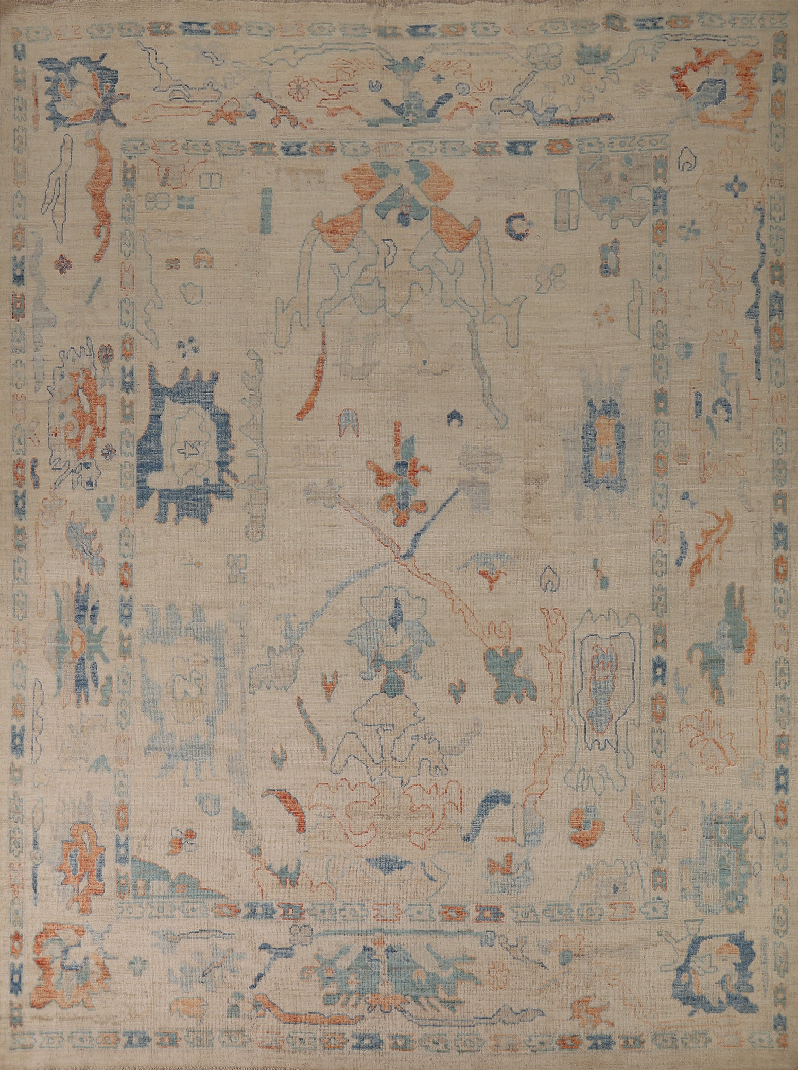 A Beautiful Genuine Turkey Oushak rug is Hand Knotted by skillful weavers in Turkey with 100% Wool Material. This rug is in New, First Quality condition. dimensions are 10' 1'' X 8' 4'' in foot and 307 X 254 in centimeter. the primary color is Beige & Ivories.